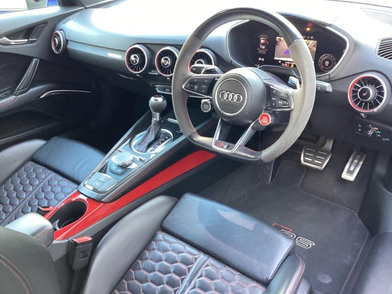 2019 Audi TT RS TFSI Sport Edition 2.5L Quattro Power 062mph in 3.7s Exhilarating Performance This 2019 Audi TT RS TFSI Sport Edition delivers supercar-level performance in a sleek and refined coupe body. Backed by an impressive service history, its most recent service was completed on 1st July 2025 at 80,305 miles, and its MOT-certified until June 2026, ensuring peace of mind for the next owner .Extras include: Reversing Camera, Brake Calipers - Red, RS Styling Package - RedPowered by a 2.5-litre TFSI petrol engine producing breathtaking acceleration, this Euro 6 compliant, four-wheel-drive machine launches from 062mph in just 3.7 seconds, combining razor-sharp precision with thrilling responsiveness .The Sport Edition trim enhances its dynamic appeal with a Technology Package, featuring: Bluetooth & wireless phone charging for seamless connectivity Light & Rain Sensor for automatic headlight activation Audi Parking System Plus with front and rear sensors for easy manoeuvring Heated front seats for year-round comfortWith low CO emissions relative to its performance class, this TT RS strikes an exceptional balance between power and efficiency. Every drive feels special from spirited country roads to effortless motorway cruising.Experience Audis legendary Quattro performance and distinctive RS engineering in one breathtaking package the TT RS Sport Edition is built to excite your senses and turn every journey into an event. Vehicle description sourced from a trusted third party please confirm exact specification with Stoneacre Rotherham Select prior to purchase.