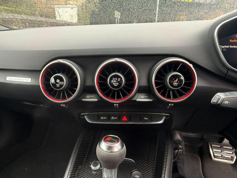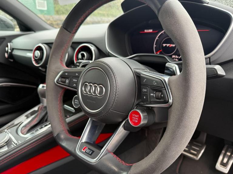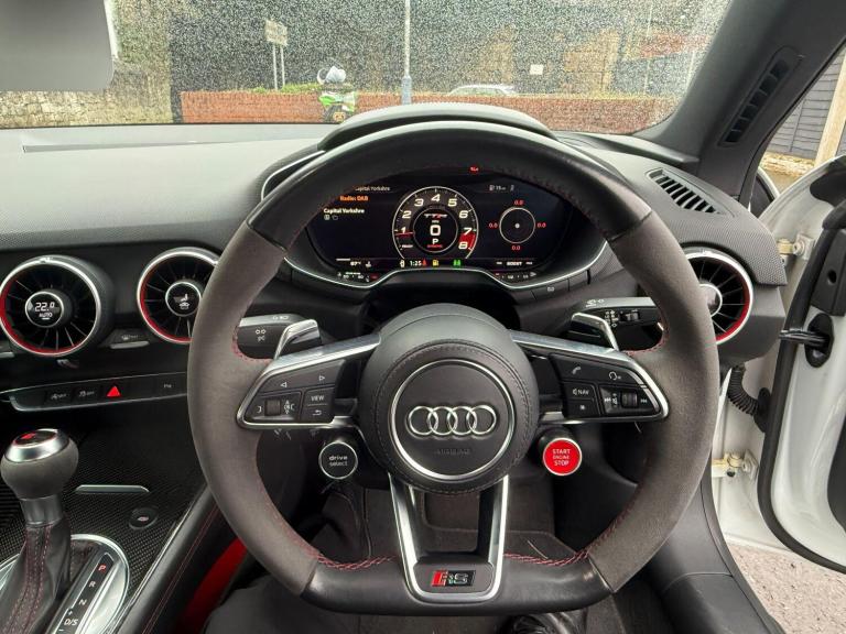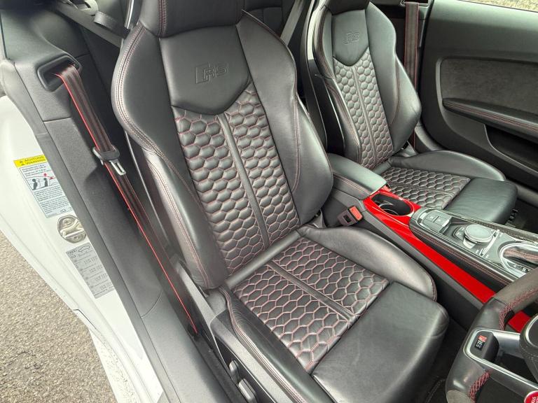 Experience exhilarating performance with this 2019 Audi TT RS TFSI Sport Edition, a true testament to German engineering. This striking model boasts a powerful 2.5 litre petrol engine paired with a sophisticated four wheel drive system, ensuring exceptional handling and responsiveness. Its Euro 6 emission classification signifies a commitment to cleaner motoring, while the Sport Edition trim level enhances its already impressive specification.This Audi TT RS is equipped with advanced LED headlights and dynamic rear indicators for superior visibility, complemented by automatic headlights that activate with the light and rain sensor. Stay connected on the go with Bluetooth mobile telephone preparation, and navigate tight spaces with ease thanks to the Audi Parking System Plus, featuring front and rear sensors. Enjoy added comfort during colder months with heated front seats. The vehicle's impressive acceleration, reaching 0-62mph in just 3.7 seconds, sets it apart from many other vehicles in its class, offering a driving experience that is both dynamic and efficient, further highlighted by its low CO2 emissions.