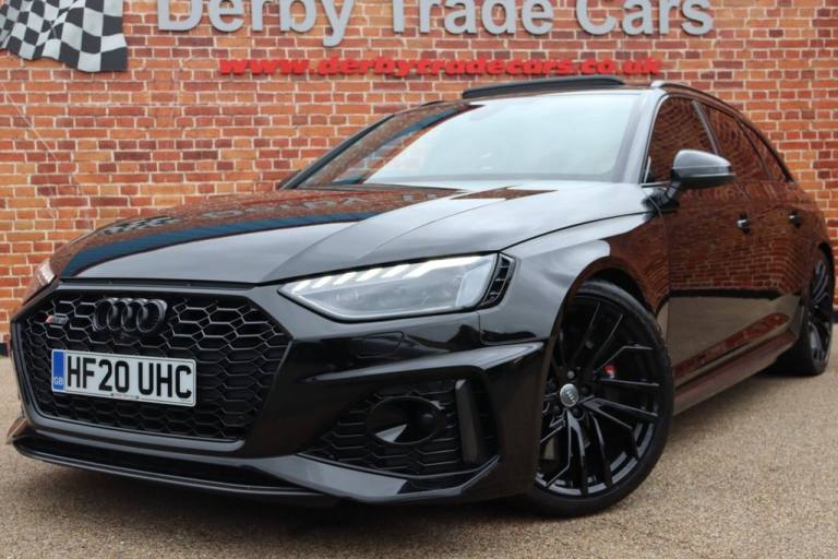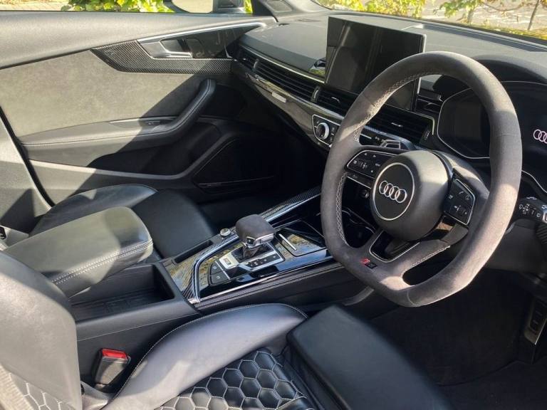 Here We Have The Audi RS4 TFSI Quattro! A Stunning Example Fully Loaded With Some Mega Specification Including Opening Panoramic Glass Roof, Exterior And Interior Carbon & Lots More! Find The Full List Of Specification And Details Below: (Please See Photos of the Suede Steering Wheel And Gear Selector That Have Been Changed From Leather To Suede. The Vehicle Has Also Recently Benefitted Recently From A Ceramic Coating!) EXTERIOR SPECIFICATION: - Opening Panoramic Glass Sunroof - Carbon Exterior Inc; Front Splitter, Bumper Accents, Side Skirts, Rear Bumper Insert - 20" Black Gloss Alloys - Matrix LED Headlights - Rear Tinted Privacy Glass - Electric Tailgate - Roof Rails - 360 Camera - Reversing Camera - Electric Folding Wing Mirrors INTERIOR SPECIFICATION: - Bang & Olufsen Sound System - Full Black Leather Seats - Honeycomb Stitching - RS Headrest Embossing - Electric Seats - Heated Seats - Massage Seats - Flat-Bottom Leather Steering Wheel - Paddle-Shift Gear Change - Cruise Control - Virtual Cockpit - Carbon Interior Trims - Full Screen Sat Nav - DAB Radio - Bluetooth Connection - 3-Zone Digital Climate Control - RS Mode - Audi Drive Select - Automatic Stop/Start Technology - Keyless Start - Auto Hold - Wireless Phone Charging Service History Carried Out At @ 10,336 miles @ 28,443 miles Last Service Carried Out September 2025 & Also New Front Brake Pads. The Current Mileage Is 47,000 miles This Car Will Come With MOT Until 12th June 2026 With NO Advisories. All HPI Clear. Comes With 2X Keys. Contact Us Today To Arrange A Viewing - Please Note This Car Is Kept Off Site. Please view our website WWW.DERBYTRADECARS.CO.UK for more photos & finance application information. Please bring your driving licence for any test drives. Sales team: Simon (07791 047880) - Ollie (07384 599078) - Georgia (07757 967797).2 USB Charging Ports, 20in Alloy Wheels - 5-Segment-Spoke Evo Style Design in Glossy Black, 6-Airbag System, Anti Theft Locking Wheel Bolts, Anti-Theft Alarm, Audi Beam - Exterior Puddle Lighting with Audi Rings Logo, Audi Connect Infotainment Services - 36 Month Subscription, Audi Connect Safety and Service - e-call, Audi Phone Box with Wireless Charging, Audi Pre-Sense City, Audi Rings and Lettering - Glossy Black, Audi Side Assist, Audi Smartphone Interface, Audi Sound System, Audi Virtual Cockpit with RS Specific Display, Auto-Dimming Rear-View Mirror, Black Cloth Headlining, Black Roof Rails, Brake Calipers Painted in Black with RS 4 Logo at the Front, Carbon Black Styling Pack, Cruise Control System with Speed Limiter, DAB Digital Radio Reception, Deluxe 3-Zone Electronic Climate Control, Door Handles - Body Coloured, Door Mirrors - Heated-Electrically Adjustable-Folding and Auto Dimming with Built-in LED Side Indicators and Kerb-view on Passenger Side, Door Mirrors - High-Gloss Black, Door Sill Trims - Illuminated with RS4 Logo, Electric Load Area Cover, Electric Windows - Front and Rear, Electrically Adjustable Front Seats, Electromechanical Power Steering, Email - Calendar and Text Messages can be Displayed on your Vehicles MMI, ESC - Electronic Stabilisation Control inc ABS - ASR and EDL, Fine Nappa Leather - RS Super Sports with Pneumatic Massage Function - Black with Rock Grey Honeycomb Contrast Stitching, First Aid Kit and Warning Triangle, Flat-Bottomed High Multi-function 3-Spoke Leather Sport Steering Wheel with RS Badging, Front and Rear Floor Mats, Front Centre Armrest, Heated Front Seats, Hill Hold Assist, Inlays - Carbon Twill, ISOFIX Child Seat Mounting and Top Tether, Keyless Go, Leather Door Armrests and Knee Pad, LED Interior Lighting Pack, Light and Rain Sensor, Matrix LED Headlights with LED Rear Lights and Dynamic Front and Rear Indicators, MMI Navigation Plus including MMI Touch, Multi Collision Brake Assist, Mythos Black, Panoramic Glass Sunroof, Parking System Plus - Front and Rear Sensors, Pedals in Stainless Steel, Pneumatic Massage Function, Pop-up Bonnet, Power Operated Tailgate, Privacy Glass with Rear Acoustic Glazing, Quattro Sports Differential, Rear View Camera, Remote Control Key with RS Emblem, RS 4 Badges on Grille - Front Wing Panels and Rear, RS 4 Dual-branch Chrome Tailpipes with Large Oval Pipes Each on Left and Right, RS Audi Drive Select, RS Body Styling, RS Exhaust System, RS Model Enhanced Braking System, R