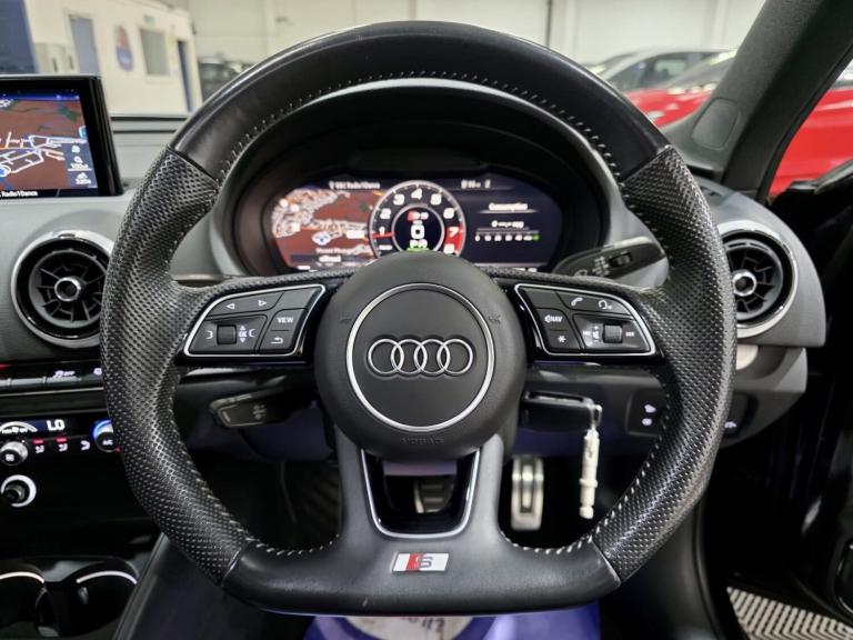 2020 20 AUDI S3 2.0 TFSI BLACK EDITION SPORTBACK 5DR QUATTRO DSG AUTO. This Vehicle Comes With Warranty As Standard, Please Call Us For More Details! Stunning Example With Only 2 Previous Keepers From New Presented In Audi Mythos Black Paintwork With Contrasting Black Super Sport Leather Seats Complete With 18 Inch Revo RF018 Alloy Wheels Finished In Gloss Black Paintwork Wrapped In Four Michelin Tyres. Enthusiast Owned Example Covering 49,000 Miles From New, Backed Up With Full Audi Service History Which Is Up To Date With The Digital Service Record Which Is To Hand. Very Clean Throughout With Excellent Bodywork, Unmarked Interior And Outstanding Wheels, New Owner Won't Be Disappointed. This Car Comes With Two Keys. Its 2.0 Litre Turbo Petrol Engine Produces 296Bhp And 400Nm Of Torque. This Is Matched With Its 7 Speed Automatic Gearbox With The Option Of Changing Gear With F1 Style Paddle Shifters Partnered With Its Quattro All Wheel System Which Makes For A Superb Drive! This Example Benefits From Some Subtle Modifications Including The Following; *Revo RF018 Alloy Wheels. *Racing Line Lowering Springs. *RS Front Grille. *Exhaust Resonator Delete *C Hook Brake Discs. *Maxton Spoiler Lip. Outstanding Spec Includes; *Audi Mythos Black Paintwork. *Black Heated Leather Super Sport Seats. *18 Inch Revo RF018 Alloy Wheels Finished In Gloss Black Paintwork. *Electronic Tilt And Slide Panoramic Sunroof. *Audi Drive Select. (Efficiency, Comfort, Auto, Dynamic, Individual) *Multi Function Steering Wheel. *Cruise Control System. *Virtual Dash. *Digital Dual Climate Control. *Black Exterior Styling Pack. *Electric Folding Wing Mirrors. *Heated Wing Mirrors. *Parking Sensors. *Automatic Xenon Headlights. *Automatic Windscreen Wipers. *Upgraded Bang & Olufsen Sound System. *Audi Multi Media Interface. *Apple Car Play. *Satellite Navigation. *DAB Radio. *Bluetooth Connectivity. *Electronic Parking Brake. *Illuminated Door Sills. *Split Folding Rear Seats. Excellent Standard Spec Includes; Height Adjustable Steering Wheel, Cup Holders, Traction Control, Arm Rest, Auto Dimming Rear View Mirror, 12V And Much More. All Our Vehicles Have Been Road Tested With Multi Point Checks And We Welcome RAC Or AA Inspections, For Your Added Peace Of Mind All Of Our Vehicles Are HPI Clear. We Can Provide A Decision Within 30 Minutes Please Call Us To Discuss Your Requirements, Our Finance Partners Include Close Brothers CF247 Motonovo Evolution And Others. We Offer Full Dealer Facilities Including A Comfortable Customer Office An Indoor Viewing Area And We Accept All Methods Of Payment, We Are Open 7 Days A Week Please Call Ahead To Ensure The Vehicle Of Interest Is Still Available, Sales 0161 336 2007 Or General Enquiries 0161 335 0008. Every effort has been made to ensure the vehicle has been described accurately in accordance with its age and mileage, The data above details the usual specification of the most recent model of this vehicle and may vary for the actual vehicle for sale. Please always check the vehicle specification prior to purchase. If You Have Any Questions Please Get In Touch And We Will Be Happy To Help. All Our Vehicles Come With Warranty Included, Extended Warranty Options Available, We Offer Finance With Competitive HP And PCP Deals Available, Visit Our Website To Use Our Online Calculator And Apply Online Today!