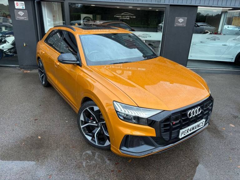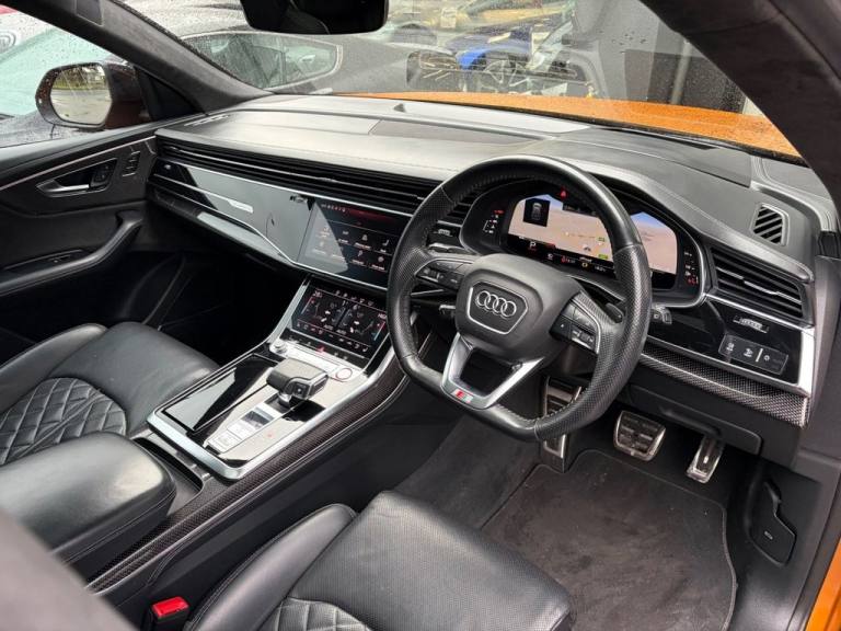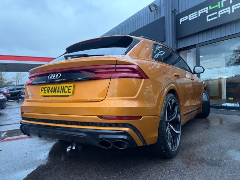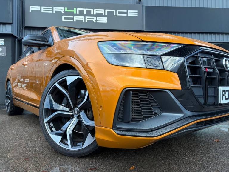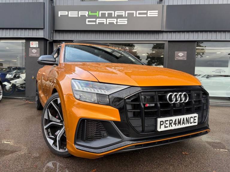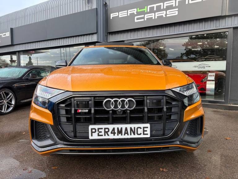 PER4MANCE CARS ARE DELIGHTED TO OFFER THIS STUNNING 2020 AUDI SQ8 VORSPRUNG FINISHED IN DRAGON ORANGE METALLIC WITH FULL BLACK HONEYCOMB PATTERN LEATHER SPORTS SEATS WITH LIGHT GREY CONTRAST STITCHING, COMFORT AND SOUND PACKAGE, HEAD UP DISPLAY, 360 PARKING CAMERA, SOFGT CLOSE DOORS, 4 ZONE CLIMATE CONTROL, FRONT AND REAR HEATED AND COOLED SEATS, PANORAMIC GLASS SUNROOF, KEYLESS ENTRY, CARBON PACK, 23" VORSPRUNG RS8 ALLOY WHEELS, SUEDE HEADLINING, BLACK ROOF RAILS, EXCLUSIVE PAINT, RED BRAKE CALIPERS WITH S LOGO, MMI NAVIGATION PLUS WITH APPLE CAR PLAY, BLUETOOTH AND DAB, FRONT AND REAR PARKING SENSORS, TYRE PRESSURE MONITOR, PRIVACY GLASS, S LINE BODYSTYLING, LED MATRIX HEADLIGHTS, RAIN AND LIGHT SENSORS, FLAT BOTTOMED 3 SPOKE LEATHER TRIMMED MULTI FUNCTION STEERING WHEEL, ADAPTIVE AIR SUSPENSION AND MUCH, MUCH MORE... CAR MAY NOT BE ON SITE PLEASE CALL TO MAKE AN APPOINTMENT! Full dealer facilities available, Finance available, please apply via our website or call for a quote. We have a team of experienced buyers who hand pick our cars from all parts of the UK so you can buy with confidence all vehicles are HPI Clear and prepared to the highest standard. We believe in providing our customers with a personal and first class level of service,Full dealer facilities available, Part exchanges welcomed. CONTACT OUR EXPERIENCED SALES TEAM ON [Phone number removed] OR EMAIL [Email address removed. Click Email button to contact us.]. .Red Paint Brake Calipers with S Logo, Dragon Orange, Black Roof Rails, 22in Alloy Wheels - 5-V-Spoke Star Design - Gloss Anthracite Black, 4-Way Lumbar Support for Front Seats, AMI - Audi Music Interface, Adaptive Air Suspension, Adaptive Windscreen Wipers with Integrated Washer Jets, Airbags - Driver - Front Passenger - Front Side - Curtain, All-Wheel Steering, Aluminium Window Trims, Anti-Theft Alarm with Tow-Away Protection, Anti-Theft Wheel Bolts and Wheel Loosening Warning, Audi Beam, Audi Connect, Audi Connect Safety and Service - e-call, Audi Drive Select with 7 Modes, Audi Music Interface in the Rear, Audi Phone Box with Wireless Charging, Audi Pre-Sense Front, Audi Smartphone Interface, Audi Virtual Cockpit - 12.3in High Resolution LCD Display, Auto Dimming and Frameless Rear View Mirror, Body Coloured Door Mirrors, Bumpers in Full Body Colour Paint Finish, City Assist Pack, Collision Avoidance Assistant, Comfort Front Centre Armrest, Comfort and Sound Package, Coming-Leaving Home Animations in Front and Rear, DAB Digital Radio, Deluxe 4-Zone Automatic Climate Control, Door Mirrors - Heated-Electrically Adjustable-Folding and Auto Dimming with Memory Function, Double Sun Visor, Driver and Front Passenger Memory Function for the Electrically Adjustable Front Seats, ESC - Electronic Stabilisation Control inc ABS - ASR and EDL, Electric Sunblinds for the Rear Side Windows and Manual Sunblind for the Rear Window, Electric Windows - Front and Rear, Electromechanical Active Roll Stabilisation, Electromechanical Parking Brake, Electromechanical Power Steering, Emergency Assist, Extended Leather Package, First Aid Kit and Warning Triangle, Flat-Bottomed 3-Spoke Leather-Trimmed Multi-Function Sport Steering Wheel, Front Sun Visors with Illuminated Vanity Mirrors, Front and Rear Floor Mats, HD Matrix LED Headlights and Dynamic Front and Rear Indicators, Head-Up Display, Headlight Washers, Headlining - Black Alcantara, Heated Front and Outer Rear Seats, Hill Descent Control, Hill Hold Assist, ISOFIX Child Seat Mounting for Front Passenger, Illuminated Door Sill Trims with S Line Logo, Inlays - Carbon Vector, Keyless Go with Remote Central Locking, LED Interior Ambient Lighting Pack, Lane Departure Warning, Light and Rain Sensor, Luggage Compartment Sill Protection in Stainless Steel, MMI Navigation Plus including MMI Touch, Natural Voice Recognition, Operating Buttons in Black - Glass Look, Panoramic Glass Sunroof, Parking System Plus - Front and Rear Sensor