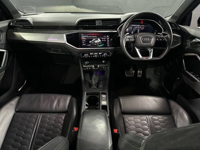 Excellent Example Audi RSQ3 Quattro in Nardo Grey with 68,900 Miles on the clock With Full Audi Service History - Last Service Completed 11/09/2025 Benefitting from a great Specification to include: Comfort & Sound Pack, Gloss Black Roof Audi Matrix Headlights With Dynamic Rear Indicators Active Lane Keep Assist RS Puddle Lights, Virtual Cockpit, 21" Gloss Black Audi Sport Alloys Red Rs Brake Callipers, Reverse Camera, Front & Rear Sensors, Audi Interior Ambient Lighting, Audi Drive Select RS Modes, Bang & Olufsen Sound System, Full Black Leather Interior with Red Honeycomb Stitching, Heated Electric Front Seats, Alcantara Interior Inlays, Gloss Black Front/Side Splitter .Leather-Alcantara - Black with Black Stitching Honeycomb Quilted Design, Nardo Grey, Comfort and Sound Package, Brake Calipers Painted in Red with RS Logo at the Front, 1 x USB-C and 1 x USB-A Port with Charge and Data Functions, 20in Alloy Wheels - 10-Spoke Star Design, 4-Way Electric Lumbar Support, 6-Airbag System, ABS - Anti-Lock Braking System, Adjustable Rear Seat Bench-Backrest with Centre Armrest and Cupholder, Advanced Key, Aluminium Look Interior Elements, Aluminium Roof Rails, Aluminium Window Trims, Ambient Lighting Pack, Anti Theft Locking Wheel Bolts, Anti-Theft Alarm, Audi Beam, Audi Connect Infotainment Services Plus including Amazon Alexa Integration (3 Year Subscription From New), Audi Connect Safety and Service - e-call, Audi Drive Select, Audi Pre-Sense Front with Pedestrian and Cyclist Recognition, Audi Side Assist, Audi Smartphone Interface Includes Wireless Apple CarPlay, Audi Sound System, Audi Virtual Cockpit - 12.3in High Resolution LCD Display, Auto Dimming and Frameless Rear View Mirror, B and C-Pillar Trim in High-Gloss Black, Bluetooth Interface, Body Coloured Rear Spoiler, Camera-Based Traffic Sign Recognition, Cloth Headlining in Black, Cross-Traffic Assist Rear, Cruise Control with Speed Limiter, DAB Digital Radio, Detail in Dashboard Around the MMI Touch Colour Display in Glass Look - Black with Surround in Aluminium Look, Door Mirrors - Electrically Folding - Adjustable and Heated with Integrated LED Side Indicators and Kerb-view Function for Passenger Side, Dual-Zone Electronic Climate Control, ESC - Electronic Stabilisation Control inc ABS - ASR and EDL, Electric Windows - Front, Electrically Adjustable Front Seats, Electromechanical Parking Brake, Electronically Operated Child Locks, Exterior Mirror Housings in Aluminium Look, First Aid Kit and Warning Triangle, Flared Wheel Arches - by 10mm, Flat Slits above Singleframe Grille, Front Centre Armrest, Front RS Sports Seats, Front Spoiler Blade - Side Blades - Inserts on Door Trim Strips and Diffuser Insert in Matt Aluminium Look, Front and Rear Floor Mats, Headlights Washers, Heated Front Seats, Hill Descent Control, Hill Hold Assist, ISOFIX Child Seat Mounting for the Front Passenger Seat with Front Passenger Airbag Deactivation and ISOFIX Child Seat Mounting and Top Tether for the Outer Rear Seats, Illuminated Door Sill Trims with RS Q3 Logo at Front, Inlays - Aluminium Race - Anthracite, Interior Elements in Black Alcantara, LED Headlights with LED Daytime Running Li