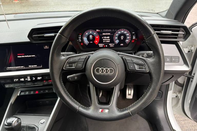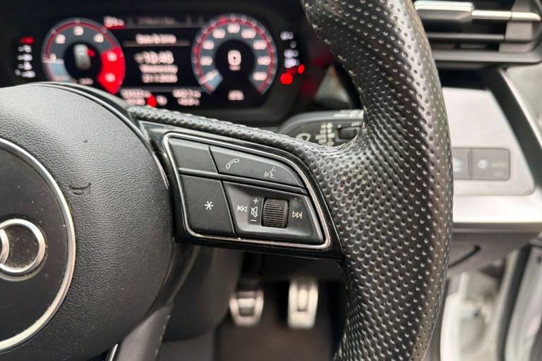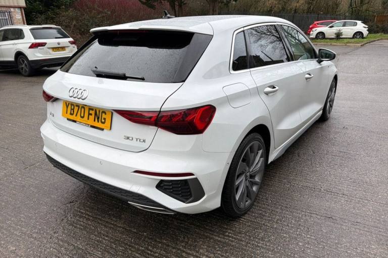 This 2020 Audi A3 TDI S line offers an impressive 61 miles per gallon, making it a highly economical choice. This particular A3 is a Euro 6 compliant model, powered by a 2.0 litre diesel engine. It comes equipped with a Bluetooth interface for seamless connectivity, dual zone electronic climate control to ensure comfort for all occupants, and rear parking sensors to aid manoeuvrability. The vehicle also features striking LED headlights with dynamic rear indicators and a light and rain sensor for automatic headlight activation. The Audi A3 TDI S line is designed to offer a superior driving experience. Its acceleration from 0 to 60 miles per hour in just 10.1 seconds provides responsive performance. Furthermore, this model benefits from a low insurance group, which can help to reduce ownership costs. The generous boot space ensures practicality for everyday use and longer journeys, making this A3 a well rounded and appealing option. Lifetime warranty available on this car, plus a £1,000 finance contribution when you part exchange. Voted UK Car Supermarket of the Year two years running, we offer 0% finance, part exchange, and lifetime warranties across our entire range. Every car is thoroughly inspected before sale and comes with a full history check, so you can buy with complete peace of mind. Buy with confidence on our best finance rates. Proud winners of the CarGurus Top-Rated Dealer 2022 and the MotoNovo Extra Mile Award. .12v Socket and Storage Compartment in Front Centre Console, 18in Alloy Wheels - 5-Arm Dynamic Design, 18in Alloy Wheels - 5-spoke V Style Diamond Cut, 2 USB-C Ports with Charge and Data Functions, 6 Passive Loudspeakers, Airbags - Driver and Front Passenger with Passenger Airbag Deactivation, Aluminium Interior Elements, Aluminium Window Trims, Anti Theft Locking Wheel Bolts, Anti-Theft Alarm, Audi Connect Emergency Call and Service, Audi Connect Navigation and Infotainment Services Plus (3 Year Subscription From New), Audi Drive Select, Audi Pre-Sense Front with Pedestrian and Cyclist Recognition, Audi Smartphone Interface, Audi Virtual Cockpit, Auto Dimming and Frameless Rear View Mirror, Automatic Start-Stop System with Recuperation, Bluetooth Interface, Body Coloured Door Mirrors, Child Seat Anchors ISOFIX in Front, Top Tether and i-Size for Outer Rear Seats, Cloth Headlining in Black, Collision Avoidance Assistant, Comfort and Sound Package, Cruise Control, DAB Digital Radio, Dual-Zone Electronic Climate Control, Electric Windows - Front, Electromechanical Power Steering, Electronically Operated Child Locks, ESC - Electronic Stabilisation Control inc ABS - ASR and EDL, Exterior Mirrors - Electrically Adjustable - Heated and Folding - Automatically Dimming on Both Sides with Built-In LED Side Indicators - Including Automatic Kerb-Side Function for the Passenger-Side, First Aid Kit and Warning Triangle and 2 Safety Vests, Front and Rear Centre Armrest in Leather, Front and Rear Floor Mats, Front Side Airbags with Head Airbags and Interaction Airbag, Front Sports Seats, Glacier White, Hill Hold Assist, I-Size and Top Tether Child Seat Mounting for the Outer Rear Seats, Illuminated Door Sill Trims with Aluminium Inserts and S Logo, Inlays - Dark Spectrum Aluminium, Lane Departure Warning, LED Headlights with LED Rear Lights and Dynamic Rear Indicators, LED Interior Light Package, Light and Rain Sensor, Luggage Compartment Floor Covering, Manual Boot Compartment Lid, MMI Navigation Plus with High Resolution 10.1in Touchscreen Colour Display, Pedals and Footrest - Stainless Steel, Privacy Glass, Privacy Glass - Dark-Tinted Rear Window - Rear Door and Side Window., Rear Parking Sensors, Rear Side Air Outlets - Grained Matt Black, Remote Central Locking, S Line Bumpers, S Line Styling, S Roof Spoiler, Seat Belt Monitoring, Split-Folding Rear Seat Bench can be Split 40: 20: 40 or Fully, with Centre Armrest and Cup Holders, Sport Suspension, Steering Wheel - 3-