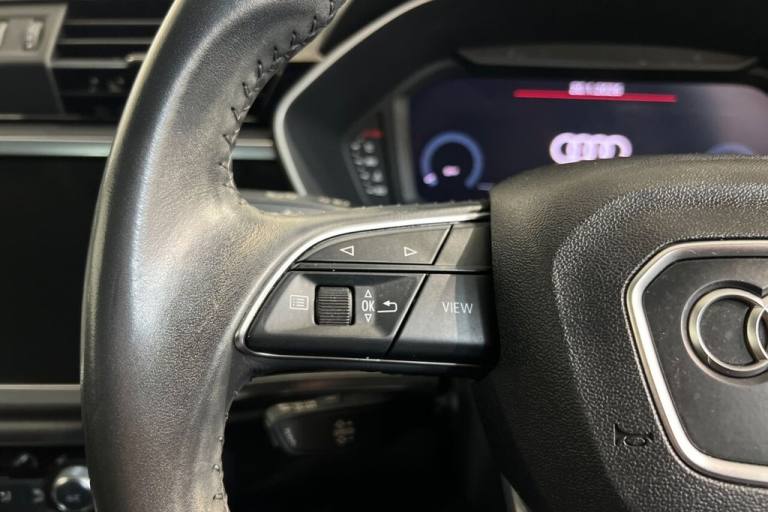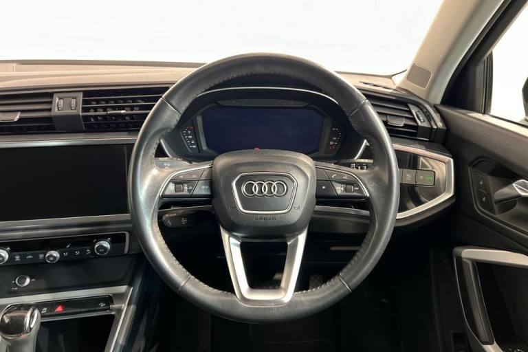 This 2020 Audi Q3 TDI Sport boasts an MOT valid until October 2026, offering excellent peace of mind for the new owner. This stylish SUV features a 2.0 litre Euro 6 diesel engine, combining efficiency with performance. The Sport trim level includes the Audi Smartphone Interface, bringing Wireless Apple CarPlay and Android Auto seamlessly into your drive, alongside a Bluetooth Interface for easy connectivity. For convenience and safety, it is equipped with rear parking sensors and LED headlights with dynamic rear indicators, complemented by a light and rain sensor for automatic headlight activation. The Audi Q3 TDI Sport stands out with its impressive fuel economy, achieving up to 52 miles per gallon, which indicates it is more economical than many similar vehicles. Furthermore, its low CO2 emissions highlight its environmental consideration. This model also offers generous boot space, making it a practical choice for families or those who require ample storage. Lifetime warranty available on this car, plus a £1,000 finance contribution when you part exchange. Voted UK Car Supermarket of the Year two years running, we offer 0% finance, part exchange, and lifetime warranties across our entire range. Every car is thoroughly inspected before sale and comes with a full history check, so you can buy with complete peace of mind. Buy with confidence on our best finance rates. Proud winners of the CarGurus Top-Rated Dealer 2022 and the MotoNovo Extra Mile Award. .18in Alloy Wheels - 7.0J 5-Double-Arm-Spoke - Design, 2 USB-C Ports with Charge and Data Functions, 3-Spoke Leather Multi-Function Steering Wheel - Height and Reach Adjustable, 6 Passive Loud Speakers, 6-Airbag System, Adjustable Rear Seat Bench-Backrest, Aluminium Look Interior Elements, Aluminium Roof Rails, Aluminium Window Trims, Anti Theft Locking Wheel Bolts, Anti-Theft Alarm, Audi Connect Infotainment Services Plus (3 Year Subscription From New), Audi Connect Safety and Service - e-call, Audi Drive Select, Audi Pre-Sense Basic, Audi Pre-Sense Front with Pedestrian and Cyclist Recognition, Audi Smartphone Interface includes Wireless Apple CarPlay, Audi Virtual Cockpit - 10.25in Display, Auto Dimming and Frameless Rear View Mirror, B and C-Pillar Trim in High-Gloss Black, Bluetooth Interface, Body Coloured Door Mirrors, Bumpers in Full Body Colour Paint Finish, Camera-Based Traffic Sign Recognition, Cloth Headlining in Lunar Silver, Cruise Control System with Speed Limiter, DAB Digital Radio, Detail in Dashboard Around the MMI Touch Colour Display in Glass Look - Black with Surround in Aluminium Look, Door Mirrors - Electrically Folding - Adjustable and Heated with Integrated LED Side Indicators and Kerb-view Function for Passenger Side, Door Sill Trims with Aluminium Inlay, Dual-Zone Electronic Climate Control, Electric Windows - Front, Electromechanical Parking Brake, ESC - Electronic Stabilisation Control inc ABS - ASR and EDL, First Aid Kit and Warning Triangle, Frame of Front Side Air Inlets in Selenite Silver - Matt, Front and Rear Floor Mats, Front Centre Armrest, Front Spoiler in Selenite Silver - Matt, Grille Surround in Silver - Chrome, Grille Vertical Bars in Aluminium Silver - Matt, Hill Descent Control, Hill Hold Assist, Index Cloth - Sport Seats - Black-Silver, Inlays - Micrometallic Silver, Interior Lighting, ISOFIX Child Seat Mounting for the Front Passenger Seat with Front Passenger Airbag Deactivation and ISOFIX Child Seat Mounting and Top Tether for the Outer Rear Seats, Lane Departure Warning, LED Headlights with LED Daytime Running Lights and Dynamic Rear Indicator, LED Rear Lights, Light and Rain Sensor, Luggage Compartment Sill Protection in Stainless Steel, Manually Adjustable Front Seats, MMI Navigation Plus with High Resolution 10.1in Touchscreen Colour Display, Mythos Black, Non-Smoking Package, Power Operated Tailgate, Progressive Steering, Radiator Grille - Titanium Black, Rear Diffuser in Selenite Silver - Matt, Rear Park