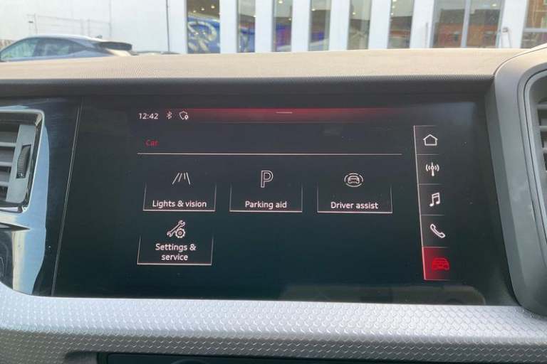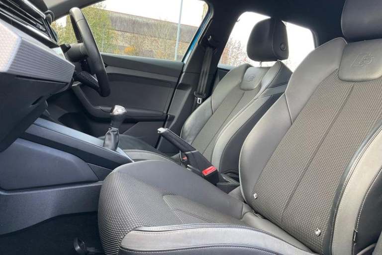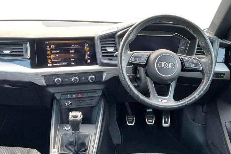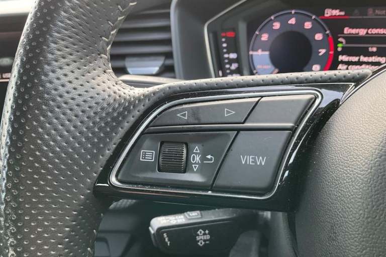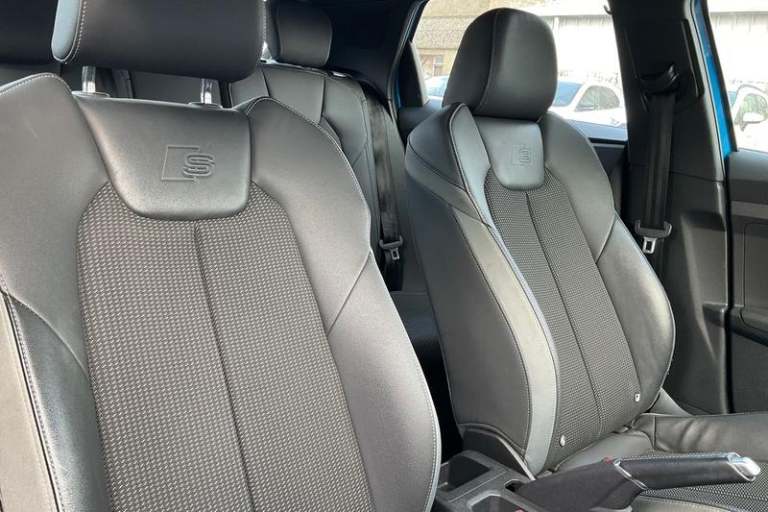 10.25 Digital instrument cluster display classis style instrument dials + speed, odometer, time, outside temperature, telephone menu + fuel level warning, Advanced driver attention and drowsiness monitor, Audi connect emergency call and service, Audi remote connect and control, Bluetooth interface, Camera based traffic sign recognition, Cruise control, Driver's information system, Electromechanical power steering, Lane departure warning system, Rear parking sensor, Service interval indicator, Smartphone interface, Speed limiter, Start stop system with recuperation, Voice control system, Washer fluid level indicator, Auto dimming rear view mirror, Body coloured door mirrors, Door sill trims with aluminium inlays and S line logo in front, Electric front and rear windows, Electrically adjustable, heated, folding door mirrors with integrated LED side indicator, Front side air inlets in grained matt black and C frame in anthracite black, Headlight cleaning system, Heat insulating glass windscreen and side windows, Heated rear windscreen, High level LED brake light, LED daytime running lights, LED headlights with range control LED rear lights + dynamic rear indicators, Light and rain sensors, Privacy glass, Radiator grille and rear diffuser in matt anthracite black, Radiator protective grille frame in matt aluminium silver, Rear fog lights, Rear side wing doors, Rear wiper, Side front spoiler lips in grained matt black, 12V socket in centre console with two cup holders, 3 rear seats