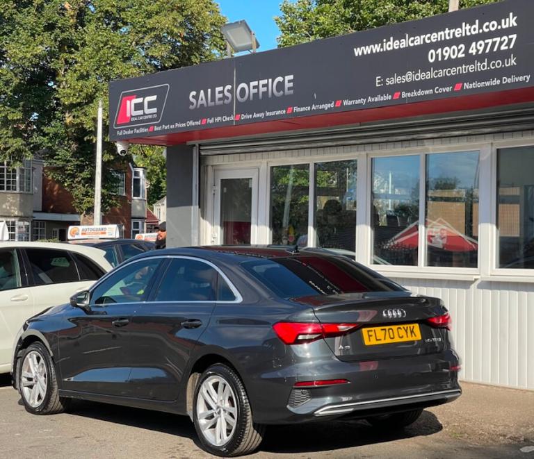 General Vehicle Information Year: 2020 Make: AUDI Model: A3 TFSI 35 SPORT Engine Size: 1.5L Transmission :AUTOMATIC Body Style: SALOON Fuel: PETROL MPG: 49.6 BHP: 148 Registration: FL70CYK Current Mileage: 68,087 Number of previous owners: 2 Number of keys:2 V5 Doc: Present MOT Expiration Date: New 12 month MOT Service History: Present Road Tax per year: £ Euro Emission Standard: EURO 6 !!! READY TO DRIVE AWAY TODAY !!! Don't let it get away! Hold this vehicle with a fully refundable £99 deposit reserve online or call and speak to our sales manager READY TO DRIVE AWAY Vehicle Specification: Top 5 Features: 17 INCH 5-PARALLEL-SPOKE ALLOYS AUDI VIRTUAL COCKPIT REAR PARKING SENSORS MMI NAVIGATION PLUS WITH 10.1"" TOUCHSCREEN LED HEADLIGHTS Exterior Spec: BODY-COLOURED MIRRORS REAR SPOILER LED HEADLIGHTS SPORT STYLING CLEAR GLASS WINDOWS Interior Spec: AUDI VIRTUAL COCKPIT BLUETOOTH DAB RADIO DUAL-ZONE CLIMATE CONTROL CRUISE CONTROL LEATHER MULTI-FUNCTION STEERING WHEEL service history: Vehicle Purchase Price: £15,495.00 Full Dealer Facilities Buy with confidence All of our vehicles undergo a comprehensive multi-stage quality and safety assurance inspection, ensuring each vehicle meets our high preparation standards before they go on sale. Every aspect of your vehicle is inspected, including: Vehicle Exterior Bodywork, Vehicle Interior Condition, Brake Discs, Pads, Shoes & Drums, Oil Leaks, Gearbox Operation, Steering, Suspension, Engine Performance, Exhaust Condition, Wheel Balance/Tracking Tyre Depths & Pressures, Electrical Systems, Road Test, Many more. Will also come with a up to date service and new 12 month MOT if required. Buy a car online from the comfort of your home No matter where you are, we’ve made it really easy to buy a car online in 3 simple steps. 1:Choose your car Reserve online for £99 or speak to our contact center you can also request a personalized video. 2:Paperwork and payment made easy Complete your deal online, including part-exchange and any finance. 3:Choose your delivery option Contactless Click & Collect and home delivery available. FOR MORE INFO PLEASE CALL OUR SALES TEAM We are open 6 days a week Monday- Saturday 9:00am till 6:00pm. Appointments only Click and Collect Service Available Open to Inspection and Viewing HPI Checks Done on all Vehicles Nationwide Delivery Available England, Scotland and Wales Extended Warranty Available up to 6,12 or 24 Months Warranty policies to suit our individual needs. Talk to one of our highly trained sales Managers to decide what suits you best. Driveaway Cover Available Part Exchange Available Brake down cover Available For more information please call our office on [Phone number removed] or 01902497727 or visit our website / social media @idealcarcentreltd for more photos and info.. 1 x USB-C and 1 x USB-A Connection with Charge and Data Functions,12v Socket and Storage Compartment in Front Centre Console,17in Alloy Wheels - 8.0J 5-Parallel-Spoke Design,6 Passive Loudspeakers,Airbags - Driver and Front Passenger with Passenger Airbag Deactivation,Aluminium Interior Elements,Aluminium Window Trims,Anti Theft Locking Wheel Bolts,Anti-Theft Alarm,Audi Connect Emergency Call and Service,Audi Connect Infotainment Services - 36 Month Trial,Audi Drive Select,Audi Pre-Sense Front with Pedestrian Recognition,Audi Smartphone Interface,Audi Virtual Cockpit,Auto-Dimming and Frameless Rear View Mirror,Automatic Start-Stop System with Recuperation,Bluetooth Interface,Body Coloured Door Mirrors,Body-Coloured Roof Spoiler,Cloth Headlining in Steel Grey,Collision Avoidance Assistant,Cruise Control,DAB Digital Radio,Door Mirrors - Electrically Adjustable - Heated and Folding - Automatically Dimming,Dual-Zone Electronic Climate Control,ESC - Electronic Stabilisation Control inc ABS - ASR and EDL,Electric Windows - Front,Electromechanical Power Steering,Electronically Operated Child Locks,First Aid Kit and Warning Triangle and 2 Safety Vests,Floor Mats,Front Centre Armrest,Front Door Sill Trims with Aluminium Inserts,Front Seats Manually Adjustable,Front Side Airbags with Head Airbags and Interaction Airbag,Hill Hold Assist,I-Size and Top Tether Child Seat Mounting for the Outer Rear Seats,Inlays - Silk Effect Paint in Platinum Grey,Interior Lighting,LED Headlights with LED Daytime-Running Lights - Halogen Lights in the Rear,Lane Departure Warning,Light and Rain Sensor,Luggage Compartment Floor Covering,MMI Navigation Plus with High Resolution 10.1in Touchscreen Colour Display,Manual Boot Compartment Lid,Rear Parking Sensors,Rear Window - Rear Door Windows and Rear Side Windows in Clear Glass,Remote Central Locking,Seat Belt Monitoring,Split Folding Rear Seat Bench,Sport Exterior Styling,Standard Suspension,Steering Wheel - 3-Spoke Leather-Multi-Function,Tool Kit,Tyre Pressure Loss Indicator,Tyre Repair Kit,Voice Control System with Natural Language Interaction,Windscreen with Acoustic Glazing
