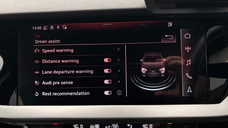 1 x USB-C and 1 x USB-A Connection with Charge and Data Functions, 12v Socket and Storage Compartment in Front Centre Console, 6 Passive Loudspeakers, Audi Connect Emergency Call and Service, Audi Connect Infotainment Services - 36 Month Trial, Audi drive select, Audi Smartphone Interface, Automatic Start-Stop System with Recuperation, Bluetooth Interface, Collision Avoidance Assistant, Cruise Control, DAB Digital Radio, Electromechanical Power Steering, LED Headlights with LED Rear Lights and Dynamic Rear Indicators, Lane Departure Warning, Light and Rain Sensor, MMI Navigation Plus with High Resolution 10.1in Touchscreen Colour Display, Rear Parking Sensors, Sport Suspension, Tyre Pressure Loss Indicator, Voice Control System with Natural Language Interaction, 18in Alloy Wheels - 5-Arm Dynamic Design, Aluminium Window Trims, Anti Theft Locking Wheel Bolts, Body Coloured Door Mirrors, Door Mirrors - Electrically Adjustable - Heated and Folding - Automatically Dimming, Electric Windows - Front, Privacy Glass, Rear Window - Rear Door Windows and Rear Side Windows in Clear Glass, S Line Bumpers, S Line Styling, S Roof Spoiler, Tyre Repair Kit, Windscreen with Acoustic Glazing, Aluminium Interior Elements, Audi Virtual Cockpit, Auto-Dimming and Frameless Rear View Mirror, Door Sills with Aluminium Inserts, Dual-Zone Electronic Climate Control, Floor Mats, Front Sports Seats, Front and Rear Centre Armrest in Leather, Headlining - Black Cloth, Inlays - Dark Spectrum Aluminium, LED Interior Light Package, Luggage Compartment Floor Covering, Pedals and Front Footrest - Stainless Steel, Split Folding Rear Seat Bench, Steering Wheel - 3-Spoke Leather-Multi-Function, Tool Kit, Airbags - Driver and Front Passenger with Passenger Airbag Deactivation, Anti-Theft Alarm, Audi Pre-Sense Front with Pedestrian Recognition, ESC - Electronic Stabilisation Control inc ABS - ASR and EDL, Electronically Operated Child Locks, First Aid Kit and Warning Triangle and 2 Safety Vests, Front Side Airbags with Head Airbags and Interaction Airbag, Hill Hold Assist, I-Size and Top Tether Child Seat Mounting for the Outer Rear Seats, Remote Central Locking, Seat Belt Monitoring