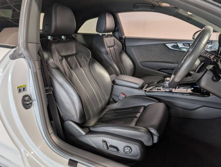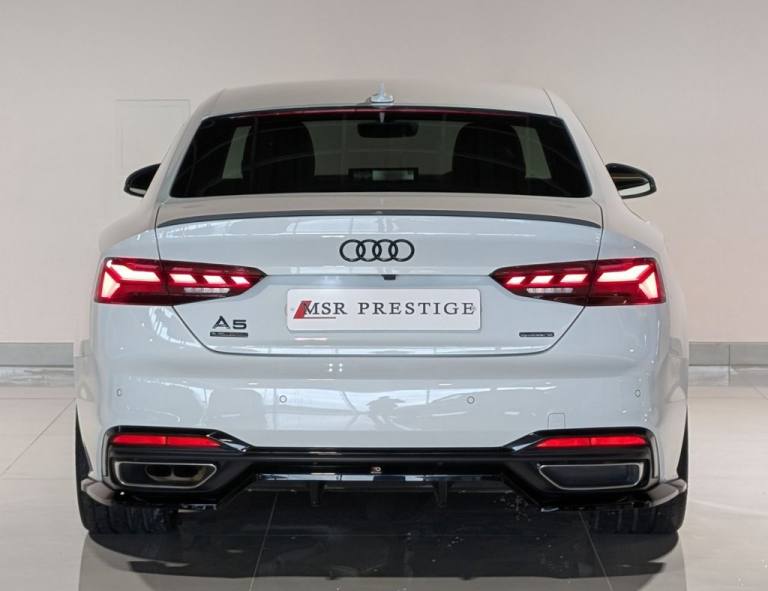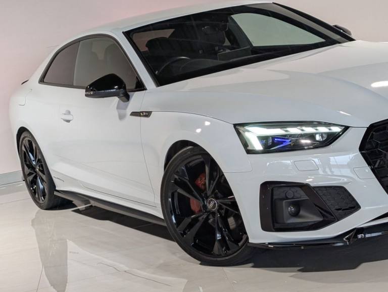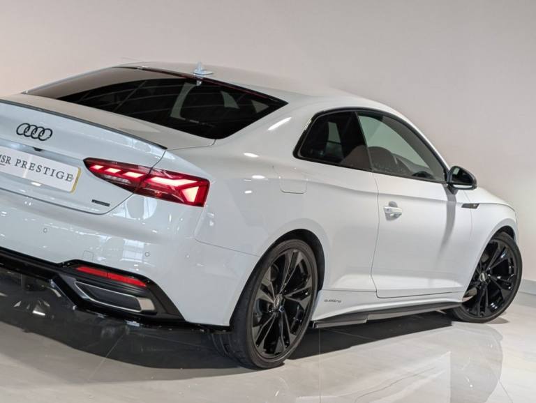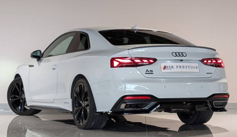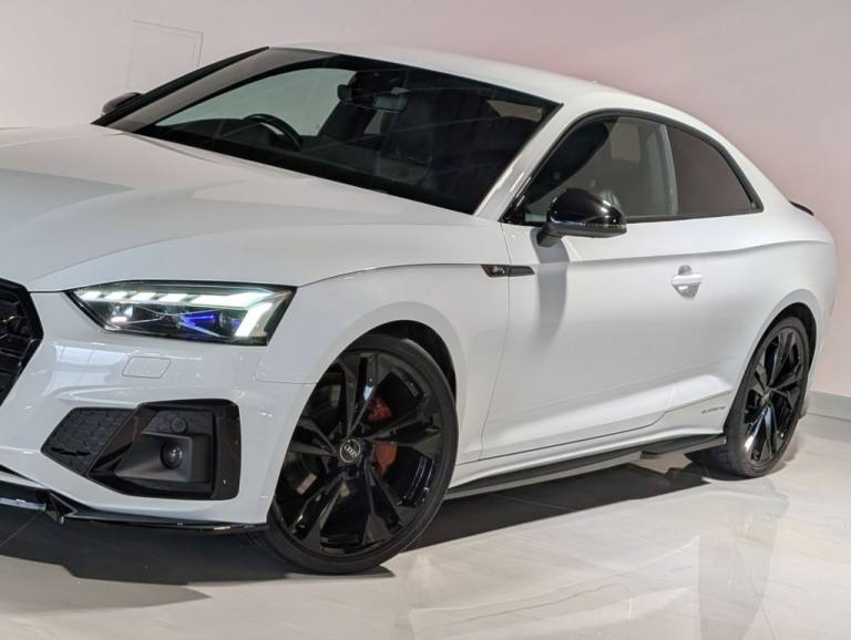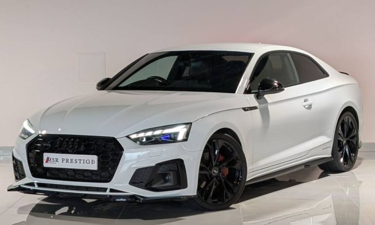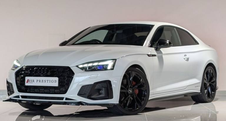 MSR Prestige are delighted to offer this stunning Audi A5 2.0 TDI 40 Edition 1 Coupe S Tronic quattro, finished in White and complemented by a refined Black leather interior. This example benefits from a full service history with recorded intervals at 9,500 miles, 13,600 miles, 17,200 miles (all main dealer) and 27,100 miles, demonstrating careful ownership and excellent maintenance. This Edition 1 model is superbly specified, combining sporty styling with everyday comfort and advanced technology. Externally, it features xenon headlights with DRLs, a full Black Pack, gloss black alloy wheels, red brake calipers, privacy glass, gloss black front splitter, gloss black side skirts, gloss black rear spoiler and gloss black rear diffuser, creating a sharp and aggressive road presence. Inside, the cabin offers premium comfort and cutting-edge technology. Electric seats with S embossed detailing, heated seats, dual climate control and air conditioning ensure comfort in all conditions. Electric windows, electric mirrors, electric folding heated mirrors and an electric handbrake with auto hold add convenience to everyday driving. The crystal gear shifter adds a distinctive and premium finishing touch. Technology is a standout feature, including a digital dash, multifunction steering wheel, voice command, telephone preparation and cruise control. The Bang and Olufsen sound system delivers exceptional audio quality, while the multimedia system includes satellite navigation, DAB, FM and AM radio, USB connectivity and Bluetooth. Smartphone integration is seamless with Apple CarPlay and Android Auto. Manoeuvring is made effortless with a 360-degree camera system, supported by auto lights and auto wipers for added practicality. Additional interior features such as an armrest and cup holders complete a well-designed and driver-focused cabin. At MSR Prestige, we pride ourselves on offering high-quality vehicles that combine style, performance and comfort. Competitive finance options are available, along with extended warranties for added peace of mind. Part exchange is welcome at trade prices and nationwide delivery can be arranged. Please note the number of keys will be confirmed with a sales representative. Vehicles may include aesthetic styling enhancements, and as with any pre-owned vehicle, minor cosmetic imperfections such as light scratches or stone chips may be present. Vehicle information and specifications are provided to the best of our knowledge and shoul.20in Alloy Wheels - 9J 5-Twin-Spoke - Polygon Design - Gloss Anthracite Black - Gloss Turned Finish, 4-Way Electric Lumbar Support, 6-Airbag System, 8 Passive Loudspeakers, Anti Theft Locking Wheel Bolts, Anti-Theft Alarm, Audi Connect Infotainment Services (36 Month Subscription From New), Audi Connect Safety and Service, Audi Drive Select, Audi Phone Box with Wireless Charging, Audi Smartphone Interface, Audi Virtual Cockpit, Auto-Dimming Rear-View Mirror, Automatic Start-Stop with Coasting Functionality and Efficiency Programme, Black Styling Package, Cloth Headlining in Black, Contrast Stitching on Seats - Steering Wheel and Gear Lever Gaiter, Cruise Control System with Speed Limiter, DAB Digital Radio Reception, Deluxe 3-Zone Electronic Climate Control, Door Handles - Body Coloured, Door Mirrors - Black Housing, ESC - Electronic Stabilisation Control inc ABS - ASR and EDL, Electric Boot Lid Release, Electric Windows - Front, Electrically Adjustable Front Seats, Electromechanical Power Steering, Email - Calendar and Text Messages Can Be Displayed on your Vehicles MMI, First Aid Kit and Warning Triangle, Flat-Bottomed 3-Spoke Leather High Multi-Function Steering Wheel, Front Centre Armrest, Front Spoiler Lip in Body Colour, Gear Lever Knob in Black Perforated Leather, Heated Front Seats, Hill Hold Assist, ISOFIX Child Seat Mounting and Top Tether, Illuminated Door Sill Trims with S Logo, Inlays - Piano Finish - Black, Keyless Go, LED Interior Light Package, Light and Rain Sensor, MMI Navigation Plus with MMI Touch, Matrix LED Headlights with Audi Laser Light - Dynamic Light Sequencing - Dynamic Indicator, Multi Collision Brake Assist, Parking System Plus - Front and Rear Sensors, Pedals in Stainless Steel, Pop-Up Bonnet for Pedestrian Protection, Pre-Sense City, Privacy Glass, Radiator Grille with Honeycomb Structure in Grained Matt Black, Rear-View Camera, S Line Front and Rear Bumpers and Side Skirt, S Line Rear Diffuser in Matt Titanium Black with Trim Strip in Matt Aluminium Silver, Seat Belt Monitoring, Side Air Inlets in Grained Matt Black with Inlay in Matt Aluminium Silver, Split-Folding 2-Seater Rear Seat Bench in 3 Parts - 40-20-40 with Rear Centre Armrest, Sport Suspension, Tailpipe Trims in Matt Aluminium Silver, Tool Kit, Two Additional USB Ports for Rear Passengers in the Rear Centre Console, Tyre Repair Kit, Voice Control