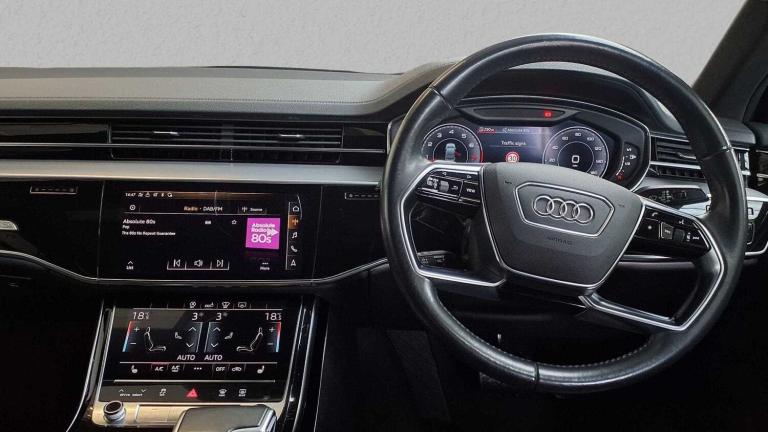 Upper Inlays in Piano Finish - Black, Valcona Leather - Sports Seats with S Embossed Logo - Black, Daytona Grey, 2-Zone Automatic Air Conditioning, 3-seat Rear Bench with Centre Armrest, 4-Way Electric Lumbar Support, Audi Virtual Cockpit, Cloth Headlining in Black, Comfort Centre Armrest - Front, Comfort Contour Seats, Connect Package Plus, Electric Front Seats with Memory Function, Front Reading Lights, Front and Rear Floor Mats, Gear Knob - Leather, Glove Compartment Cooling, Head Restraints - Rear, Heated Front Seats, LED Interior Light Package, Lower Inlays in Dark Matt Brushed Aluminium, Operating Buttons in Black - Glass with Extended Aluminium, Power Door Closure, Power Operated Tailgate, Sun Visors with Illuminated Vanity Mirrors on Driver and Front Passenger Side, Twin-Spoke Leather Multi-Function Steering Wheel with Shift Paddles, 20in Alloy Wheels - Audi Sport Cast 5-V-Spoke Star Design in Gloss Anthracite Black - Diamond Turned Finish, ASF - Audi Space Frame, Acoustic Double Glazing, Anti-Theft Wheel Bolts and Wheel Loosening Warning, Black Door Mirrors, Black Exterior Styling, Door Mirrors - Electrically Adjustable - Heated - Folding - Automatically Dimming with Memory Function and Integrated LED Indicator, Electric Windows - Front, Front and Rear Brake Calipers - Painted Black, Privacy Glass, Side and Rear Windows in Heat-Insulating Glass, Tyre Repair Kit, Windscreen with Acoustic Glazing, ABS - Anti-lock Braking System, Advanced Key, Anti-Theft Alarm with Tow-Away Protection, Audi Pre-Sense Basic, Audi Pre-Sense Front, Driver and Front Passenger Airbag, Extended Pedestrian Protection, First Aid Kit and Warning Triangle, Hill Hold Assist, ISOFIX Child Seat Mounting for Outer Rear Seats, Seat Belt Reminder, Side Airbags - Front and Rear Head Airbag System, AMI - Audi Music Interface, Adaptive air suspension, Adaptive Cruise Control with Speed Limiter, Adaptive Cruise Control with Stop&Go, Audi Connect, Audi Connect Safety and Service - e-call, Audi drive select, Audi HD Matrix LED Headlights, Audi Phone Box with Wireless Charging, Audi Sound System, Audi Wireless Smartphone Interface, Camera-Based Traffic Sign Recognition, DAB Digital Radio, Head-Up Display, High-Beam Assist, LED Rear Combination Lamps with Dynamic Turn Signal, MMI Navigation Plus including MMI Touch, Parking System Plus - Front and Rear Sensors, Premium MMI Radio Plus, Rear-View Camera, Tyre Pressure Warning Light, quattro All-Wheel Drive with Self-Locking Centre