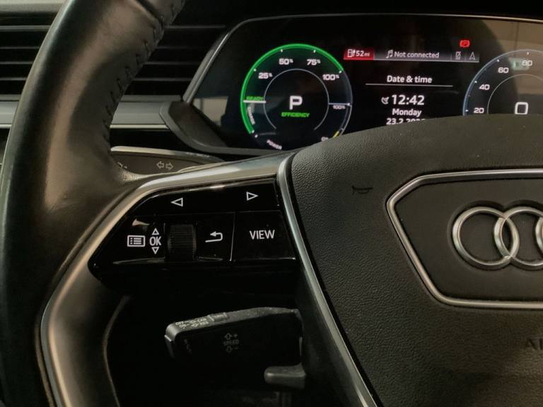 Why This Audi e-tron Wins? This 2020 Audi e-tron Technik delivers the perfect introduction to premium electric driving. As a fully electric SUV with quattro all wheel drive, it offers smooth, silent acceleration paired with confident grip in all conditions. The 71 kWh battery provides a maximum range of up to 194 miles when new, making it ideal for both daily commuting and longer motorway journeys. With a full service history and a clear vehicle history check, this example offers complete peace of mind. The Technik trim ensures a high specification interior, combining Audis renowned build quality with advanced technology and comfort features. Performance is equally impressive, accelerating from 0-60mph in just 6.8 seconds — strong evidence that electric efficiency doesnt mean compromising on power. Charging is simple and flexible. A full home charge using a 7kW wall box takes approximately 9 hours and 10 minutes, while rapid public charging can take the battery from empty to 80% in just 34 minutes — perfect for quick top-ups on the go. Your Peace of Mind? - Clear vehicle history check - Optional 3-36-month extendable warranties - Free 12-month AA roadside assistance - Fully prepared to showroom standard with its existing MOT and servicing, and we can organise any further MOT or service enhancements at your request. - Drive Away, Insurance Available - No hidden or extra costs, like admin fees Autotraders 2024 Insights: Top 3 e-tron Buyer Priorities: - Electric Driving Range - Charging Convenience - Premium Comfort & Technology - This e-tron answers those priorities perfectly. Its practical range, rapid charging capability, and high-spec Technik trim combine to create a refined, future-ready SUV that delivers both luxury and efficiency in equal measure. Stress-Free Next Steps: - Free Part Exchange Valuation - £0 Deposit Car Finance - Includes free credit checker - Reserve for £99 - Fully refundable.AMI - Audi Music Interface - Front, Audi Connect, Audi Connect Safety and Service - e-call, Audi Smartphone Interface Includes Wireless Functionality, Audi Sound System, DAB Digital Radio, MMI Navigation Plus with MMI Touch - Twin Touch Screens with Haptic Feedback, Vehicle Inlet Combo 2 - EU CCS, Privacy Glass, 20in Alloy Wheels - 5-Arm Design, Anti-Theft Wheel Bolts and Wheel Loosening Warning, Body Coloured Door Mirrors, Bumpers - Contrasting, Door Mirrors - Electrically Adjustable - Heated - Folding - Automatically Dimming with Memory Function with Kerb View Function for Passenger Side, Electric Windows - Front and Rear, Gloss Styling Pack, 2-Zone Automatic Air Conditioning, 4-Way Lumbar Support for Front Seats, AC and DC Charging Access Point on Drivers Side and Second AC Charging Access Point on Passenger Side, Audi Virtual Cockpit, Auto Dimming and Frameless Rear View Mirror, Cloth Headlining in Lunar Silver, Door Sills with Aluminium Inlays, Electrically Adjustable Front Seats including Memory Function for Drivers Seat, Four-Spoke Multi-Function Leather Steering Wheel with Paddles, Front and Rear Floor Mats, Heated Front Seats, Inlays in Graphite Grey Paint Finish, Keyless Go, LED Interior Light Package, Luggage Compartment Cover, Power Operated Tailgate, Removable Net Partition, Sun Visors with Illuminated Vanity Mirrors, Tool Kit, Galaxy Blue, 11 kW Onboard Charger, Adaptive Air Suspension, Household Plug Type G - GB, Industry Plug CEE 32 A-230 V, LED Headlights with Function-On-Demand Preparation, LED Rear Lights, Mode 3 Type 2-AC Charging Cable 22kW, Progressive Steering, ABS - Anti-Lock Braking System, Active Vehicle Alerting System - AVAS, Airbags - Driver, Anti-Theft Alarm, Audi Drive Select, Audi Pre-Sense Front and Basic, Compact e-tron Charging System, Cruise Control with Speed Limiter, First Aid Kit and Warning Triangle, ISOFIX Child Seat Mounting for Front Passenger Seat with Front Passenger Airbag Deactivation, ISOFIX Child Seat Mounting for Outer Rear Seats, Lane Departure Warning, Parking System Plus with 360 Degree Sensors and Function-On-Demand Preparation, Rear View Camera, Side Airbags - Front and Head Airbag System