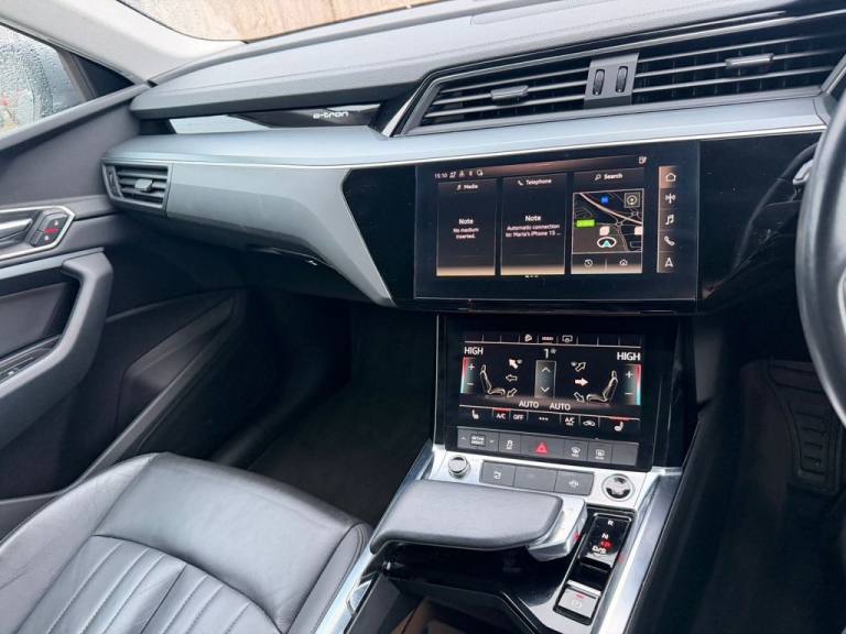 .11 kW Onboard Charger, 2-Zone Automatic Air Conditioning, 20in Alloy Wheels - 5-Arm Design, 4-Way Lumbar Support for Front Seats, ABS - Anti-Lock Braking System, AC and DC Charging Access Point on Drivers Side and Second AC Charging Access Point on Passenger Side, AMI - Audi Music Interface - Front, Active Vehicle Alerting System - AVAS, Adaptive Air Suspension, Airbags - Driver, Anti-Theft Alarm, Anti-Theft Wheel Bolts and Wheel Loosening Warning, Audi Connect, Audi Connect Safety and Service - e-call, Audi Drive Select, Audi Pre-Sense Front and Basic, Audi Smartphone Interface Includes Wireless Functionality, Audi Sound System, Audi Virtual Cockpit, Auto Dimming and Frameless Rear View Mirror, Body Coloured Door Mirrors, Bumpers - Contrasting, Cloth Headlining in Lunar Silver, Compact e-tron Charging System, Cruise Control with Speed Limiter, DAB Digital Radio, Door Mirrors - Electrically Adjustable - Heated - Folding - Automatically Dimming with Memory Function with Kerb View Function for Passenger Side, Door Sills with Aluminium Inlays, Electric Windows - Front and Rear, Electrically Adjustable Front Seats including Memory Function for Drivers Seat, First Aid Kit and Warning Triangle, Four-Spoke Multi-Function Leather Steering Wheel with Paddles, Front and Rear Floor Mats, Gloss Styling Pack, Heated Front Seats, Household Plug Type G - GB, ISOFIX Child Seat Mounting for Front Passenger Seat with Front Passenger Airbag Deactivation, ISOFIX Child Seat Mounting for Outer Rear Seats, Industry Plug CEE 32 A-230 V, Inlays in Graphite Grey Paint Finish, Keyless Go, LED Headlights with Function-On-Demand Preparation, LED Interior Light Package, LED Rear Lights, Lane Departure Warning, Luggage Compartment Cover, MMI Navigation Plus with MMI Touch - Twin Touch Screens with Haptic Feedback, Mode 3 Type 2-AC Charging Cable 22kW, Parking System Plus with 360 Degree Sensors and Function-On-Demand Preparation, Power Operated Tailgate, Progressive Steering, Rear View Camera, Removable Net Partition, Side Airbags - Front and Head Airbag System, Sun Visors with Illuminated Vanity Mirrors, Tool Kit, Vehicle Inlet Combo 2 - EU CCS
