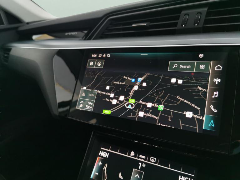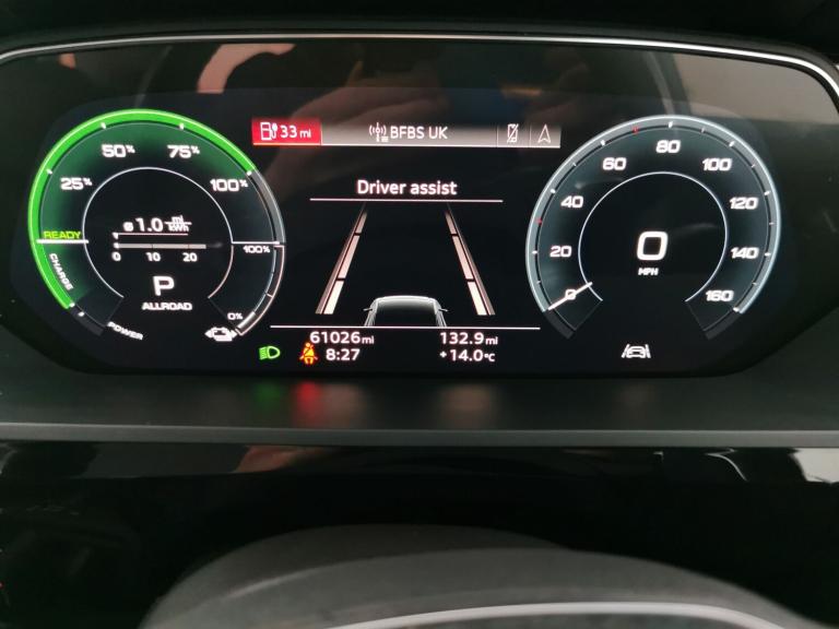 Experience luxury and innovation with this sleek black Audi e-tron SUV. Enjoy upgraded sound, heated leather seats, electric memory seats, and adjustable suspension for ultimate comfort. Stay connected with MMI Navigation Plus, Audi Virtual Cockpit, Apple CarPlay, and Sat Nav. Safety is a priority with Audi Lane Assist, lane departure warning, keyless entry, LED headlights, and a reversing camera. Choose refined electric driving in a spacious, impressively equipped Audi. 3 services recorded, last serviced on 02/03/2026 at 61,025 miles. MOT to 21/01/2027. Visit our website for service history, online valuation, full vehicle specification plus multiple images. Certain features listed may be available via subscription packages at extra costs, please consult with Audi for details. This vehicle is VAT qualifying. Any feature/option specified here is from 3rd party data. We cannot guarantee the accuracy of any specification supplied by a 3rd party. We recommend that you physically check the specification of the vehicle on site prior to purchase. This information does not form part of the buying contract. Terms & Conditions apply. We have over 2,000 cars available from our 10 national branches, check our website to see all our stock. Our Trustpilot rating is 4.4/5 with over 9,000 reviews.