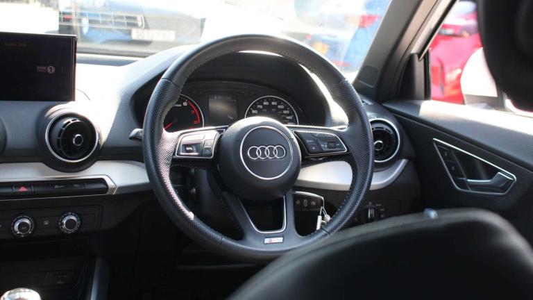 .The Audi Q2 30 TFSI S Line is a compact SUV that exudes luxury and performance in a sleek, city-friendly package. Powered by a 1.0 TFSI engine, this SUV is equipped with the latest tech, including Audis drive select, dynamic suspension, and MMI navigation with 3D maps for intuitive route guidance. Inside, the S Line touches stand out, with S sport seats, illuminated door sills, and stainless steel pedals. Enjoy a premium driving experience with Apple CarPlay, Bluetooth streaming, and a 7 MMI screen that integrates seamlessly with your devices. For ease, the power-operated tailgate adds convenience to your daily routine. The LED headlights and dynamic rear indicators highlight the bold exterior, complemented by the S Line body styling with custom bumpers, side skirts, and distinctive alloy wheels. Front and rear electric windows, rain and light sensors, and ISOFIX child seat attachments make this Q2 ideal for both daily commutes and family trips. Safety is a priority with multi-collision brake assist, hill hold assist, and Pre-sense front, while features like cruise control and electromechanical parking brake enhance your driving comfort..Audi drive select, Audi smartphone interface, Automatic start/stop system with recuperation, Bluetooth interface includes bluetooth audio streaming, Cruise control, MMI - Multi Media Interface control system, MMI SD card integrated nav with 3D map display, dynamic route guidance with TMC, MMI search, natural voice recognition and myAudi special destinations, Power operated tailgate, Progressive steering, Service interval indicator, Dynamic suspension, 2 x SDXC card reader, Audi music interface - apple iPod, apple iPhone, USB storage media, compatible MP3 players, 2 x USB charging points and 1 x Aux-in, CD Drive, DAB digital radio and AM/FM radio, MMI radio plus with 7'' colour MMI screen and MMI controller, Black window trims, Bumper in full body colour paint finish, Chrome exhaust tailpipe, Electrically adjustable and heated door mirrors with integrated LED side indicators, Front and rear electric windows, Front underbody guard and rear diffuser trim in selenite silver, Front windscreen with grey tinted sunband, Headlight washers, Interior mirror, LED headlights with LED rear lights + dynamic rear indicators, LED indicator lights, Manual folding door mirrors, Rain and light sensors, Rear wiper, S Line badges on the front wings, S Line body styling - front and rear bumpers, side skirts, radiator grille, rear diffuser