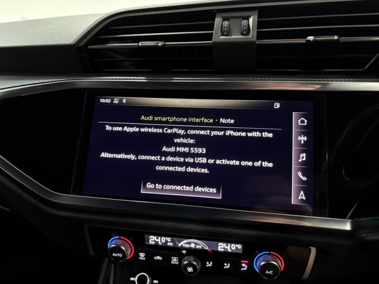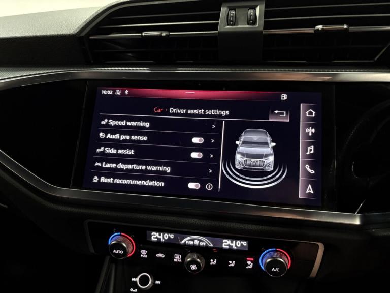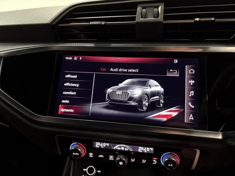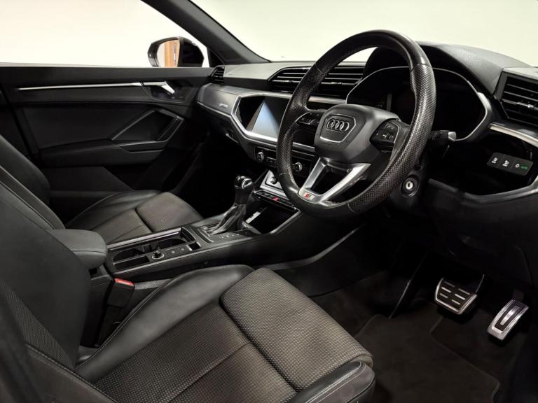 This Q3 Sportback has been serviced at 18-34-38-42-65k by an Audi main dealer and then at 97k by ourselves. Finished in black with black part leather interior, will have a fresh MOT as part of our internal preparation. As an S line model, it boasts a sporty aesthetic and comes equipped with advanced features designed for comfort and safety. These include Audi Side Assist, which incorporates Blind Spot Assistance, and striking LED headlights with LED daytime running lights and dynamic rear indicators. Inside, you'll find dual zone electronic climate control to keep all occupants comfortable, and the convenience of a light and rain sensor that automatically manages the headlights. Connectivity is also seamless thanks to the integrated Bluetooth interface.The Audi Q3 TFSI S line stands out with its thoughtful integration of technology and performance. The inclusion of Audi Side Assist with Blind Spot Assistance provides an extra layer of awareness on the road, helping you navigate traffic with greater confidence. The advanced LED lighting system ensures excellent visibility in all conditions, while the dynamic rear indicators add a modern touch. The dual zone climate control allows for personalised comfort for both driver and front passenger, and the automatic headlights and rain sensor offer convenience by adapting to changing conditions without driver input. These features collectively enhance the Q3's appeal, offering a superior driving experience compared to other vehicles in its class.SpecificationsThe data displayed above details the usual specification of the most recent model of this vehicle. It is not the exact data for the actual vehicle being offered for sale and data for older models may vary slightly. We recommend you check the vehicle details with your sales advisor before you buy.