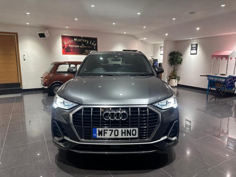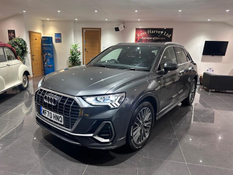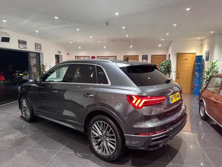 This stunning Audi Q3 S-Line Automatic was supplied new by our local Audi dealer and has had the same local mature owner from new. The car is in immaculate original condition throughout and can be driven away the same day. Please phone to arrange a viewing., Next MOT due 26/09/2026, Last serviced on 19/03/2025 at 20,555 miles, Full service history, 5 seats, Metallic Grey, Upgrades - Flat-Bottomed 3-Spoke Leather-Trimmed Multi-Function Sport Steering Wheel with Gear-Shift Paddles, Comfort and Sound Package, Standard Features - 1 x USB-C and 1 x USB-A Port with Charge and Data Functions, 19in Alloy Wheels - 5-Twin-Spoke Dynamic, 3-Spoke Leather Multi-Function Steering Wheel - S Badging and Grips in Perforated Leather with Contrast Stitching, Adjustable Rear Seat Bench-Backrest with Centre Armrest and Cupholder, Aluminium Roof Rails, Ambient Lighting Pack, Audi Drive Select, Audi Smartphone Interface Includes Wireless Apple CarPlay, Audi Virtual Cockpit - 10.25in Display, Auto Dimming and Frameless Rear View Mirror, Bluetooth Interface, Camera-Based Traffic Sign Recognition, Cruise Control with Speed Limiter, DAB Digital Radio, Door Mirrors - Electrically Folding - Adjustable and Heated with Integrated LED Side Indicators and Kerb-view Function for Passenger Side, Dual-Zone Electronic Climate Control, Electronically Operated Child Locks, Front Centre Armrest, Front and Rear Floor Mats in Black with Contrast Stitching in Rock Grey, Hill Descent Control, Hill Hold Assist, ISOFIX Child Seat Mounting for the Front Passenger Seat with Front Passenger Airbag Deactivation and ISOFIX Child Seat Mounting and Top Tether for the Outer Rear Seats, Illuminated Door Sill Trims with S Logo, LED Headlights with LED Daytime Running Lights and Dynamic Rear Indicator, Lane Departure Warning, Light and Rain Sensor, MMI Navigation Plus with High Resolution 10.1in Touchscreen Colour Display, Power Operated Tailgate, Privacy Glass - Dark-Tinted Rear and Rear-Side Windows - From B-Pillar Backwards, Rear Parking Sensors, S line Front and Rear Bumpers and Side Skirts, Rear parking camera, Heated seats, Half leather S-Line sport seats, Paddle shift, Bang & Olufsen sound system, 2 Keys, HPI clear, Finance available, Part exchanges preferred