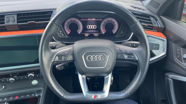 Audi Q3 40 TFSI Quattro Vorsprung 5dr S Tronic – Premium and PracticalAvailable Now at Volkswagen Nottingham SouthThis striking Audi Q3 40 TFSI Quattro Vorsprung 5dr S Tronic in Mythos Black blends premium design, quattro all-wheel drive, and advanced technology with everyday practicality. It comes exceptionally well-equipped with Vorsprung trim features, alloy wheels, digital cockpit, MMI navigation, Bluetooth connectivity, dual-zone climate control, and more.At Vertu, every vehicle is fully prepared to the highest mechanical and cosmetic standards. Tyres under 3mm are replaced, and all cars come with a minimum of 6 months MOT. Enjoy worry-free driving for at least 6,000 miles or 6 months before the next service. Two keys are included, along with a complimentary 3-month warranty, and a 14-day money-back guarantee.Every vehicle undergoes a full HPI check to confirm no accident claims, outstanding finance, or import history. For cars over 3 years old, a VOSA mileage verification report is provided.We offer all of this at no extra cost with nationwide delivery available.Call today to arrange a viewing or test drive and experience the premium performance, technology, and style of the Audi Q3 40 TFSI Quattro Vorsprung 5dr S Tronic in Mythos Black..Front and rear black floor mats with contrast stitching in rock grey, Front and rear electric windows, Rain and light sensors, Acoustic windscreen, Dark tinted privacy glass (from B pillar backwards), Privacy glass dark tinted rear and rear-side windows (from B-pillar backwards), Rear wiper, Electronic stabilisation control including ABS, ASR and EDL, Electromechanical parking brake, Hill descent control, Adaptive suspension with damping control, Audi phone box with wireless charging, Bluetooth interface, Voice control system with natural language interaction, Audi smartphone interface includes wireless Apple carplay/Android Auto, Reversing camera, Hill hold assist, Audi drive select, Audi lane departure warning, 360 degree parking camera, Audi pre-sense front with pedestrain and cyclist recognition, Camera based traffic sign recognition, Rear cross traffic assist, Start stop system with recuperation, Power operated tailgate, Service interval indicator