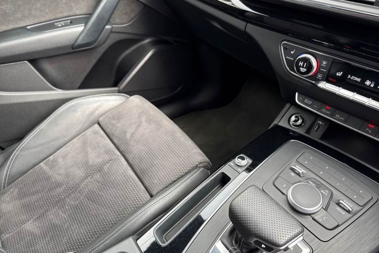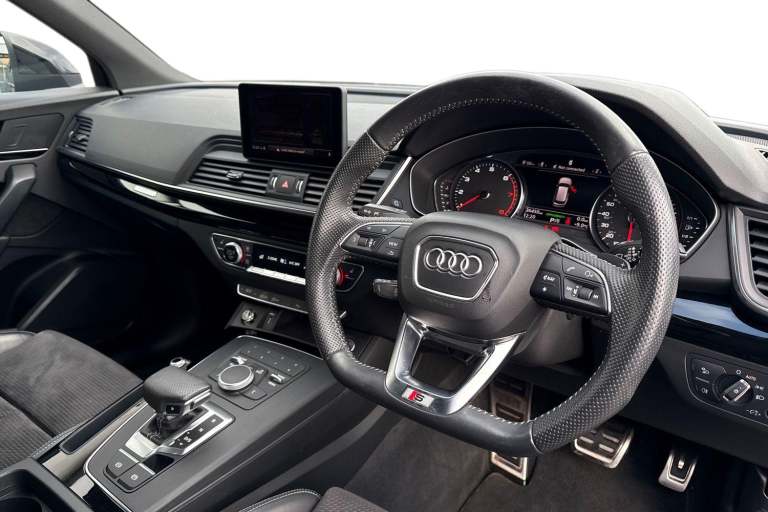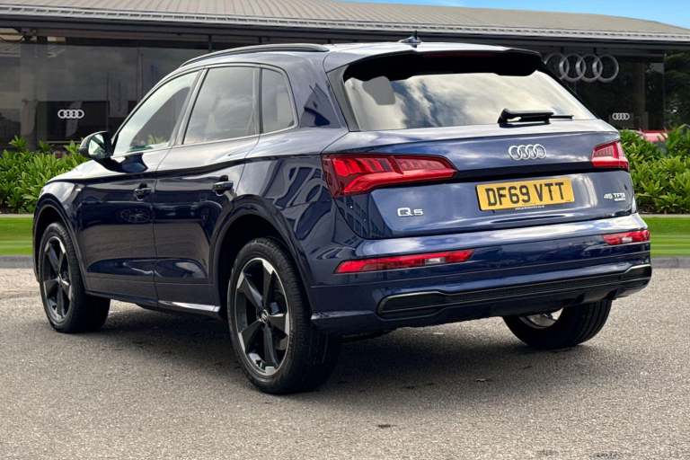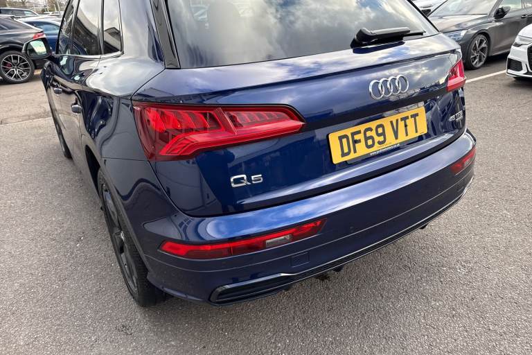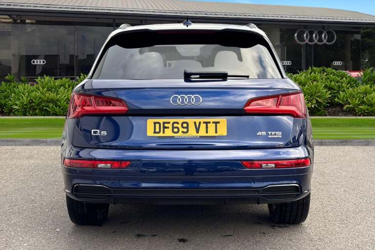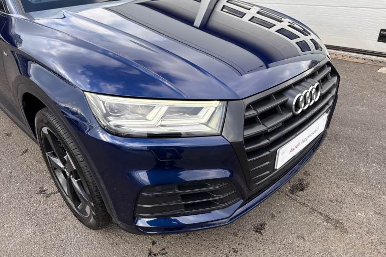 Joining our Audi Approved range, is this Q5 Black Edition 45 TFSI Quattro in Navarra Blue with its 20"" 5-arm rotor style Audi sport alloy wheels which look superb out on the roads. The LED headlights with LED rear lights create that strong visibility in all weather conditions. The deluxe 3-zone electronic climate control can be adjusted to your preferred climate on all journeys. This Q5 has some fantastic features, such as the heated front seats which are perfect for those cooler mornings. The 4-way electric lumbar support is great for maximising comfort behind the wheel. The privacy glass creates that additional privacy for passengers on all journeys. All hill starts are made smoother thanks to the Hill hold assist feature. Another great feature, is the Bluetooth Interface which provides seamless connectivity on all journeys. ISOFIX is fitted to the outer rear seats of this Q5, making it the perfect vehicle for the whole family to enjoy. The multimedia interface allows the driver and front passenger to access a range of different media, such as Apple Carplay and Android Auto, allowing you to use apps like Spotify, Google Maps, Apple Music and other apps also. The Audi drive select feature lets you choose your prefered drive mode on any journey, for a more personalised driving experience. The driver assist can also be adjusted to your driving preference on all journeys. DAB/FM radio is fitted to this vehicle which gives a larger variety of stations for all passengers an...