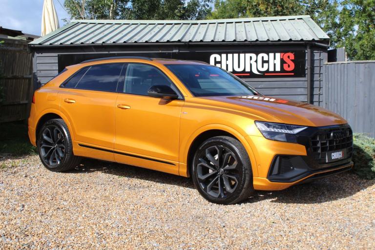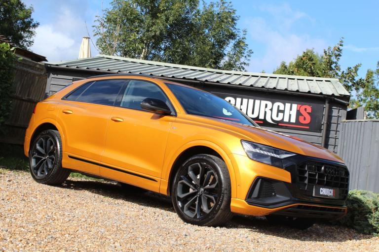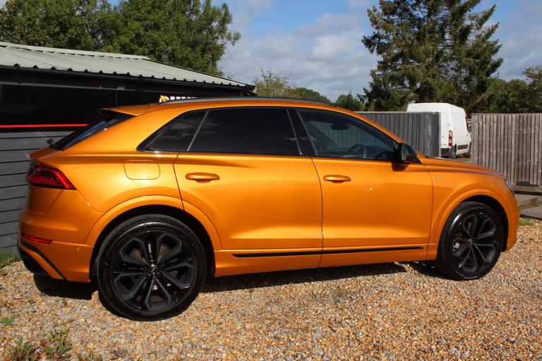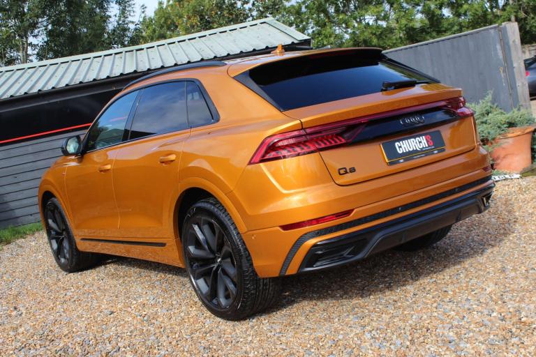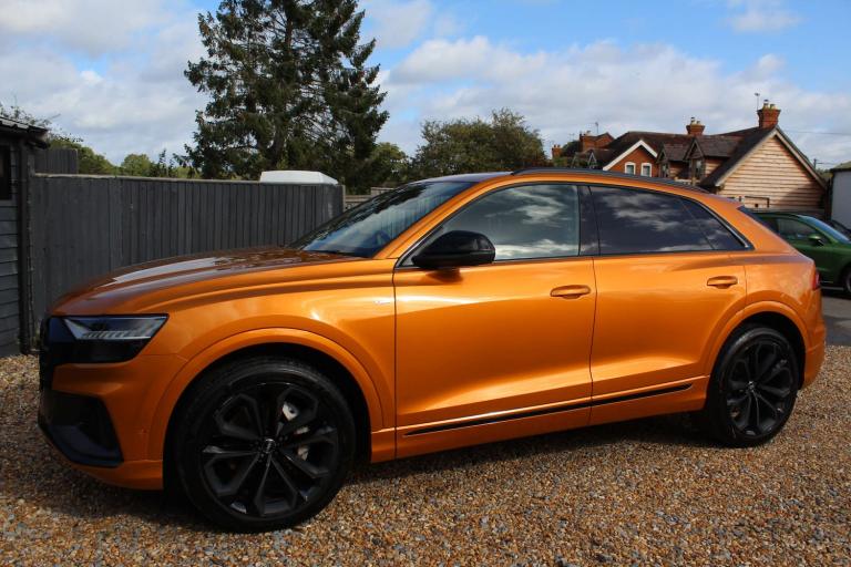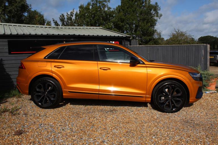 JUST REDUCED !!! MASSIVE SPEC !! ABSOLUTELY STUNNING AUDI Q8 50 TDI EDITION 1!! IN THE EYE CATCHING DRAGON ORANGE WITH A HUGE SPEC INCLUDING: PANORAMIC ROOF, TOUR PACK, BANG AND OLUFSEN SOUND UPGRADE, BLACK PACK, 22'' UPGRADED ALLOYS, REVERSE PARKING CAMERA, 360 CAMERA, REAR BLINDS, HEATED SEATS, APPLE CARPLAY, AUDI MATRIX LIGHTS, WIRELESS CHARGING, AUDI VIRTUAL COCKPIT, REAR HEATED SEATS, HILL DESCENT CONTROL, AMBIENT LIGHTING, LANE DEPARTURE WARNING, BLIND SPOT MONITORING, FRONT AND REAR PARKING SENSORS, ADAPTIVE AIR SPORTS SUSPENSION, ELECTRIC SEATS ++ PART EXCHANGE WELCOME UP OR DOWN BIKE OR CAR ++ COMPETITIVE FINANCE AVAILABLE ++ WARRANTY INCLUDED WITH OPTIONS TO UPGRADE AND EXTEND ++ Please note: We can accept payments of up to £500 on a debit card. Any larger amount will need to be paid via BACS (bank transfer). If you wish to pay on collection please check processing times as we are unable to release cars without cleared funds. Be sure to bring anything required to make larger payments such as card readers. We take great care in making sure our adverts and specifications are listed accurately but please check for confirmation as human and system errors can occasionally occur.