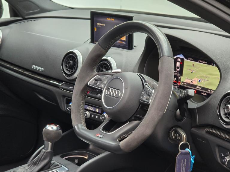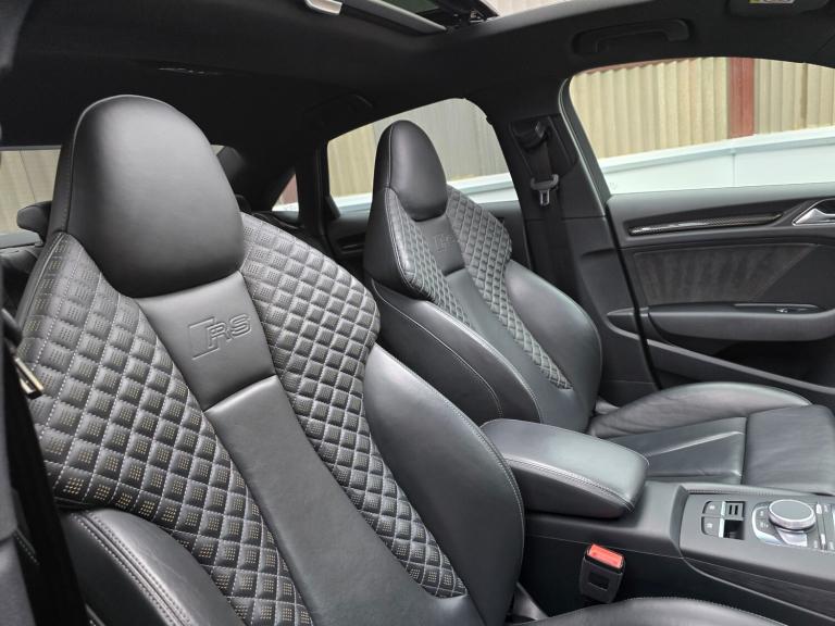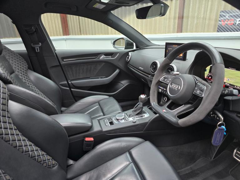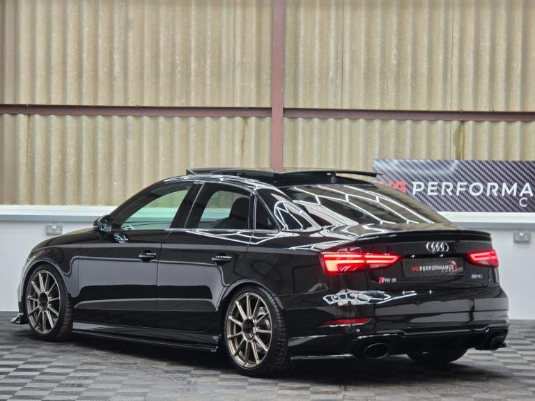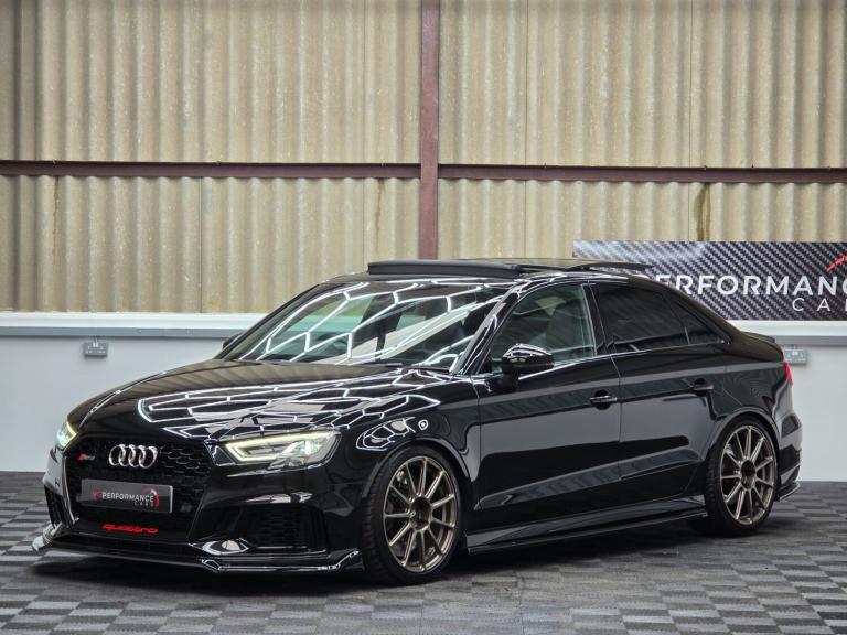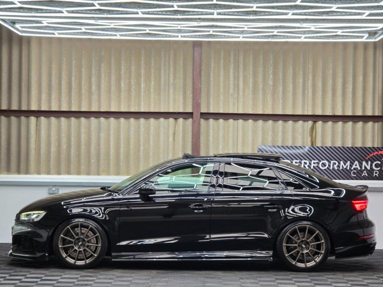 AUDI RS3 2019 QUATTRO SALOON 29.000 MILES FULLY FORGED ENGINE BUILT BY AREA SIX AND TUNED BY MRC COST OF OVER 15K TTE 700 TURBO EVENTURI INTAKE SYSTEM FORGED ALLOY WHEELS UPGRADED FRONT BRAKE DISKS PAN ROOF SUPER SPORT SEATS WITH GREY STICHING CARBON INTERIOR TRIM WITH ALCANTARA ALCANTARA STEERING WHEEL COMFORT PACK WITH KEYLESS ENTRY RS DESIGN PACK GLOSS BLACK TRIM WITH GLOSS BLACK SPLITTERSLOWERED ON KW SUSPENSION RS SPORTS EXHAUST PARKING SENSORS HEATED SEATS THIS IS A TRULY AMAZING EXAMPLE AND HAS BEEN BUILT TO THE HIGHEST STANDARD FULL SERVICE HISTORY WITH AUDI AND MRC DYNO PRINT OUT 688BHP DOES NOT RUN ANY METHANOL AND IS 99 OCT PUMP FUEL PART EXCHANGE WELCOME FINANCE OPTIONS AVAILABLE