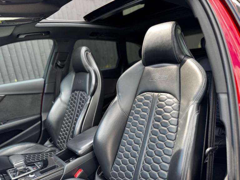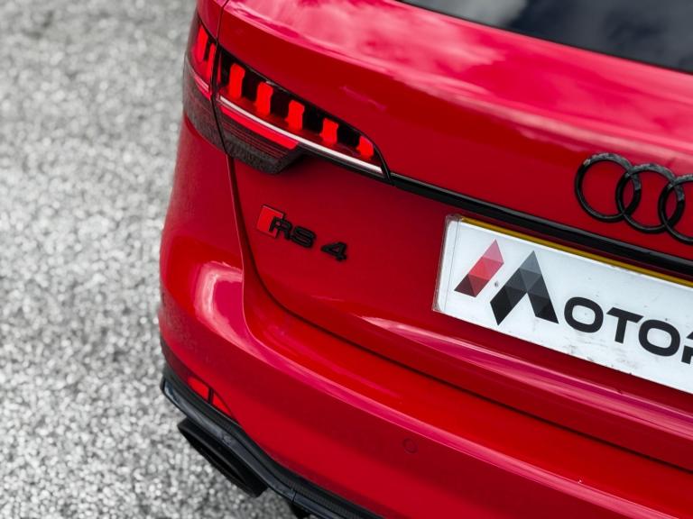 This Audi RS4 Avant 2.9 TFSI V6 Carbon Black Finished in Misano Red and this vehicle comes with the following specification: Fine Nappa Leather - RS Super Sport with Pneumatic Massage Function - Black with Rock Grey Honeycomb Contrast Stitching RS Sport Exhaust System Panoramic Glass Sunroof Comfort & Sound Package Audi Virtual Cockpit with RS Specific Display Parking System Plus 360 Degree Camera MMI Navigation Plus Heated Front Seats Bang & Olufsen 3D Sound System Audi Phone Box with Wireless Charging Extended LED Interior Lighting Pack RS Sports Suspension RS Audi Drive Select Audi Matrix LED Headlights Carbon Black Styling Pack Privacy Glass 2 Keys Full Audi History Ghost Immobiser & CAT 5 Tracker (Available From £550)