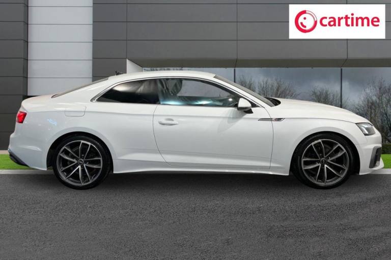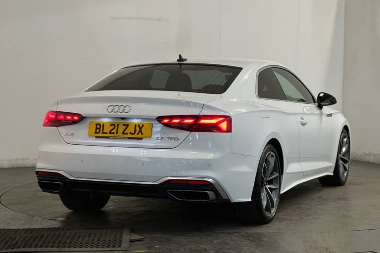 This 2021 Audi A5 TFSI S line boasts a clear vehicle history check, offering you peace of mind. This stylish coupe features a 2.0 litre petrol engine and meets Euro 6 emissions standards. For your convenience, the MOT is valid until June 2026. Inside, youll find Deluxe 3-Zone Electronic Climate Control, ensuring comfort for all occupants. The Audi Matrix LED Headlights with LED Rear Lights and Dynamic Front and Rear Indicators provide excellent visibility, while the Parking System Plus with front and rear sensors, along with a rear-view camera, makes manoeuvring effortless. Stay connected on the go with the integrated Bluetooth Interface. Experience the efficiency and practicality of this Audi A5. With a fuel economy of 41 mpg, it offers a cost effective driving experience. Its low CO2 emissions are also a significant advantage, indicating its environmental consideration compared to similar vehicles. Furthermore, its low insurance group rating means lower running costs. Youll also appreciate the generous boot space, making it a versatile choice for everyday use and longer journeys. Lifetime warranty available on this car, plus a £1,000 finance contribution when you part exchange. Voted UK Car Supermarket of the Year two years running, we offer 0% finance, part exchange, and lifetime warranties across our entire range. Every car is thoroughly inspected before sale and comes with a full history check, so you can buy with complete peace of mind. Buy with confidence on our best finance rates. Proud winners of the CarGurus Top-Rated Dealer 2022 and the MotoNovo Extra Mile Award. .19in Alloy Wheels - 8.5J 5-Spoke-Cavo Design - Contrasting Grey - Partly Polished, 4-Way Electric Lumbar Support, 6-Airbag System, 8 Passive Loudspeakers, Anti Theft Locking Wheel Bolts, Anti-Theft Alarm, Audi Connect Infotainment Services (36 Month Subscription From New), Audi Connect Safety and Service, Audi Connect with Amazon Alexa Integration, Audi Drive Select, Audi Matrix LED Headlights with LED Rear Lights and Dynamic Front and Rear Indicators, Audi Smartphone Interface, Audi Virtual Cockpit, Auto-Dimming Rear-View Mirror, Automatic Start-Stop with Coasting Functionality and Efficiency Programme, Bluetooth Interface, Body Coloured Side Sill Trims, Cloth Headlining in Black, Contrast Stitching on Seats - Steering Wheel and Gear Lever Gaiter, Cruise Control System with Speed Limiter, DAB Digital Radio Reception, Deluxe 3-Zone Electronic Climate Control, Door Handles - Body Coloured, Electric Boot Lid Release, Electric Windows - Front, Electromechanical Power Steering, Email - Calendar and Text Messages can be Displayed on your Vehicles MMI, ESC - Electronic Stabilisation Control inc ABS - ASR and EDL, First Aid Kit and Warning Triangle, Front Centre Armrest, Front Spoiler Lip in Body Colour, Gear Lever Knob in Black Perforated Leather, Heated Front Seats, High Multi-Function 3-Spoke Leather Steering Wheel with Grips in Perforated Leather and S Badging, Hill Hold Assist, Ibis White, Illuminated Door Sill Trims with S Logo, Inlays - Matt Brushed Aluminium, ISOFIX Child Seat Mounting and Top Tether, Keyless Go, LED Interior Light Package, Light and Rain Sensor, Manual Seat Adjustment, MMI Navigation Plus with MMI Touch, Multi Collision Brake Assist, Parking System Plus - Front and Rear Sensors, Pedals in Stainless Steel, Pop-Up Bonnet for Pedestrian Protection, Pre-Sense City, Privacy Glass, Radiator Grille with Honeycomb Structure in Grained Matt Black, Rear-View Camera, S Line Badges on Front Wings, S Line Front and Rear Bumpers and Side Skirt, S Line Rear Diffuser in Matt Titanium Black with Trim Strip in Matt Aluminium Silver, Seat Belt Monitoring, Side Air Inlets in Grained Matt Black with Inlay in Matt Aluminium Silver, Split-Folding 2-Seater Rear Seat Bench in 3 Parts - 40-20-40 with Rear Centre Armrest, Sport Suspension, Tailpipe Trims in Matt Aluminium Silver, Tool Kit, Two Additional USB Ports for Rear Passengers in the Rear Centre Console, Tyre Repair Kit, Voice Control