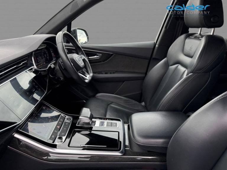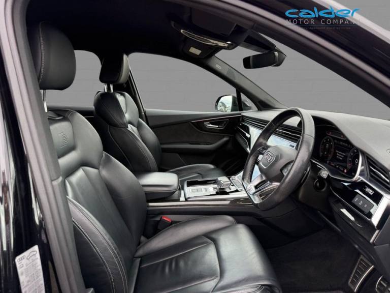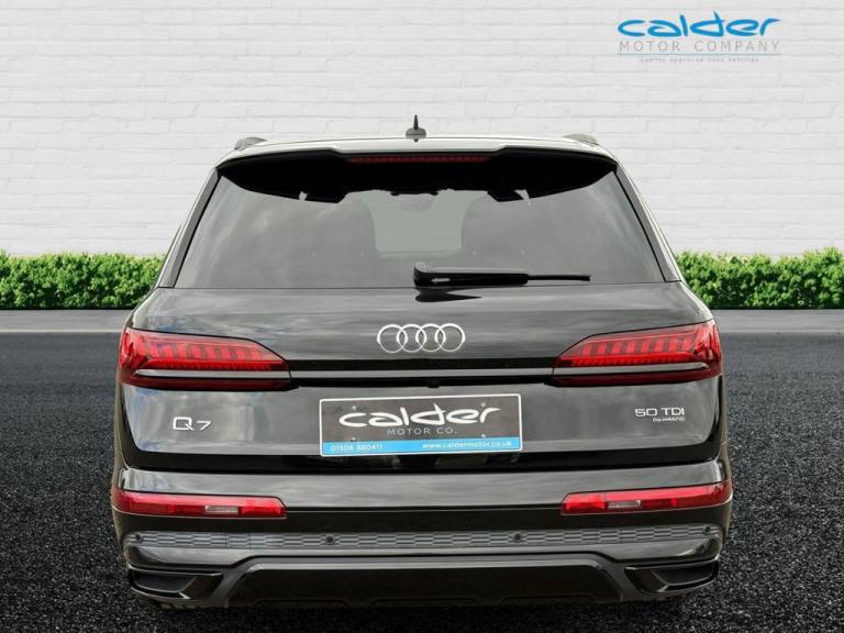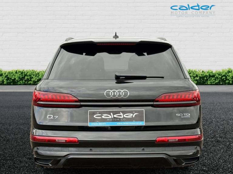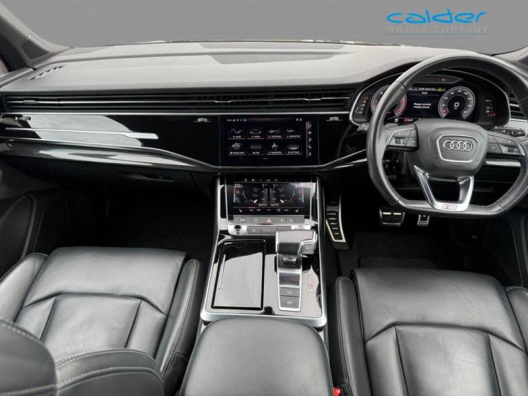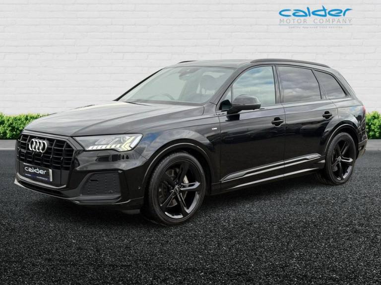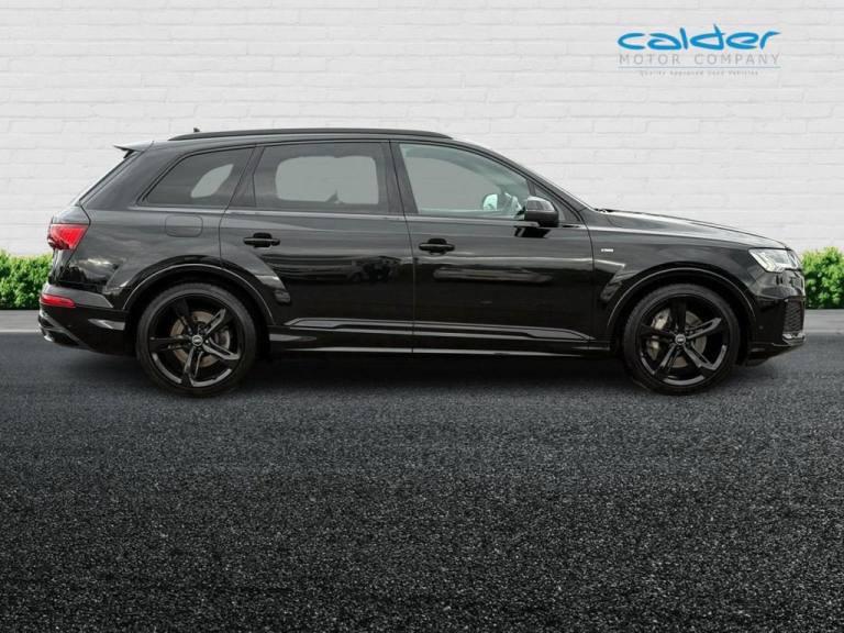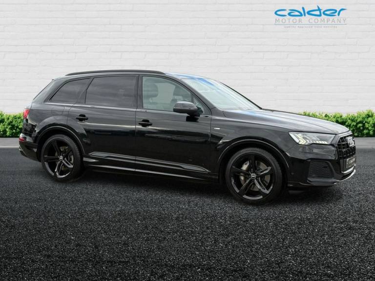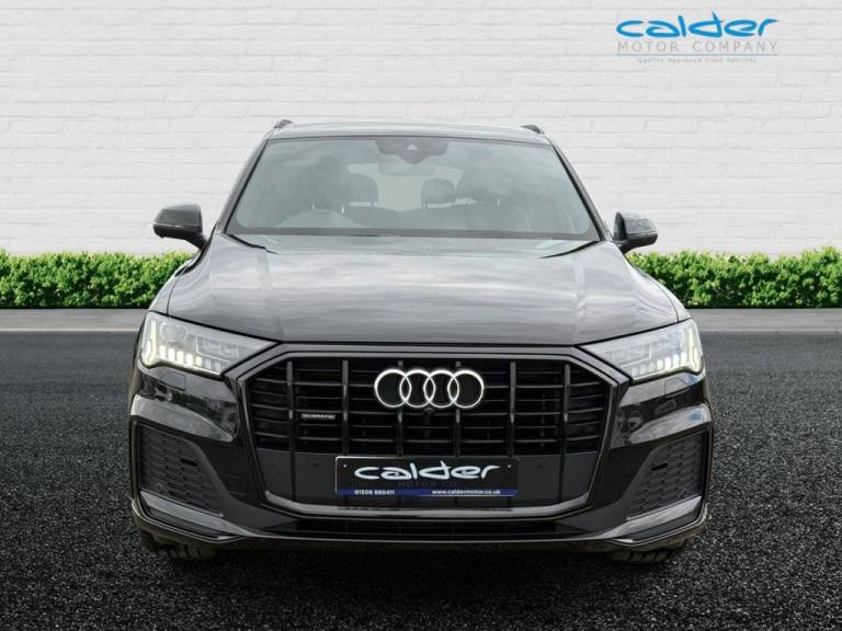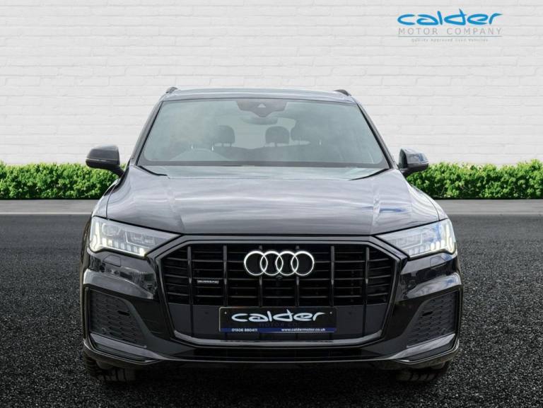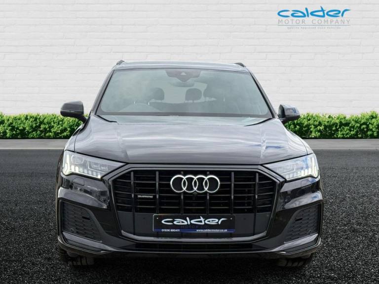 Amazing value for Q7 Black Edition Finished in Mythos Black Metallic with the Full Black Styling pack and Gloss Black 21" 5 Spoke Alloy Wheels and Finished with Black Valcona Upholstery and Piano Black Finishers. Lovely spec Q7 with the all the right extras including the Comfort and Sound Pack which includes 360 Degree Cameras, Parking Assistant, Bang and Oulfsen Sound System, Wireless Charging Dock, Keyless Entry and much more, Heated Seats, Satellite Navigation, DAB Radio, Bluetooth with Audio Streaming and Apple and Android Car Play and so much more. This car has Two Keys and Service History. This Approved vehicle comes with our full care package including up to 2 years Executive Plus Warranty, 1 years MOT, Full pre-delivery inspection, Full service ( if required ) and Fully Valeted. All Calder Motor Company Premier Approved vehicles are prepared to the highest standard in every way, cosmetically and mechanically. National delivery available. Scotsure Executive plus extended warranty available for up to 2 years. Face time or whats app video walk round available on request. SUNDAYS BY APPOINTMENT ONLY. EVERY EFFORT HAS BEEN MADE TO ENSURE THE ACCURACY OF THE INFORMATION REGARDING THE VEHICLES SPEC HOWEVER ERRORS MAY OCCUR. CHECK WITH A SALESPERSON ABOUT ITEMS WHICH MAY AFFECT YOUR DECISION TO PURCHASE. Please feel free to Contact us via Phone, Email, Social Media. Nationwide Delivery, All Vehicles Are Fully Disinfected. Full Walkround Video, Face Time Etc. .21in Alloy Wheels - 9.5J 5-Spoke-Blade Design in Anthracite Black with Gloss Turned Finish, 7 Seats, Adaptive Air Sport Suspension, Airbags - Driver - Front Passenger - Front Side - Curtain, AMI - Audi Music Interface, Anti-Theft Alarm, Audi Connect (3 Year Subscription From New), Audi Connect Safety and Service - e-call, Audi Connect with Amazon Alexa Integration, Audi Drive Select, Audi Hill Hold Assist, Audi Parking System Plus, Audi Pre-Sense Front, Audi Smartphone Interface, Audi Sound System, Audi Virtual Cockpit, Auto Dimming and Frameless Rear View Mirror, Black Roof Rails, Bluetooth Interface, Camera-Based Traffic Sign Recognition, Cloth Headlining in Black, Comfort and Sound Package, Comfort Front Centre Armrest, Cruise Control with Speed Limiter, DAB Digital Radio, Deluxe Four-Zone Automatic Climate Control, Door Mirrors - Heated - Electrically Adjustable - Folding and Auto Dimming with Memory Function, Electromechanical Power Steering, ESC - Electronic Stabilisation Control inc ABS - ASR and EDL, Extended Pedestrian Protection Measures, First Aid Kit and Warning Triangle, Flat-Bottomed 3-Spoke Leather Multi-Function Sports Steering Wheel with Shift Paddles, Front and Rear Floor Mats, Fuel Tank 85L, Heated Front Seats, High Beam Assist, Illuminated Door Sill Trims with S Logo, Keyless Go with Remote Central Locking, Lane Departure Warning, LED Daytime Running Lights, LED Headlights, LED Interior Ambient Lighting Pack, LED Rear Lights, MMI Navigation Plus with MMI Touch, Mythos Black, Natural Voice Recognition, Power Operated Tailgate, Privacy Glass, Rear View Camera, S Line Roof Spoiler, Titanium Black Door Mirrors, Titanium Black Styling Pack, Tyre Pressure Loss Indicator, Tyre Repair Kit, Valcona Leather - Sports Seats with S Embossed Logo - Black with Grey Stitching, Windshield with Heat Insulated Glass