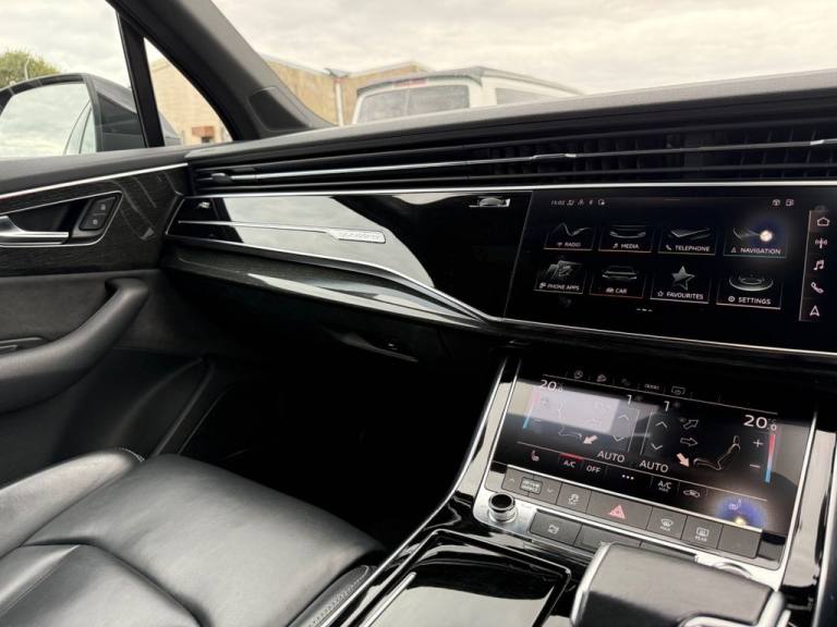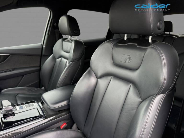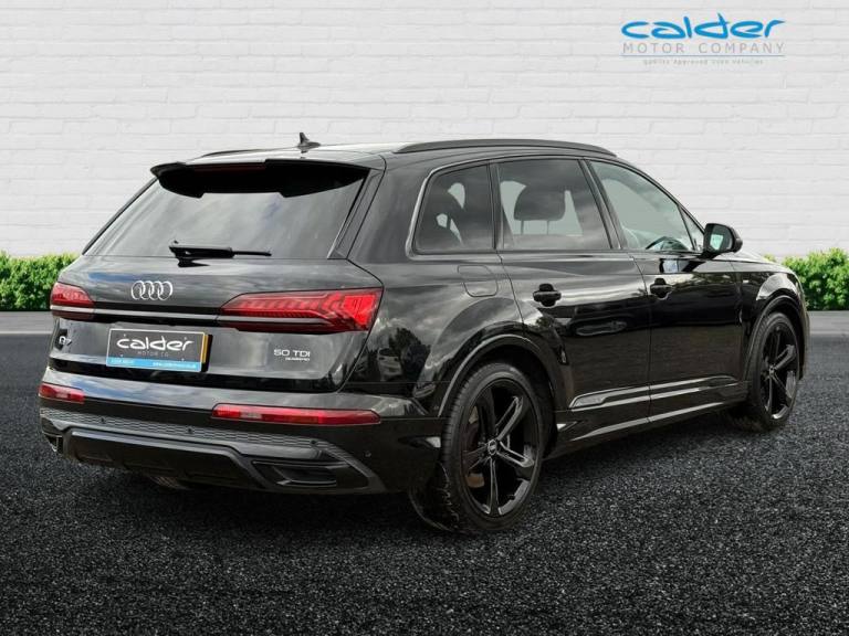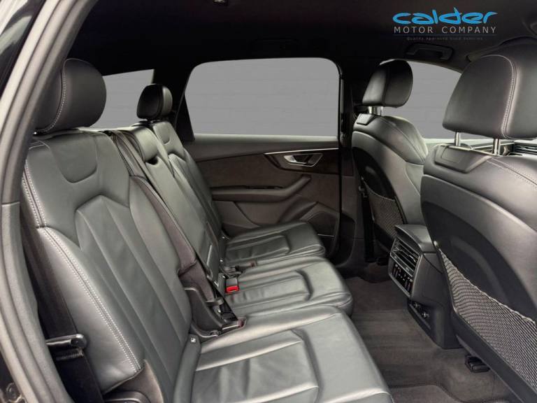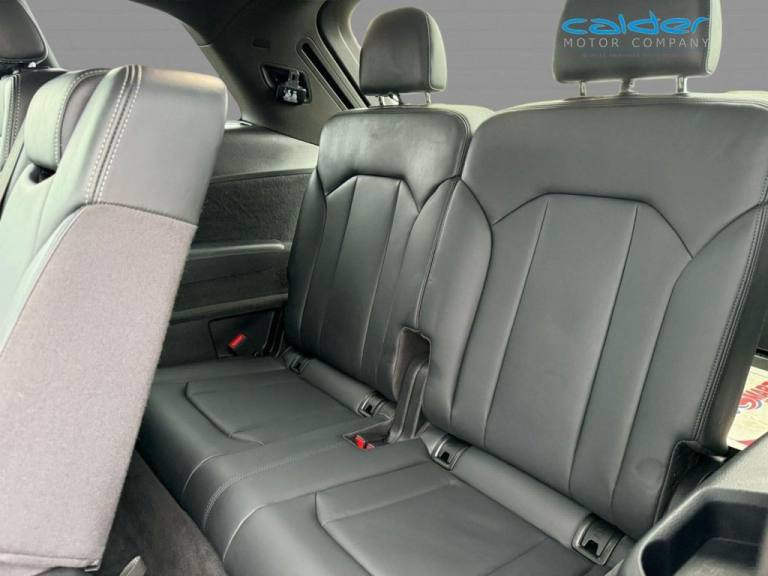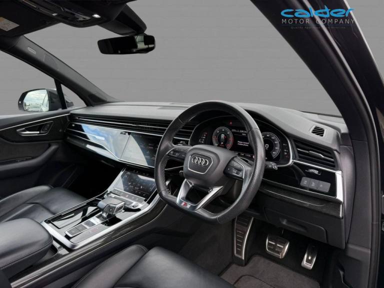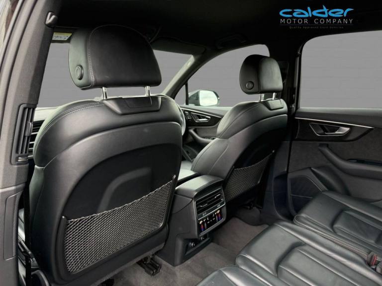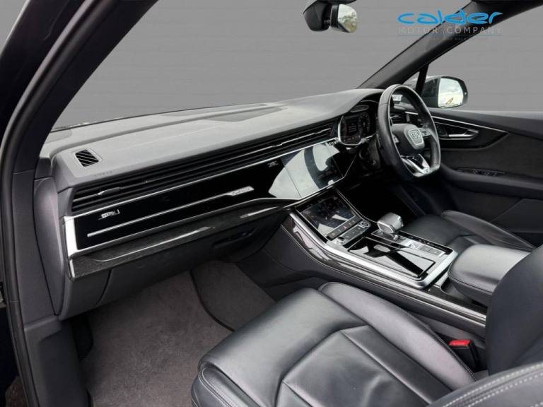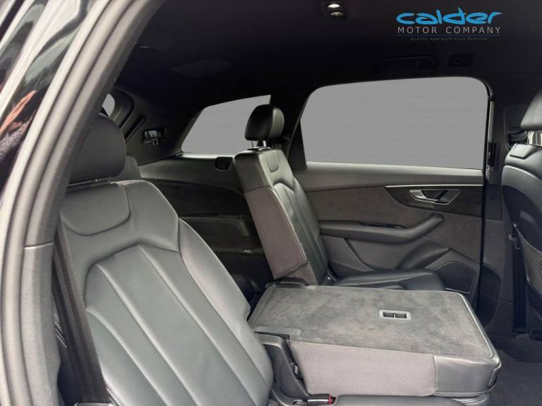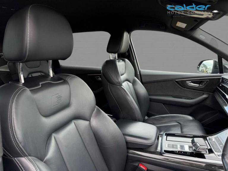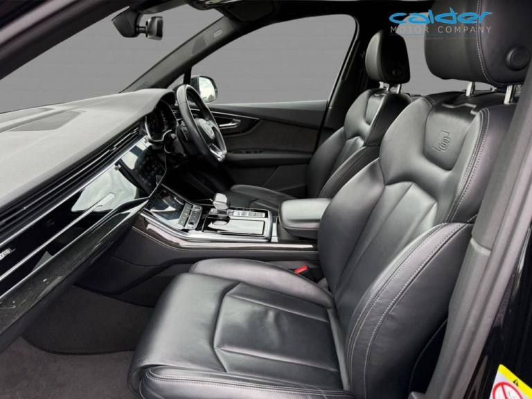 Amazing value for Q7 Black Edition Finished in Mythos Black Metallic with the Full Black Styling pack and Gloss Black 21" 5 Spoke Alloy Wheels and Finished with Black Valcona Upholstery and Piano Black Finishers. Lovely spec Q7 with the all the right extras including the Comfort and Sound Pack which includes 360 Degree Cameras, Parking Assistant, Bang and Oulfsen Sound System, Wireless Charging Dock, Keyless Entry and much more, Heated Seats, Satellite Navigation, DAB Radio, Bluetooth with Audio Streaming and Apple and Android Car Play and so much more. This car has Two Keys and Service History. This Approved vehicle comes with our full care package including up to 2 years Executive Plus Warranty, 1 years MOT, Full pre-delivery inspection, Full service ( if required ) and Fully Valeted. All Calder Motor Company Premier Approved vehicles are prepared to the highest standard in every way, cosmetically and mechanically. National delivery available. Scotsure Executive plus extended warranty available for up to 2 years. Face time or whats app video walk round available on request. SUNDAYS BY APPOINTMENT ONLY. EVERY EFFORT HAS BEEN MADE TO ENSURE THE ACCURACY OF THE INFORMATION REGARDING THE VEHICLES SPEC HOWEVER ERRORS MAY OCCUR. CHECK WITH A SALESPERSON ABOUT ITEMS WHICH MAY AFFECT YOUR DECISION TO PURCHASE. Please feel free to Contact us via Phone, Email, Social Media. Nationwide Delivery, All Vehicles Are Fully Disinfected. Full Walkround Video, Face Time Etc. .21in Alloy Wheels - 9.5J 5-Spoke-Blade Design in Anthracite Black with Gloss Turned Finish, 7 Seats, Adaptive Air Sport Suspension, Airbags - Driver - Front Passenger - Front Side - Curtain, AMI - Audi Music Interface, Anti-Theft Alarm, Audi Connect (3 Year Subscription From New), Audi Connect Safety and Service - e-call, Audi Connect with Amazon Alexa Integration, Audi Drive Select, Audi Hill Hold Assist, Audi Parking System Plus, Audi Pre-Sense Front, Audi Smartphone Interface, Audi Sound System, Audi Virtual Cockpit, Auto Dimming and Frameless Rear View Mirror, Black Roof Rails, Bluetooth Interface, Camera-Based Traffic Sign Recognition, Cloth Headlining in Black, Comfort and Sound Package, Comfort Front Centre Armrest, Cruise Control with Speed Limiter, DAB Digital Radio, Deluxe Four-Zone Automatic Climate Control, Door Mirrors - Heated - Electrically Adjustable - Folding and Auto Dimming with Memory Function, Electromechanical Power Steering, ESC - Electronic Stabilisation Control inc ABS - ASR and EDL, Extended Pedestrian Protection Measures, First Aid Kit and Warning Triangle, Flat-Bottomed 3-Spoke Leather Multi-Function Sports Steering Wheel with Shift Paddles, Front and Rear Floor Mats, Fuel Tank 85L, Heated Front Seats, High Beam Assist, Illuminated Door Sill Trims with S Logo, Keyless Go with Remote Central Locking, Lane Departure Warning, LED Daytime Running Lights, LED Headlights, LED Interior Ambient Lighting Pack, LED Rear Lights, MMI Navigation Plus with MMI Touch, Mythos Black, Natural Voice Recognition, Power Operated Tailgate, Privacy Glass, Rear View Camera, S Line Roof Spoiler, Titanium Black Door Mirrors, Titanium Black Styling Pack, Tyre Pressure Loss Indicator, Tyre Repair Kit, Valcona Leather - Sports Seats with S Embossed Logo - Black with Grey Stitching, Windshield with Heat Insulated Glass