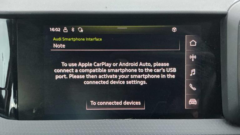 15in Alloy Wheels - 6J 5-Arm Design, Anti-Theft Wheel Bolts and Wheel Loosening Warning, Body Coloured Door Mirrors, Door Mirrors - Folding - Electrically Adjustable and Heated with Integrated LED Side Indicators, Electric Windows - Front and Rear, Heat Insulating Glass - Windscreen and Side Windows, 10.25in Digital Instrument Cluster, 3-Spoke Leather-Trimmed Multi-Function Steering Wheel - Height and Reach Adjustable, Auto-dimming rear-view mirror, Centre Console with Two Cup Holders and 12V Socket, Driver and Front Passenger Seats with Manual Height-Forwards and Backwards Adjustment, Gear Knob in Leather with Aluminium Trim, Headlining - Titanium Grey Cloth, Inlays in Polygon Structure - Black - Accent Areas in Black, Interior Lighting - Front and Rear Reading Lights and Luggage Compartment Light, Leatherette Handbrake Grip, Luggage Compartment Package, Manual Air Conditioning, Rear Fog Lights, Three Rear Seats with Headrests, 1 x SDXC Card Reader, 2 USB-C Connection Points, 6 Passive Loud Speakers, Audi Connect Safety and Service - e-call, Audi Smartphone Interface, Bluetooth Interface, DAB Digital Radio, Dynamic Suspension, Electromechanical Power Steering, LED Headlights with LED Rear Lights and Dynamic Rear Indicators, Lane Departure Warning, Light and Rain Sensor, MMI Radio Plus with 8.8 MMI Colour Display Screen and MMI Touch, Speed Limiter, Tyre Pressure Warning Light, Voice Control, Washer Fluid Level Indicator, Air Vents - Door Handle Recesses and Centre Console in Black, Front and Rear Floor Mats, Split Folding Rear Seat Bench - 60-40 or Fully, Tool Kit, Front Side Air Inlets - Front Spoiler Lip and Rear Diffuser in Matt Black Grained, Heated Rear Windscreen, Radiator Grille - Matt Black, Tyre Repair Kit, Anti-Theft Alarm, Audi Pre-Sense Front with Pedestrian and Cyclist Recognition, Driver - Front Passenger - Front Side and Head Airbags, ESC - Electronic Stabilisation Control inc ABS - EBD - ASR - EDL, First Aid Kit and Warning Triangle, Front Passenger Airbag Deactivation Switch, Hill Hold Assist, ISOFIX Child Seat Mounting for Front Passenger and Rear Outer Seats, Remote Central Locking with 2 Fold Away Keys, Seat Belt Height Adjustment for Front Seats, Seat Belt Monitoring, Delta Cloth - Black with Black Stitching