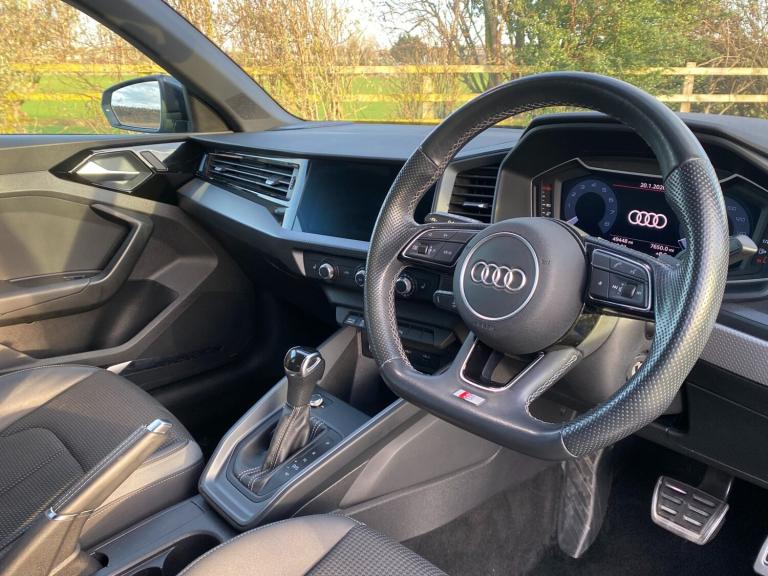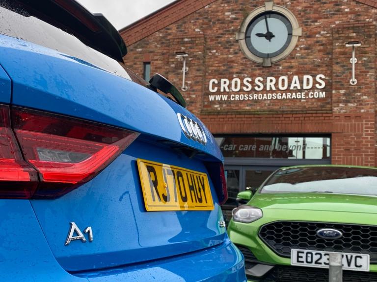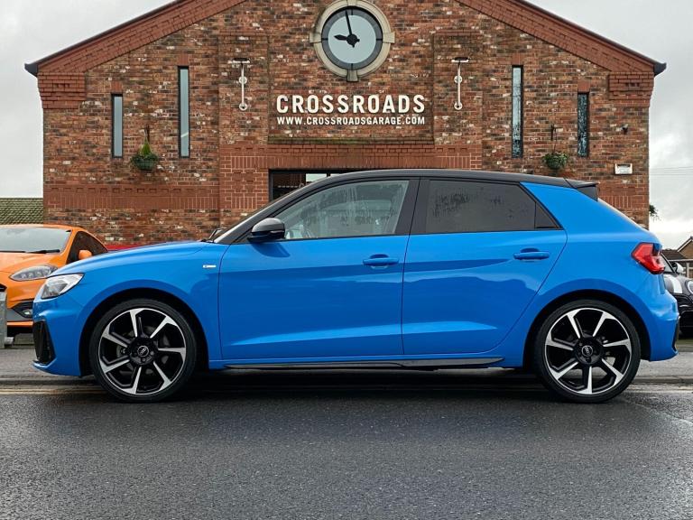 Crossroads Garage are delighted to offer another superb used vehicle; this one owner, technologically advanced Audi A1 1.5 TFSI 35 S-Line Black Edition S-Tronic which has just arrived in stock with us. COLOUR & TRIM - Presented in the most desirable colour Turbo Blue metallic paintwork with contrasting Black Roof, this stunning A1 has 18"" Rotor Spoke alloy wheels. The interior is finished with Black half leather upholstery on heated front sports seats. SOURCE - This premium Audi hatchback was purchased by us directly from it's one previous keeper. SERVICING - Our example has covered just 49000 miles and benefits from a Full Service History. It is of-course HPI clear and the mileage has been verified with VOSA records. We will supply this A1 S-Line Black Edition with a fresh 12 Months MOT with no advisories. PERFORMANCE - This A1 looks and drives superb. Having been put through our multi-point check this car is supplied with our comprehensive parts & labour warranty. SPECIFICATION - Our well-equipped S-Line Black Edition hatchback has an extensive specification which includes, 6-Speed Automatic Gearbox With Paddleshift, Audi Virtual Cockpit With 10.25 Inch Digital Instrument Cluster, 8.8 Inch Colour MMI Screen, Apple CarPlay With Satellite Navigation, Bang & Olufsen Audio Upgrade, Rear Parking Camera, Front & Rear Parking Sensors With Optical Display, Heated Front Seats, Audi Comfort & Sound Package, Audi Smartphone Interface, LED Headlights, Dynamic Rear Indicators, LED Ambient Interior Lighting Pack, Audi Drive Select, Audi Pre-Sense, Bluetooth Phone With Audio Streaming, Cruise Control, DAB Radio, Air Conditioning, Multi-Function S-Line Steering Wheel, USB-C Input, Privacy Glass, On-Board Computer, Electric Folding Door Mirrors, and more besides. WHAT TO EXPECT FROM US - Fabulous finance packages and the comfort of knowing your car is being supplied by a multi award-winning dealer including Trading Standards Retailer of the Year and we have customer feedback scores to be proud of. All of our vehicles are prepared to a high standard by our team of skilled technicians and will be valeted ready for collection. We take pride in our efforts to make this the most enjoyable car-buying experience you'll ever have. Please call and speak to James, Alan, Dean or Simon who'll be able to answer any questions you have, to reserve this wonderful example today or to book a viewing. Please remember to bring a valid Full Driving Licence with you. Thank You.