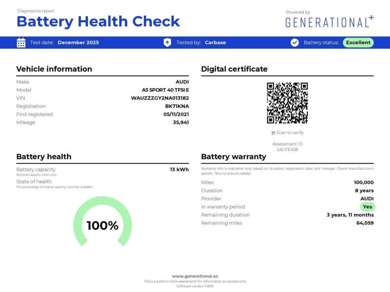 Posting for 9+ years2021 Audi A3 1.4 TFSIe 40 Sport Sportback 5dr Petrol Plug-in Hybrid S Tronic Euro 6 (s/s Hatchbac...