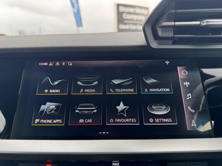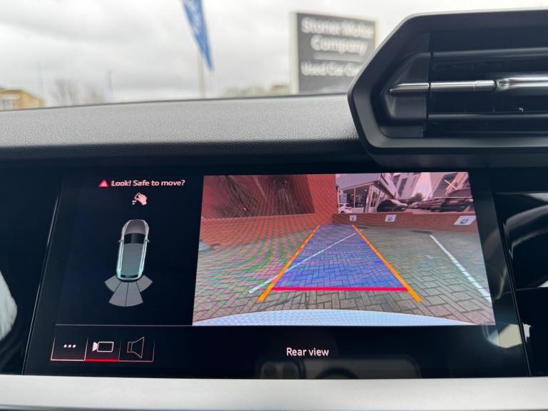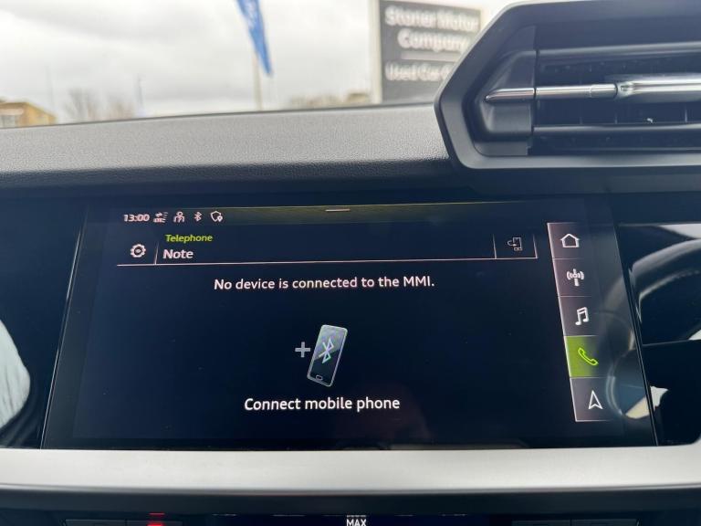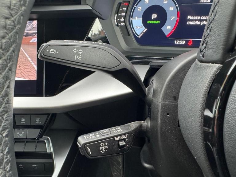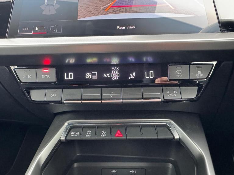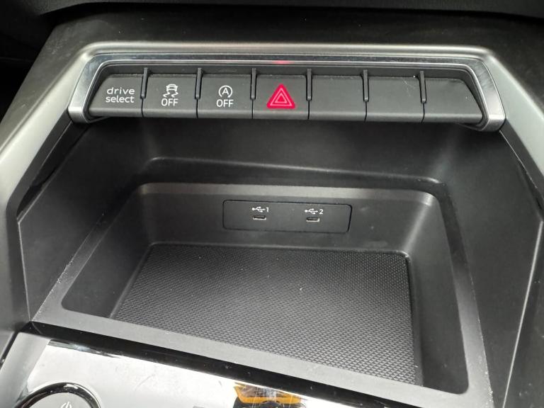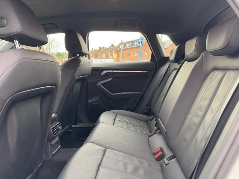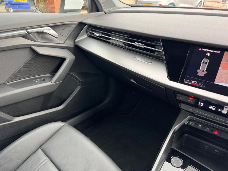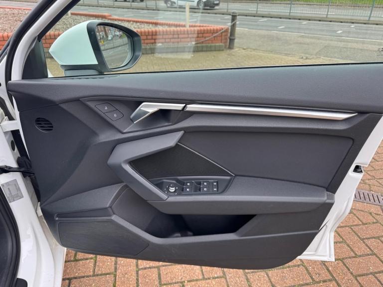 ..Audi connect emergency call and service, Audi drive select (Auto, Comfort, Dynamic, Efficiency and Individual), Audi smartphone interface, Audi Virtual Cockpit - 10.25'' digital and colour instrument cluster, Automatic start/stop system with recuperation, Bluetooth interface, Collision avoidance assistant, Electromechanical power speed sensitive steering, Lane departure warning system, MMI Navigation Plus with high resolution 10.1'' colour touch screen display, Service indicator, Trip computer, Voice control system with natural language interaction, Standard suspension, 2xUSB-C connection with data and charging functions, 6 passive loudspeakers, DAB Digital radio, 3rd brake light, Acoustic glass windscreen, Aluminium window trim, Auto dimming frameless rear view mirror, Body colour exterior mirrors, Body colour roof spoiler, Electrically adjustable/heated/folding/auto dimming door mirrors with integrated LED indications + kerb view function for passenger side, Front electric windows, LED daytime running lights, LED headlights and halogen rear lights, Light and rain sensors, Rear electric windows, Rear window, rear door windows and rear side windows in clear glass, Rear wiper, 12V socket and storage compartment in front centre console, 40/20/40 split folding rear seat bench with cupholder, Dual zone electronic climate control, Front and rear centre armrest, Front and rear headrests, Front door sill trims with aluminium inlay, Front/rear floor mats, Height and reach adjustable steering wheel, Interior lighting - Front and rear roof module including reading lights, glove compartment light and right hand side, Luggage compartment floor covering, Manual boot compartment lid, Manually adjustable front seats, Seat side bolsters, Steel grey cloth headlining, Twin leather upholstery, Aluminium interior elements pack - A3 Sportback, Sport styling pack - A3 Sportback, 3x3 point rear seat belts, Driver and front passenger airbag with passenger airbag deactivation, Electronic Stabilisation Control (ESC) including ABS, ASR and EDL, First aid kit with warning triangle and 2 safety vests, Front side airbags with head airbags and interaction airbag, Hill hold assist, Pre-sense front with pedestrian and cyclist detection, Seatbelt monitoring, Tyre pressure loss indicator, Anti theft alarm, Anti-theft wheel bolts, Electronically operated child lock, Immobiliser, Remote control central locking, Inlays with silk effect paint in platinum grey