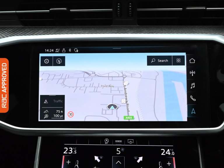 RAC Multi-Point Inspection and Service History - Last At 11k Supreme Luxury Meets Cutting-Edge Technology In The A6, Take The Drivers Seat With An In-Store Test Drive. - Finished In Brilliant Black Paint Standout Key Features Include Gps Satellite Navigation System, Boasting Intuitive Sat Nav Functionality For Seamless Journeys, Rear Assist Camera. As You Step Inside Youll Discover An Impressive Array Of Technology, Including Apple CarPlay, Android Auto, Rear Radar Type Parking Sensors, Cruise Control, Rain Sensing Windscreen Wipers, Lane Departure Warning System. Keep Everyone Onboard Entertained Thanks To Features Such As Voice Control For Media Functions, Bluetooth Wireless SmartPhone Connectivity, Wifi Hotspot To Keep You Connected (Subscription And Data Plan Charges May Apply), DAB Digital Radio For A Myriad Of Stations To Suit Your Mood, CD Player With MP3 Compatibility. Relax In The Ultimate Comfort Thanks To Keyless Start, Dual-Zone Climate Control, Air Conditioning, Electrically Foldable Door Mirrors, Anti Dazzle Rear View Mirror, Isofix, Front And Rear Electric Windows, Rear Privacy Glass. On The Exterior Youll Be Sure To Notice The Sports Suspension. Also Fitted With Engine Start/Stop Fuel Saving Technology, Electric Hill Holder, Tyre Pressure Monitoring System., Date Of First Registration October 2021. - Drive Into A Low Emissions Zone With This Euro 6, ULEZ & CAZ Compliant Car Were an RAC Approved Dealer Where All Vehicles Come With a Full Multipoint Check...
