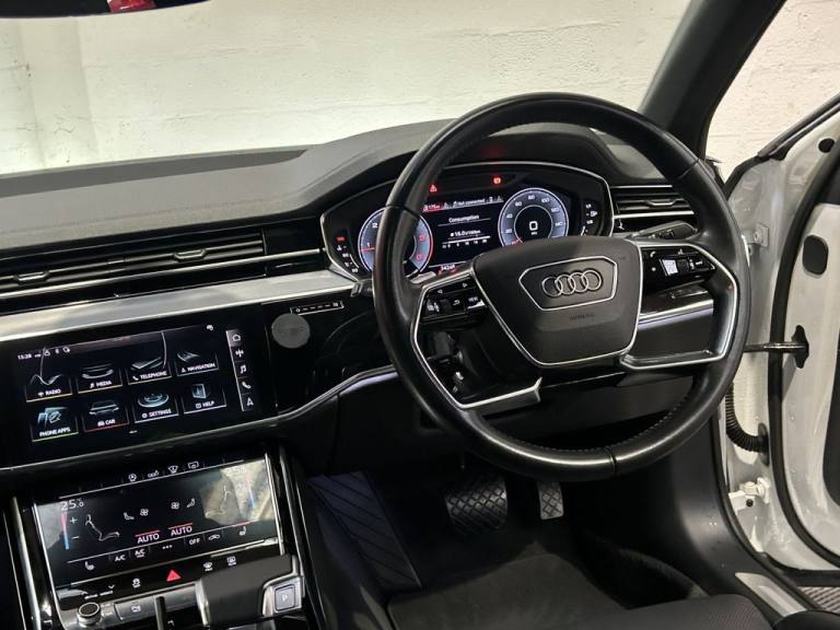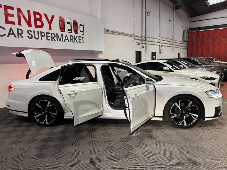 AUDI A8 3.0 TDI V6 50 Black Edition Saloon 4dr Diesel Tiptronic quattro Euro 6 (s/s) (286 ps), COMES WITH; - PANROOF - DIGI DASH - REVERSE CAMERA - MATRIX LED HEADLIGHTS - ADAPTIVE CRUISE CONTROL - CARPLAY/ANDROID AUTO - VIRTUAL COCKPIT - SOFT CLOSE DOORS - FRONT HEATED SEATS - AUDI PRE SENSE - DRIVE MODES - ELECTRIC TAILGATE - DAB - SAT NAV - AUDI DRIVE SELECT - FRONT MEMORY SEATS - BLUETOOTH AUDIO - LEATHER STEERING WHEEL WITH PADDLES - CRUISE CONTROL - ELECTRONIC PARKING BRAKE WITH AUTO HOLD - AUTO HEADLIGHTS - AUTO FOLD MIRRORS - ELECTRIC TAILGATE - PUSH BUTTON START/STOP - ULEZ FREE DISCLAIMER: THE MILEAGE OF THE CAR MIGHT INCREASE SLIGHTLY DUE TO TEST DRIVES Please note : We have completed a DVSA database check to establish whether any manufacturers recall is pending on this vehicle. If a recall has been identified it is referred to in the vehicle description and we will use our best endeavours to ensure that the recall is completed before the time of sale. If there is no reference to a manufacturers recall, it is based on the information supplied by the DVSA at the time of the check but customers are reminded that the DVSA database is only an indicative check and cannot be relied upon as wholly accurate. Customers are encouraged to independently verify the information before proceeding. Any recall detailed will in any event be dealt with by the manufacturer / manufacturers dealer free of charge. IF YOURE CURRENTLY SEARCHING FOR FLEXIBLE AND TAILORED FINANCE OPTIONS TO SUIT YOUR UNIQUE NEEDS AND CIRCUMSTANCES, REST ASSURED-WEVE GOT YOU COMPLETELY COVERED. OUR EXPERIENCED, IN-HOUSE FINANCE SPECIALIST IS HERE TO ASSIST AND CAN HELP YOU GET APPROVED, EVEN IF YOU HAPPEN TO HAVE NEGATIVE EQUITY OR ARE IN NEED OF A ZERO-DEPOSIT DEAL (SUBJECT TO CREDIT STATUS AND INDIVIDUAL ELIGIBILITY). WE COLLABORATE WITH A WIDE VARIETY OF TRUSTED LENDERS TO IDENTIFY AND SECURE THE BEST POSSIBLE SOLUTION FOR YOUR SITUATION. ONCE YOURE APPROVED, WE CAN EVEN GO THE EXTRA MILE TO SOURCE A SPECIFIC VEHICLE JUST FOR YOU IF WE DONT ALREADY HAVE IT AVAILABLE IN OUR CURRENT STOCK. WE WELCOME PART EXCHANGES AND ALSO OFFER A WIDE SELECTION OF COMPREHENSIVE WARRANTY PACKAGES FOR ADDED REASSURANCE. IF YOURE HAVING DIFFICULTY WITH MONTHLY CAR PAYMENTS, OUR SALE-ON-BEHALF SERVICE IS AVAILABLE TO HELP MAKE THE PROCESS SMOOTHER. ADMIN FEES MAY APPLY. DEPOSITS ARE NON-REFUNDABLE. WWW.TENBYCARSUPERMARKET.CO.UK.0% DEPOSIT FINANCE, SAME DAY ACCEPTANCE AND DRIVE AWAY, UP TO 200 CARS IN STOCK , PART EXCHANGE WELCOME, WE CAN SOURCE A CAR/WE CAN SELL YOUR CAR, Panoramic Glass Sunroof, 2-Zone Automatic Air Conditioning, 20in Alloy Wheels - Audi Sport Cast 5-V-Spoke Star Design in Gloss Anthracite Black - Diamond Turned Finish, 3-seat Rear Bench with Centre Armrest, 4-Way Electric Lumbar Support, ABS - Anti-Lock Braking System, AMI - Audi Music Interface, ASF - Audi Space Frame, Acoustic Double Glazing, Adaptive Air Suspension, Adaptive Cruise Control with Speed Limiter, Adaptive Cruise Control with Stop&Go, Advanced Key, Anti-Theft Alarm with Tow-Away Protection, Anti-Theft Wheel Bolts and Wheel Loosening Warning, Audi Connect, Audi Connect Safety and Service - e-call, Audi Drive Select, Audi HD Matrix LED Headlights, Audi Phone Box with Wireless Charging, Audi Pre-Sense Basic, Audi Pre-Sense Front, Audi Sound System, Audi Virtual Cockpit, Audi Wireless Smartphone Interface, Black Door Mirrors, Black Exterior Styling, Camera-Based Traffic Sign Recognition, Cloth Headlining in Black, Comfort Centre Armrest - Front, Comfort Contour Seats, Connect Package Plus, DAB Digital Radio, Door Mirrors - Electrically Adjustable - Heated - Folding - Automatically Dimming with Memory Function and Integrated LED Indicator, Driver and Front Passenger Airbag, Electric Auxiliary Air Heater, Electric Front Seats with Memory Function, Electric Windows - Front, Extended Pedestrian Protection, First Aid Kit and Warning Triangle, Front Reading Lights, Front and Rear Brake Calipers - Painted Black, Front and Rear Floor Mats, Gear Knob - Leather, Glove Compartment Cooling, Head Restraints - Rear, Head-Up Display, Heated Front Seats, High-Beam Assist, Hill Hold Assist, ISOFIX Child Seat Mounting for Outer Rear Seats, LED Interior Light Package, LED Rear Combination Lamps with Dynamic Turn Signal, Lower Inlays in Dark Matt Brushed Aluminium, MMI Navigation Plus including MMI Touch, Operating Buttons in Black - Glass with Extended Aluminium, Parking System Plus - Front and Rear Sensors, Power Door Closure, Power Operated Tailgate, Premium MMI Radio Plus, Privacy Glass, Rear-View Camera, Seat Belt Reminder, Side Airbags - Front and Rear Head Airbag System, Side and Rear Windows in Heat-Insulating Glass, Sun Visors with Illuminated Vanity Mirrors on Driver and Front Passenger Side, Twin-Spoke Leather Multi-Function Steering Wheel with Shift Paddles, Tyre Pressure Warning Light, Tyre Repair Kit,