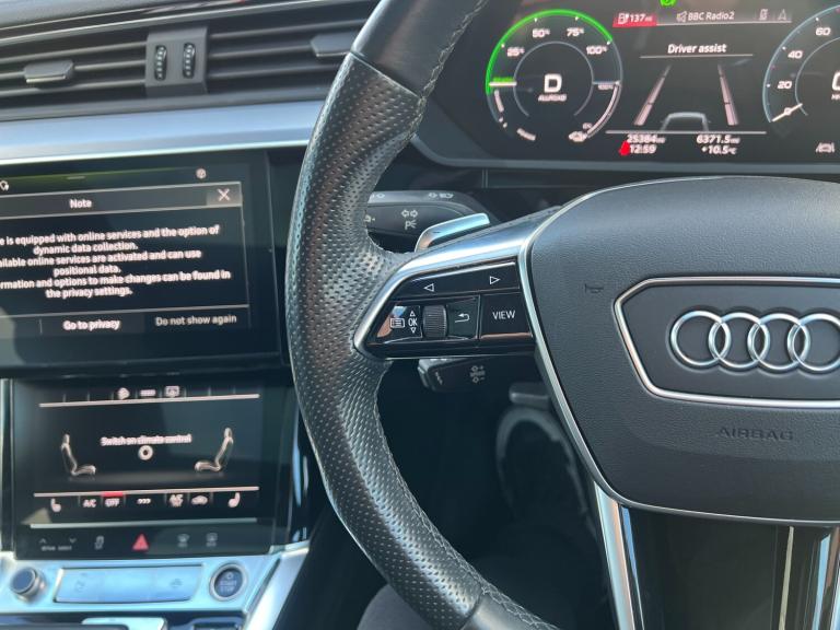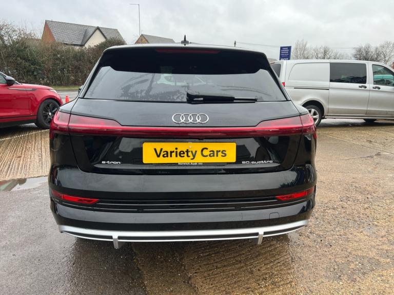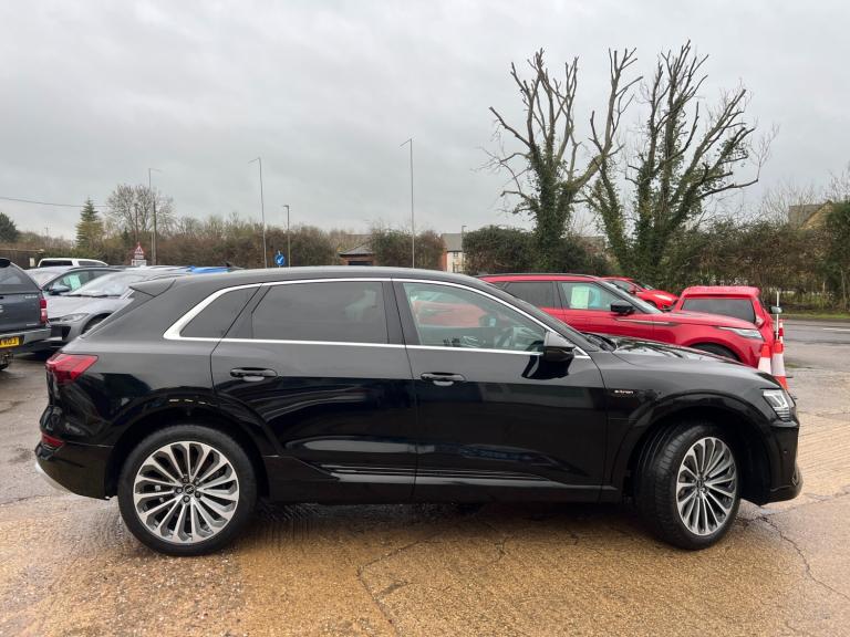 Boasting a remarkably low mileage for its age and a single owner from new, this 2021 Audi e-tron S line presents an exceptional ownership proposition. As an electric vehicle with Four Wheel Drive, it offers a compelling blend of performance and efficiency. Its 71 kWh battery provides a maximum range of 196 miles when new, and can be fully charged at home using a 7kW charger in approximately 9 hours and 10 minutes. For quicker top ups, a rapid public charge can take the battery from empty to 80% in just 34 minutes. This S line model comes with a full dealership service history, with the last service completed on 2025-05-09 at 22043 miles. A 12 month MOT will be provided on purchase, and the vehicle is covered by a 3 month warranty. The Audi e-tron S line is equipped with a suite of advanced features designed to enhance your driving experience. Notable highlights include Audi Matrix LED Headlights with dynamic front and rear indicators, complete with coming and leaving home animations. Parking is made effortless with a rear view camera and the Parking System Plus, which offers 360 degree sensors for comprehensive coverage. Inside, you will find electrically adjustable front seats with a memory function for the driver's seat, and a Bluetooth interface for seamless connectivity. The acceleration is impressive, reaching 0-62mph in just 6.8 seconds, demonstrating its dynamic capability. Furthermore, the generous boot space ensures practicality for everyday needs, setting this e-tron apart from other vehicles in its class.