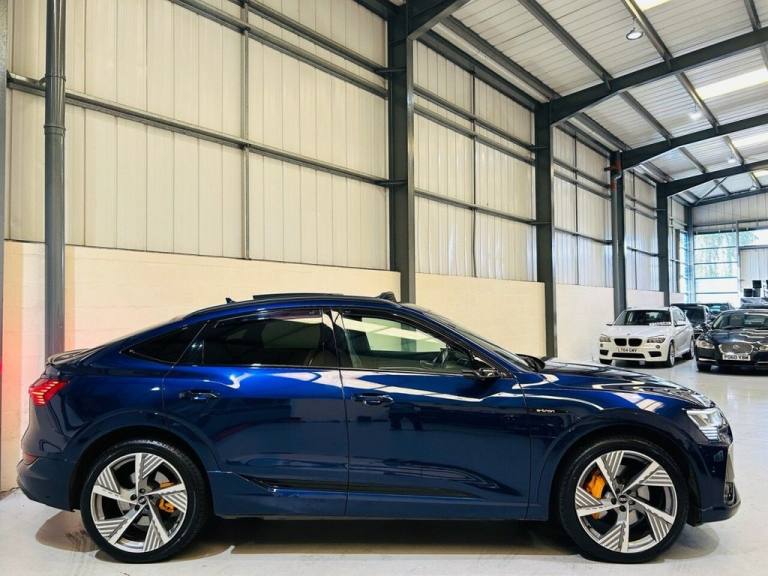 Audi e-tron 55 Vorsprung Sportback 5dr Electric Auto quattro 95kWh (408 ps) Registration: NG21RVX 67,000 miles Service History Navarra Blue A premium all-electric SUV coupe offering outstanding performance, luxury specification and quattro all-wheel drive confidence. The e-tron 55 Vorsprung delivers 408 ps from its dual-motor setup, providing rapid acceleration, smooth power delivery and refined electric driving. The Vorsprung trim adds top-level technology, comfort and safety, making this a superb choice for modern electric motoring. Key Features 95kWh battery with dual-motor quattro all-wheel drive 408 ps electric performance Automatic transmission Vorsprung specification with high-level technology and comfort Virtual cockpit and touchscreen infotainment system Adaptive air suspension Heated seats and premium interior finish Advanced driver assistance systems LED headlights and distinctive e-tron styling Sportback design combining practicality with sleek looks Warranty Warranty packages available for additional cost. HPI & Finance HPI clear. Finance available with flexible packages. Part exchange welcome. Dealer Statement Nationwide delivery available. Get in touch for a walk-around video, test drive or more information. *Preparation fee £199 added to the list price of the vehicle. .Navarra Blue, 11 kW Onboard Charger, 22in Alloy Wheels - 9.5J 5 Spoke Structured Matt Titanium Finish Audi Sport, 4-Way Lumbar Support for Front Seats, ABS - Anti-Lock Braking System, AC and DC Charging Access Point on Drivers Side and Second AC Charging Access Point on Passenger Side, AMI - Audi Music Interface - Front and Rear, Active Vehicle Alerting System - AVAS, Adaptive Air Sport Suspension, Airbags - Driver, Anti-Theft Alarm, Anti-Theft Wheel Bolts and Wheel Loosening Warning, Audi Beam with e-tron Logo, Audi Connect, Audi Connect Safety and Service - e-call, Audi Drive Select, Audi Phone Box with Wireless Charging, Audi Pre-Sense Front and Basic, Audi Side Assist including Pre-Sense Rear, Audi Smartphone Interface Includes Wireless Functionality, Audi Virtual Cockpit Plus, Auto Dimming and Frameless Rear View Mirror, Black Roof Rails, Black Styling Pack, Climate Control - Electronic Deluxe 4-Zone, Cloth Headlining in Black, Comfort Centre Armrest - Front, Comfort Remote Pre-Conditioning, Comfort and Sound Package, Compact e-tron Charging System, DAB Digital Radio, Door Mirrors - Black, Electric Windows - Front and Rear, Electrically Adjustable Front Seats including Memory Function for Drivers Seat, Extended Twin Leather Pack, First Aid Kit and Warning Triangle, Front and Rear Floor Mats, Head-Up Display, Heated Front and Rear Seats, Household Plug Type G - GB, ISOFIX Child Seat Mounting for Front Passenger Seat with Front Passenger Airbag Deactivation, ISOFIX Child Seat Mounting for Outer Rear Seats, Illuminated Door Sill Trims with Aluminium Inlays - Front and Rear with S Logo in Front, Industry Plug CEE 32 A-230 V, Inlays in Fine Grain Ash - Natural Volcanic Grey, Keyless Go, LED Rear Lights, Luggage Compartment Cover, MMI Navigation Plus with MMI Touch - Twin Touch Screens with Haptic Feedback, Mode 3 Type 2-AC Charging Cable 22kW, Operating Buttons in Black - Glass Look with Haptic Feedback, Panoramic Glass Sunroof, Parking System Plus with 360 Degree Sensors and Function-On-Demand Preparation, Power Door Closure, Power Operated Tailgate, Privacy Glass, Progressive Steering, Rear Boot Lid Spoiler, Rear Side Airbags with Illuminated Seat Buckles, Side Airbags - Front and Head Airbag System, Sun Visors with Illuminated Vanity Mirrors, Tool Kit, Tour Pack, Vehicle Inlet Combo 2 - EU CCS, Virtual Door Mirrors