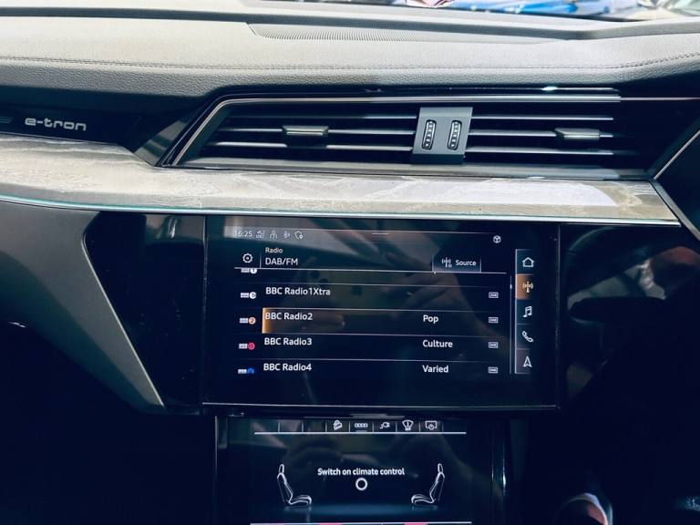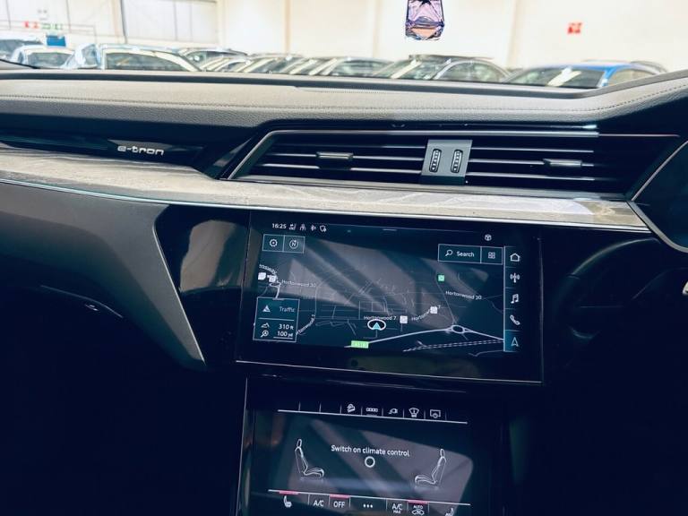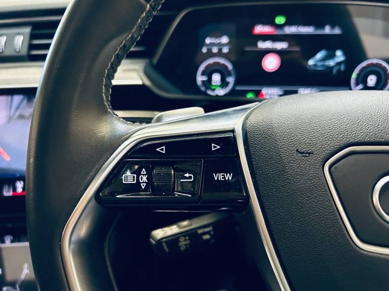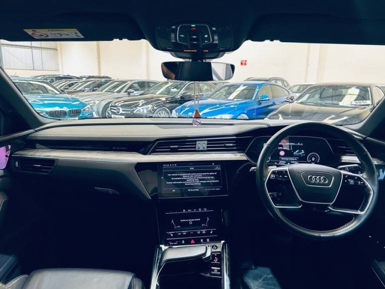 Audi e tron 55 Vorsprung Sportback 5dr Electric quattro 95kWh 408ps A premium fully electric SUV coupe combining cutting edge technology with Audis renowned build quality and quattro all wheel drive capability. Key features • 95kWh battery with up to 408ps • Quattro all wheel drive system • 0 to 62mph in around 5.7 seconds • WLTP range up to 241 miles • Rapid charging capability up to 150kW • Road tax exempt • Service history Additional extras • Vorsprung specification with panoramic glass sunroof • Adaptive air suspension • Matrix LED headlights • Bang and Olufsen 3D premium sound system • Heads up display • Heated and ventilated Valcona leather sports seats • 360 degree cameras and advanced park assist • Audi Virtual Cockpit and dual touchscreen MMI navigation • Lane assist and adaptive cruise control • 21 inch alloy wheels The Vorsprung specification sits at the top of the e tron range with every luxury and safety feature included. With effortless electric performance, striking Sportback styling and outstanding levels of comfort and technology, this model represents the very best of Audis electric innovation..Navarra Blue, 11 kW Onboard Charger, 22in Alloy Wheels - 9.5J 5 Spoke Structured Matt Titanium Finish Audi Sport, 4-Way Lumbar Support for Front Seats, ABS - Anti-Lock Braking System, AC and DC Charging Access Point on Drivers Side and Second AC Charging Access Point on Passenger Side, AMI - Audi Music Interface - Front and Rear, Active Vehicle Alerting System - AVAS, Adaptive Air Sport Suspension, Airbags - Driver, Anti-Theft Alarm, Anti-Theft Wheel Bolts and Wheel Loosening Warning, Audi Beam with e-tron Logo, Audi Connect, Audi Connect Safety and Service - e-call, Audi Drive Select, Audi Phone Box with Wireless Charging, Audi Pre-Sense Front and Basic, Audi Side Assist including Pre-Sense Rear, Audi Smartphone Interface Includes Wireless Functionality, Audi Virtual Cockpit Plus, Auto Dimming and Frameless Rear View Mirror, Black Roof Rails, Black Styling Pack, Climate Control - Electronic Deluxe 4-Zone, Cloth Headlining in Black, Comfort Centre Armrest - Front, Comfort Remote Pre-Conditioning, Comfort and Sound Package, Compact e-tron Charging System, DAB Digital Radio, Door Mirrors - Black, Electric Windows - Front and Rear, Electrically Adjustable Front Seats including Memory Function for Drivers Seat, Extended Twin Leather Pack, First Aid Kit and Warning Triangle, Front and Rear Floor Mats, Head-Up Display, Heated Front and Rear Seats, Household Plug Type G - GB, ISOFIX Child Seat Mounting for Front Passenger Seat with Front Passenger Airbag Deactivation, ISOFIX Child Seat Mounting for Outer Rear Seats, Illuminated Door Sill Trims with Aluminium Inlays - Front and Rear with S Logo in Front, Industry Plug CEE 32 A-230 V, Inlays in Fine Grain Ash - Natural Volcanic Grey, Keyless Go, LED Rear Lights, Luggage Compartment Cover, MMI Navigation Plus with MMI Touch - Twin Touch Screens with Haptic Feedback, Mode 3 Type 2-AC Charging Cable 22kW, Operating Buttons in Black - Glass Look with Haptic Feedback, Panoramic Glass Sunroof, Parking System Plus with 360 Degree Sensors and Function-On-Demand Preparation, Power Door Closure, Power Operated Tailgate, Privacy Glass, Progressive Steering, Rear Boot Lid Spoiler, Rear Side Airbags with Illuminated Seat Buckles, Side Airbags - Front and Head Airbag System, Sun Visors with Illuminated Vanity Mirrors, Tool Kit, Tour Pack, Vehicle Inlet Combo 2 - EU CCS, Virtual Door Mirrors