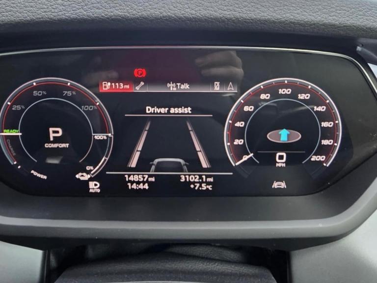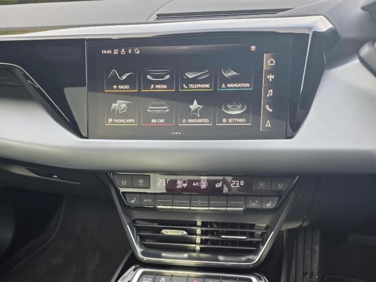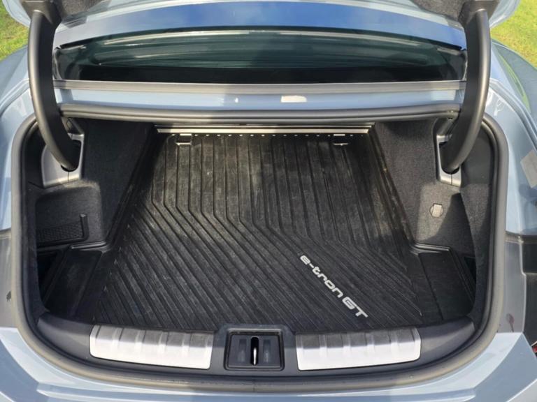Active vehicle alerting system (AVAS), Audi pre sense front and basic, Side, front and head airbag system, Tyre pressure monitoring system, Warning triangle and first aid kit, Anti theft alarm, Anti-theft wheel bolts and wheel loosening detection, Keyless Go, Black brake calipers, Suspension with damping control, Body coloured door mirrors, Electrically adjustable, heated and folding + automatically dimming exterior mirrors, Frameless auto dimming interior rear view mirror, Heat insulating glass in windshield, Privacy glass, Windscreen with acoustic glazing, Active rear spoiler, Fixed panoramic glass roof, Grille in hekla grey, Solid paint, LED Headlights with dynamic indicators, LED rear lights with dynamic rear indicators, 40:20:40 split folding rear bench seat, 8 way electrically adjustable front seats, Adjustable rear head restraints, Heated front seats, Isofix child seat mounting points on outer rear seats, Front and rear door sill trims with aluminium inlays with e-tron GT logo at front, Graphite grey paint finish inlays, Sunvisors with illuminated vanity mirrors, 3-spoke leather flat bottom sport steering wheel, multifunction plus and energy recovery paddles, Black cloth headlining, Twin leather upholstery, 3 zone climate control, Comfort remote pre conditioning, Power operated tailgate, Audi drive select, Audi parking system plus, Cruise control + speed limiter, Lane departure warning system, Rear view camera, Audi virtual cockpit, MMI navigation plus with MMI touch + Twin touch screens with haptic feedback, Audi connect safety and service (e-call), Audi phone box with wireless charging, Audi Smartphone Interface with wireless functionality, Audi sound system with 10 loudspeakers, DAB Digital radio, 20" aluminium alloy wheels in a 5 twin spoke design in platinum look, Tyre repair kit