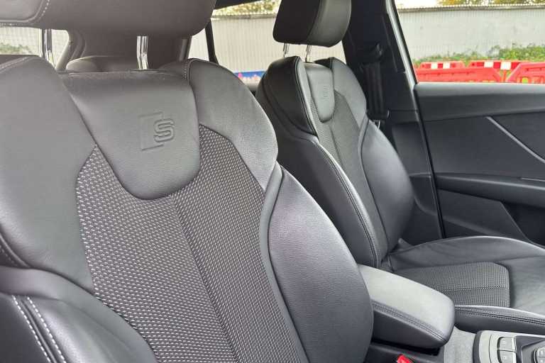 Black appearance package (4ZD), Blade in Brilliant Black (6H1), Exterior mirror housings in Black (6FJ), Privacy glass (dark-tinted windows) (VW1), Extended Black Styling package (PAI), Ambient Lighting package (QQ1), Audi connect remote & control (for MMI navigation plus) (EL5), Audi drive select (2H6), Audi pre sense front (6K2), Audi smartphone interface (UI2), Audi virtual cockpit (9S8), Bluetooth interface (9ZX), Hold assist (UH2), ISOFIX and top tether for outer rear seats (3B4), Rear parking aid (7X1), Separate daytime running light (8K4), Sports seats in front (Q4H), Sports suspension system (1JC), Start/stop system with regenerative braking (7L6)