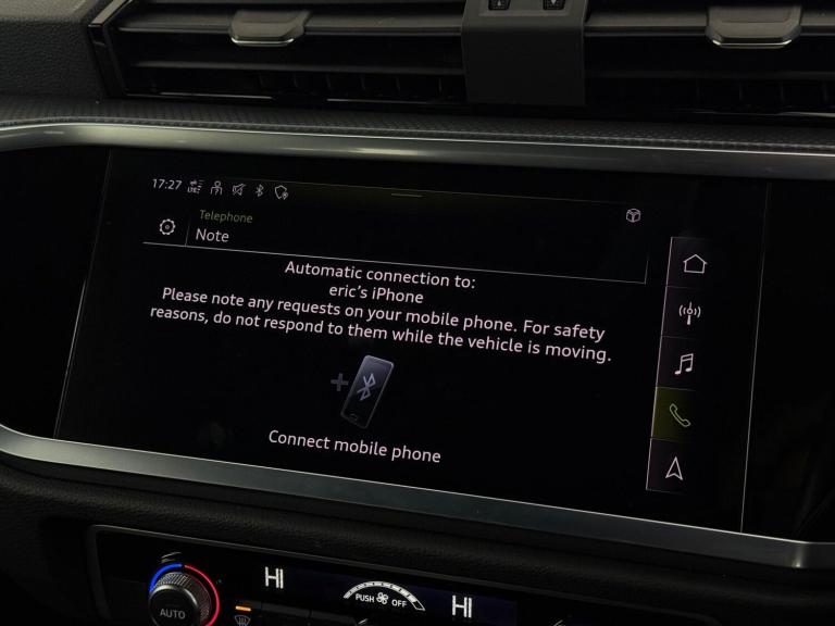 Our Audi Q3 is finished in Black. With a great specification, our Q3 includes features such as 19 Inch Alloy Wheels, Electric and Heated Mirrors, Electric Folding Mirrors, Front and Rear Electric Windows, Privacy Glass, Air Conditioning, Apple Carplay, Bluetooth, DAB Radio, Multi-Function Steering Wheel, Parking Sensors, Satellite Navigation, Speed Limiter, USB, Black Half Leather Trim, Central Armrest, Cup Holders, Electric Tailgate, Folding Rear Seats, Rear Central Armrest, ISOFIX, LED Daytime Running Lights, LED Headlights, LED Tailights, Remote Central Locking.All Car Planet stock is carefully selected, so you can buy with confidence. Every vehicle undergoes a thorough 150+ point inspection at our dedicated preparation hub by qualified specialists. Every car comes with 12 months of free AA breakdown cover, with the option to add an RAC warranty for up to 60 months of extended protection. You can reserve any car online with a fully refundable £99 reservation at car-planet.co.uk. We also offer nationwide delivery from just £199, with your new car arriving in as little as 48 hours. We also welcome you to visit one of our retail sites in Barnet or Watford, where our friendly team will guide you through the process and help you find the perfect car. If you're unable to visit in person, same-day video viewings are also available. We offer a range of flexible finance options from our panel of trusted lenders, and we welcome part-exchanges. Simply select, secure, and drive.