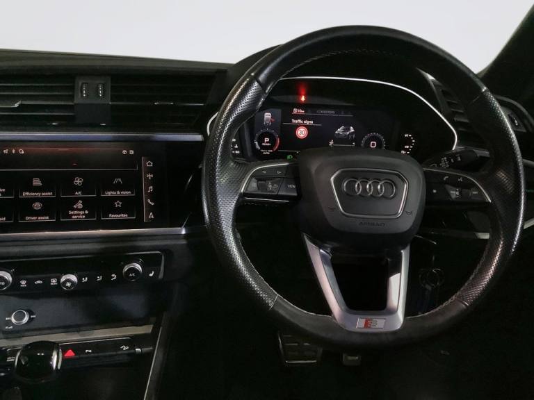 Why This Audi Q3 Wins? With just one previous owner, this 2021 Audi Q3 1.5L TFSI S line blends sharp styling, practical performance, and Audis premium craftsmanship into one compelling package. The S line trim delivers a sporty aesthetic while packing in must-have features like dual-zone electronic climate control, rear parking sensors, and automatic light and rain sensors. Stay connected with the Audi Smartphone Interface, featuring wireless Apple CarPlay and Android Auto, and enjoy seamless communication through the Bluetooth interface. With its Euro 6 emissions rating, this Q3 is both eco-conscious and compliant with current standards. A 0-62mph time of 9.4 seconds ensures punchy acceleration while maintaining fuel efficiency - outperforming many rivals in its class. Your Peace of Mind? - Clear vehicle history check - Optional 3-36-month extendable warranties - Free 12-month AA roadside assistance - Last Serviced, December 2024 - Drive Away, Insurance Available - No hidden or extra costs, like admin fees Autotraders 2024 Insights: Top 3 Audi Q3 Buyer Priorities: - Modern infotainment with seamless smartphone integration - Sporty styling with efficient petrol performance - Practicality with premium comfort features - This S line model delivers across all areas, offering wireless connectivity, comfort tech, and a sleek design in a well-maintained, one-owner car. Stress-Free Next Steps: - Free Part Exchange Valuation - £0 Deposit Car Finance - Includes free credit checker - Reserve for £99 - Fully refundable .2 USB-C Ports with Charge and Data Functions, 6 Passive Loud Speakers, Audi Connect Infotainment Services Plus - 3 Year Subscription, Audi Connect Safety and Service - e-call, Audi Smartphone Interface includes Wireless Apple CarPlay, Bluetooth Interface, DAB Digital Radio, MMI Navigation Plus with High Resolution 10.1in Touchscreen Colour Display, 19in Alloy Wheels - 7.0J 5-Twin-Spoke - Dynamic Design, Aluminium Roof Rails, Aluminium Window Trims, Anti Theft Locking Wheel Bolts, B and C-Pillar Trim in High-Gloss Black, Body Coloured Door Mirrors, Bumpers in Full Body Colour Paint Finish, Door Mirrors - Electrically Folding - Adjustable and Heated with Integrated LED Side Indicators and Kerb-view Function for Passenger Side, Electric Windows - Front, Frame of Front Side Air Inlets in Platinum Grey - Matt, Front Spoiler Blade in Platinum Grey - Matt, Grille Surround in Silver - Chrome, Grille Vertical Bars in Aluminium Silver - Matt, Privacy Glass - Dark-Tinted Rear and Rear-Side Windows - From B-Pillar Backwards, Radiator Grille - Titanium Black, Rear Diffuser in Titanium Black Matt, S Line Badges on the Front Wings, S line Front and Rear Bumpers and Side Skirts, Side Skirt Insert in Platinum Grey - Matt, Tyre Repair Kit, Windscreen in Acoustic Glazing, Comfort and Sound Package, 3-Spoke Leather Multi-Function Steering Wheel - S Badging and Grips in Perforated Leather with Contrast Stitching, Adjustable Rear Seat Bench-Backrest with Centre Armrest and Cupholder, Aluminium Look Interior Elements, Audi Virtual Cockpit - 10.25in Display, Auto Dimming and Frameless Rear View Mirror, Cloth Headlining in Black, Detail in Dashboard Around the MMI Touch Colour Display in Glass Look - Black with Surround in Aluminium Look, Dual-Zone Electronic Climate Control, Front Centre Armrest, Front and Rear Floor Mats in Black with Contrast Stitching in Rock Grey, Gear Knob in Perforated Leather, Illuminated Door Sill Trims with S Logo, Inlays - Matt Brushed Aluminium - Dark, Interior Lighting, Leatherette Door Armrests, Luggage Compartment Sill Protection in Stainless Steel, Manually Adjustable Front Seats, Non-Smoking Package, Pedals in Stainless Steel, Power Operated Tailgate, Tool Kit, Mythos Black, LED Headlights with LED Daytime Running Lights, Light and Rain Sensor, Progressive Steering, Sport Suspension, 6-Airbag System, Anti-Theft Alarm, Audi Drive Select, Audi Pre-Sense Basic, Audi Pre-Sense Front with Pedestrian and Cyclist Recognition, Camera-Based Traffic Sign Re