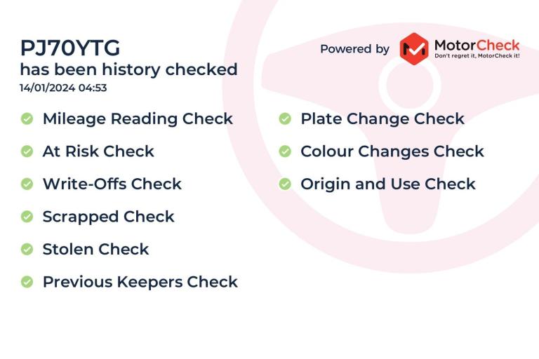 Our vehicle history check is provided for guidance only. Please check all the details with the seller before purchasing