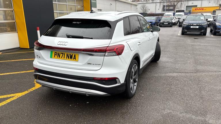 Slip behind the wheel of this Audi Q4 e-tron 35 S line and it’s immediately clear: this is where electric motoring gets seriously exciting. Audi’s compact electric SUV doesn’t just whisper into the future – it surges there with confidence, style and a tech-laden grin.Front and centre is the satellite navigation, crisp, intuitive and always one step ahead, guiding you effortlessly whether you’re threading city streets or stretching its legs on the motorway. Parking? Child’s play. With front and rear parking sensors, tight spaces suddenly feel generous, while the clever electric opening tailgate adds a touch of theatre (and huge convenience) when loading shopping, luggage or weekend gear.Then there’s the joy of the open road. Adaptive cruise control transforms long journeys into a relaxing glide, automatically adjusting your speed to traffic ahead. It’s smooth, clever and exactly what you want from a premium electric Audi. Add in the hushed electric drive, instant torque and S line sports styling, and you’ve got a car that feels as good as it looks.Buying from Vertu Renault Nottingham only sweetens the deal. You’ll drive away with complete peace of mind thanks to a complimentary 3-month warranty, with the option to extend for longer-term reassurance. Every vehicle is prepared by manufacturer-trained technicians, ensuring exacting standards and expert care from people who truly know their craft.This isn’t just a used car – it’s a polished, premium electric experience, backed by a trusted dealer and packed with features that make every journey something to look forward to. Plug in, strap in, and enjoy the future..Air Conditioning, Climate Control, Satellite Navigation, Alloy Wheels, Heated Seats, DAB Radio, Bluetooth, Parking Sensors, USB, Adaptive cruise, Keyless Entry-Push Button Start, Electric Opening Tailgate, Auto Lights, Pre Crash Prevention& Rain Sensors, Front/rear floor mats, Side and rear window privacy glass, Acoustic glass windscreen, Rear wiper, Bluetooth interface, Audi Smartphone Interface with wireless functionality, Lane departure warning system, Audi drive select, Camera based traffic sign recognition, Swerve assist and turn assist, Power operated tailgate, Audi Virtual Cockpit - 10.25"" display, MMI Navigation Plus with high resolution 11.6 inch touchscreen colour display, Body coloured door mirrors, Frameless auto dimming interior rear view mirror, Electrically adjustable/heated/folding/dimming door mirrors with kerb view includes integrated LED indications + kerb view function for passenger side, Aluminium look interior elements