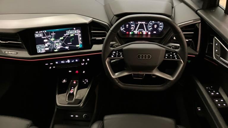 ***Audi Approved Used***We’re delighted to offer this stunning 2021 Audi Q4 Launch Edition 40 e-tron, finished in the sophisticated Typhoon Grey metallic. A fantastic example of Audi’s fully electric SUV, this Q4 combines striking looks, premium build quality and impressive electric performance. The Launch Edition comes generously equipped with an array of advanced features and stylish details throughout, ensuring every journey is both comfortable and enjoyable. A superb choice for those looking to move into electric driving without compromise..Air Conditioning, Climate Control, Metallic Paint, Cruise Control, Satellite Navigation, Alloy Wheels, Leather Seats, Heated Seats, Bluetooth, Parking Sensors, USB, Manufacturer Approved, Apple-Android Play, Rear Camera, Auto Lights, Lane Departure, Pre Crash Prevention& Rain Sensors, Front/rear floor mats, Side and rear window privacy glass, Sports suspension with 15mm lower, Bluetooth interface, Cruise control + speed limiter, Power operated tailgate, MMI Navigation Plus with high resolution 10.1 inch touchscreen colour display, Body coloured door mirrors, Aluminium look interior elements, 125kW DC charging capability, DAB Digital radio, Aluminium roof rails, Headlight washers, Auxiliary air conditioning, Tool kit, Gloss styling pack - Q4 E-tron, Seatbelt warning, Heated front seats, Anti theft alarm, 20"" 5 Y Spoke graphite grey alloy wheels with gloss finish, Tyre repair kit