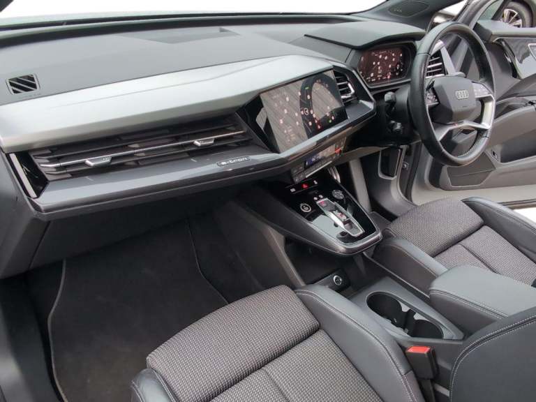 This 2021 Audi Q4 e-tron S line boasts exceptionally low mileage for its age, having covered just 20,613 miles. As an electric vehicle, it offers a sophisticated driving experience with an 82 kWh battery providing a maximum range of 303 miles when new. This S line variant comes equipped with desirable features such as a Bluetooth interface for seamless connectivity and heated front seats for added comfort. The MOT is valid until October 2026, offering peace of mind. The Audi Q4 e-tron S line stands out with its impressive electric capabilities. Its substantial 82 kWh battery allows for a considerable driving range of up to 303 miles from new, a figure that highlights its efficiency compared to many other electric vehicles. Charging is convenient, with a full charge at home taking approximately 11 hours and 30 minutes using a 7kW charger, while rapid public charging can replenish the battery from empty to 80% in as little as 30 minutes. Furthermore, this model offers generous boot space, making it a practical choice for everyday use and longer journeys.