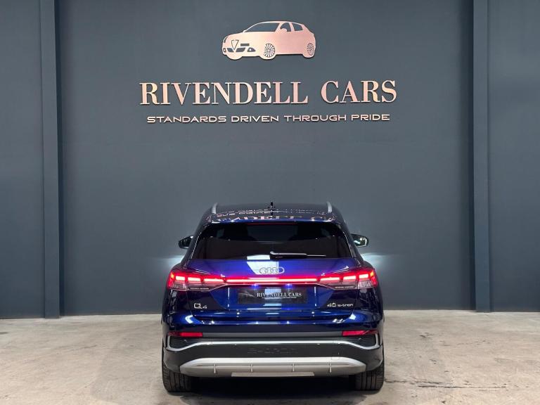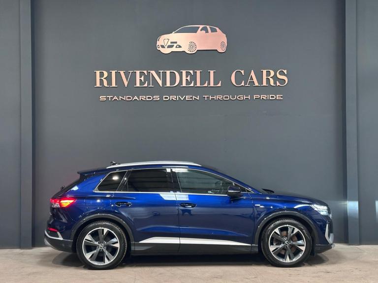At Rivendell Cars we pride ourselves on delivering a bespoke 5 star service to all of our clients. This, along with providing only the finest hand picked cars is of the utmost importance to us.This 2021 Audi Q4 e-tron Launch Edition presents an excellent opportunity to experience premium electric driving. As an electric vehicle, it boasts an 82 kWh battery offering a maximum range of 305 miles when new, ensuring you can travel further on a single charge. Charging at home with a 7kW charger takes approximately 11 hours and 30 minutes for a full charge, while rapid public charging can take you from empty to 80% in just 40 minutes. This Launch Edition comes equipped with the Technology Package, featuring a Head Up Display for enhanced driver information, and the Audi Smartphone Interface, which seamlessly integrates Android Auto and Apple CarPlay. Enjoy your favourite music with the SONOS Premium Sound System, and benefit from the convenience of rear parking sensors for easier manoeuvring.The Audi Q4 e-tron Launch Edition stands out with its impressive 305 mile maximum range, a key indicator of its capability compared to other electric vehicles. Furthermore, its large boot space provides ample room for luggage, shopping, or sports equipment, making it a practical choice for everyday life and longer journeys. The inclusion of a Bluetooth interface allows for effortless connectivity with your devices.