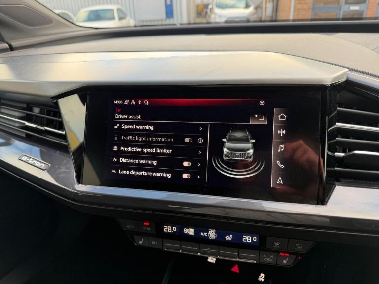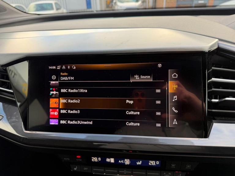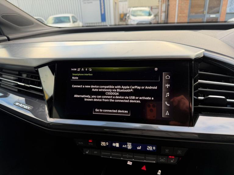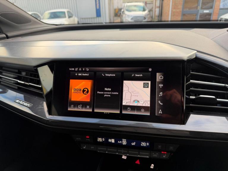 This 2021 Audi Q4 e-tron S line presents a superb ownership proposition, having been cherished by just one owner from new and boasting a remarkably low mileage of 28,000 miles. As a fully electric vehicle, it offers an impressive maximum range of 303 miles when new, making it ideal for both daily commutes and longer journeys. The S line trim ensures a sporty aesthetic and enhanced driving experience, complemented by practical features such as rear parking sensors and advanced LED headlights with distinctive daytime running lights. Inside, you'll find the convenience of comfort auxiliary air conditioning and a 3-zone electronic climate control system, ensuring a pleasant environment for all occupants.Further enhancing your driving pleasure, the Audi Q4 e-tron S line comes equipped with the Audi Smartphone Interface, seamlessly integrating your Android Auto or Apple CarPlay for easy access to navigation, music, and calls. This electric SUV also boasts a generous boot space, providing ample room for shopping or luggage. When it comes to charging, a full charge at home using a 7kW charger takes approximately 11 hours and 30 minutes, while rapid public charging can replenish the battery from empty to 80% in as little as 30 minutes. These capabilities, combined with its low mileage and single owner history, position this Audi Q4 e-tron S line as an exceptional choice in the electric vehicle market.
