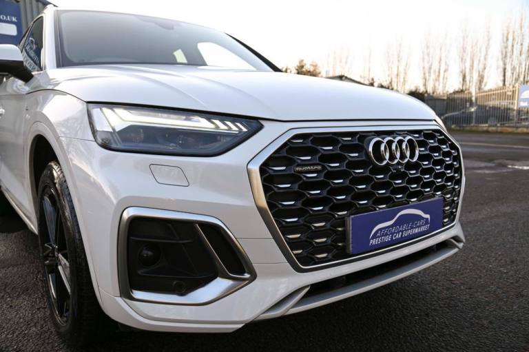 Prestige Car Supermarket in York presents this 2021 Audi Q5 2.0 TDI 40 S line Sportback, a refined quattro diesel SUV finished in Glacier White metallic and paired with 19in 5-Twin-Spoke Star Design alloy wheels. This S line Sportback combines sporty styling with everyday practicality, featuring Dinamica-leather sport seats in black with contrast stitching, a black cloth headlining and brushed aluminium interior inlays. Standard S line highlights include S line front and rear bumpers, side skirts, rear spoiler and sports suspension, giving the car a confident and athletic stance. Inside, the cabin is centred around the Audi Virtual Cockpit Plus with a 12.3in digital display, MMI Navigation Plus with a 10.1in touchscreen, Audi wireless smartphone interface, Bluetooth and DAB digital radio. Comfort is enhanced by heated front seats, deluxe 3-zone electronic climate control, keyless go, a power operated tailgate and a height-adjustable front centre armrest. Safety and driver assistance systems include Audi Drive Select, Audi Pre-Sense City, multi-collision brake assist, front and rear parking sensors with acoustic warning, reversing camera, cruise control with speed limiter and ISOFIX child seat mounting points. Additional features include Matrix LED headlights with dynamic indicators, privacy glass, acoustic windscreen, electrically folding heated mirrors, aluminium roof rails and quattro on demand all-wheel drive, making this Q5 Sportback a well-equipped and capable premium SUV. With over 1000 5* Reviews Prestige Car Supermarket proudly stands as the premier destination for discerning buyers seeking the best value in prestige vehicles across the UK. Our comprehensive offerings include meticulously prepared cars from our in-house preparation centre, each undergoing a rigorous multi-point inspection. To secure your desired vehicle, we offer a fully refundable £250 reservation facility accessible online or over the phone, Subject to T&Cs. Sales Executives are available to provide tailored walkaround videos upon request. While every effort is made to maintain accurate vehicle information, specifications may vary. we encourage customers to verify details with our Sales Executives. Recognised as a finalist in the Autotrader Retailer Awards and highly regarded for our commitment to exceptional customer service, we invite you to experience the excellence of Prestige Car Supermarket, Prestige Cars at affordable prices. .Dinamica-Leather - Sport Seats - Black, Glacier White, 19in Alloy Wheels - 5-Twin-Spoke Star Design, 2 USB Charging Ports -1 x USB-A and 1 x USB-C Port, 3-Spoke Multi-Function Leather Steering Wheel with Grips in Perforated Leather and S Badging, 6-Airbag System, Aluminium Roof Rails, Anti Theft Locking Wheel Bolts, Anti-Theft Alarm, Audi Connect with Amazon Alexa Integration, Audi Drive Select, Audi Pre-Sense City, Audi Virtual Cockpit Plus - 12.3in Screen and Three Different Layout Designs, Audi Wireless Smartphone Interface, Auto-Dimming Rear-View Mirror, Automatic Headlight Adjustment, Automatic Headlight and Windscreen Wiper Activation, Automatic Start-Stop with Coasting Functionality and Efficiency Programme, Bluetooth Interface, Body Coloured Door Mirrors, Chrome-Plated Exhaust Trim, Cloth Headlining in Black, Comfort Front Centre Armrest - Height Adjustability and Slide Function, Contrast Stitching on Seats - Steering Wheel and Gear Lever Gaiter, Cruise Control System with Speed Limiter, DAB Digital Radio, Deluxe 3-Zone Electronic Climate Control, Door Mirrors - Electrically Folding and Heated and Auto Dimming, Door Sills in Selenite Silver, ESC - Electronic Stabilisation Control inc ABS - ASR and EDL, Electric Child Locks for Rear Doors, Electric Windows - Front, Electromechanical Parking Brake, Electromechanical Power Steering, Front Air Inlet Surrounds in Aluminium, Front Radiator Grille in Honeycomb Design, Front and Rear Parking Sensor with Acoustic Warning, Gear Lever in Black Leather, Headlight Washers, Heated Front Seats, High Gloss Package, Hill Descent Control, Hill Hold Assist, ISOFIX Child Seat Mounting and Top Tether, Illuminated Door Sill Trims with S Logo, Inlays - Matt Brushed Aluminium, Keyless Go, LED Interior Lighting Pack, Lower Bumper Painted in Contrast Manhattan Grey, MMI Navigation Plus with 10.1in Touchscreen, Manual Seat Adjustment with 4-Way Electric Lumbar Support, Matrix LED Headlights with Dynamic Front and Rear Indicators, Multi Collision Brake Assist, Pedals in Stainless Steel, Pop-Up Bonnet for Pedestrian Protection, Power Operated Tailgate, Privacy Glass - Rear and Rear-Side Windows, Rear Chrome Trim Strips Below Lights, Rear Diffuser in Body Colour with Matt Aluminium Silver Insert, Removable Luggage Compartment Floor, Reversing Camera, Roof Bars, S Line Badges on the Front Wing Panels, S Line Front and Rear Bumpers, S Line Side Skirts, S Line Sports Suspension, S line Rear Spoiler, Seat Belt Monitoring, Split Fol