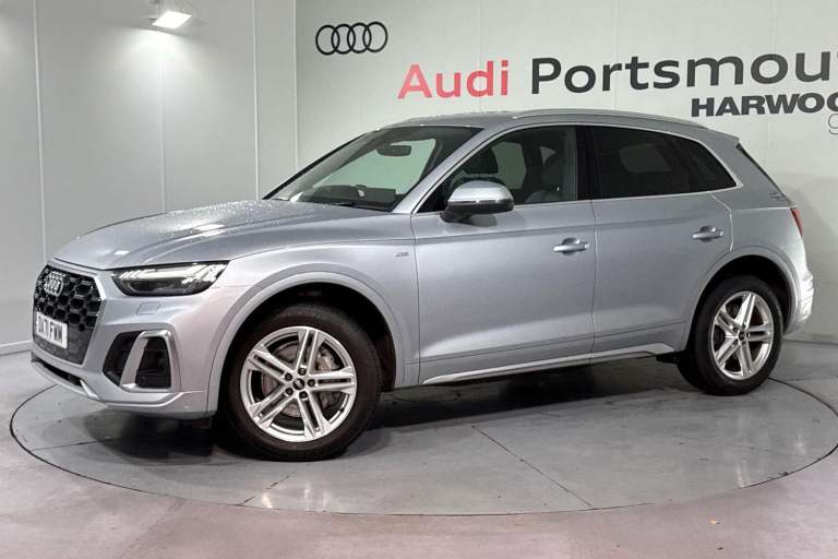 QUATTRO ON DEMAND, S LINE SPORT SUSPENSION, SATELLITE NAVIGATION, REAR PARKING CAMERA, MULTI FUNCTION STEERING WHEEL, HILL HOLD ASSIST, CRUISE CONTROL, AUDI VIRTUAL COCKPIT, LANE DEPARTURE WARNING, APPLE CARPLAY, ANDROID AUTO, DAB RADIO, TINTED WINDOWS - PRIVACY GLASS, FRONT AND REAR PARKING SENSORS, SPLIT FOLDING REAR SEATS, LIGHT & RAIN SENSOR, AUTO DIMMING REAR VIEW MIRROR, SELECTABLE DRIVING MODES, PUSH BUTTON START, FLORET SILVER METALLIC WITH LEATHER/ALCANTARA UPHOLSTERY, 19'' ALLOY WHEELS, DUAL ZONE CLIMATE CONTROL, HEATED FRONT SEATS WITH LUMBAR SUPPORT, MATRIX LED HEADLIGHTS WITH DYNAMIC REAR INDICATORS, VOICE ACTIVATED CONTROLS AND MUCH MORE.All Audi Approved used cars are offered with a 12-month warranty and roadside assistance.Portsmouth Audi are delighted to offer this Audi Q5 in Floret silver over Alcantara/ Leather and has completed just 14623 miles., We are proud to be part of the Harwoods group, a family run business established in 1931. With four Approved Audi retailers within our group, we have access to over 400 vehicles. If this isn't the right car for you, please contact us and we will find it. Our group stock has spec to include Sunroof, Leather, Heated Seats, Apple Car Play, Heated Steering Wheel, Reverse Camera, Rear Entertainment, Towbar, 360-degree camera, Comfort & Sound Pack, Tech Pack, Panoramic Sun Roof, Tow Bar, Black Pack, Air Suspension, Apple Carplay, Adaptive Cruise, Massage Seats, Refrigerator, AWD, Technology Pack, Head up Display, Vorsprung, Technik, Black Edition, S-Line, S Line, Edition 1, TFSI, Quattro, Sportback, LWB. Other colour options including Black, Blue, Green, Silver, White, Red, Grey, Yellow, Orange. Interior options of Ebony, Black, Ivory, White, Tan, Cream, Oyster, & Euro 6 ULEZ compliant drive trains.