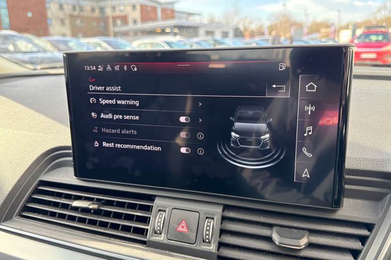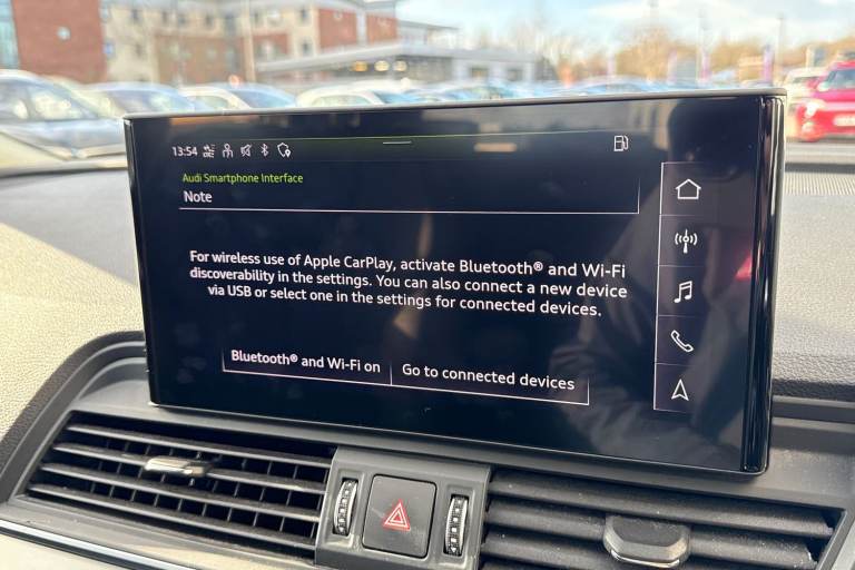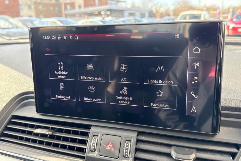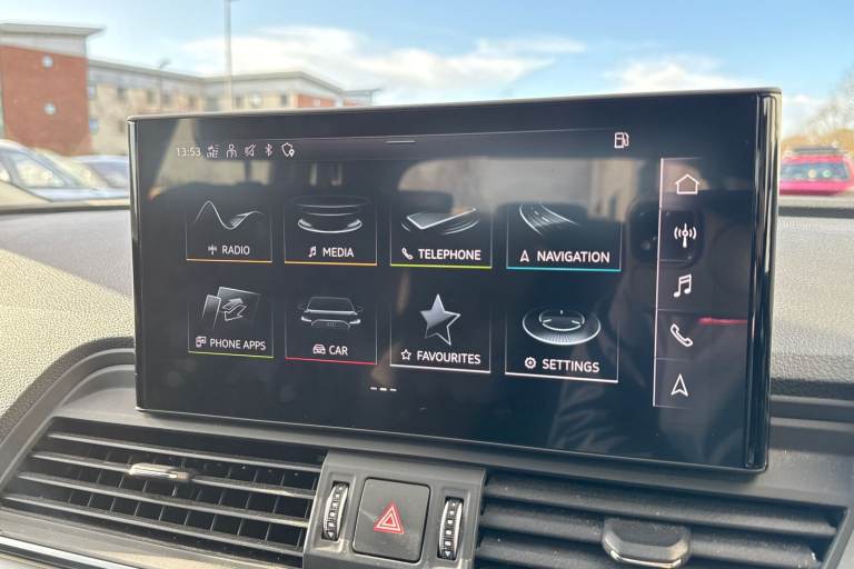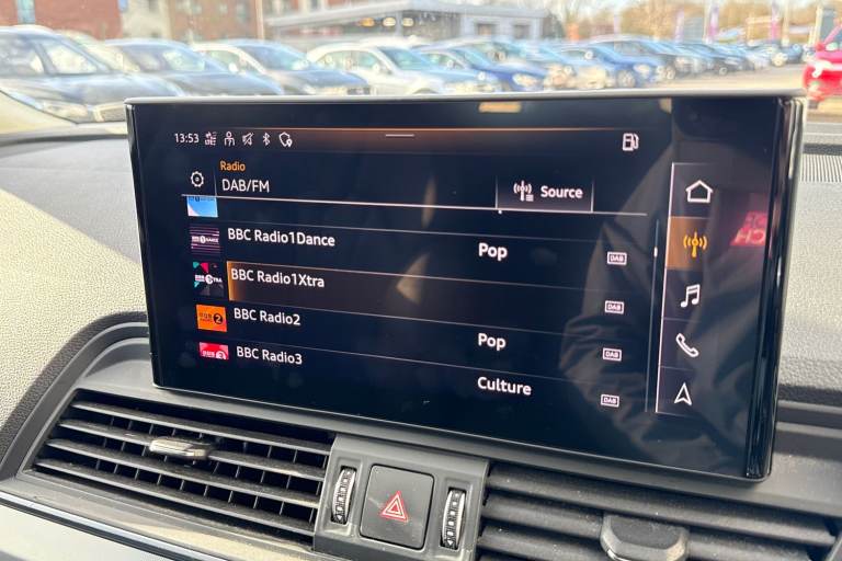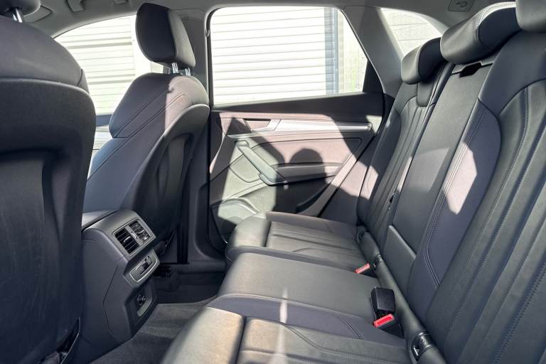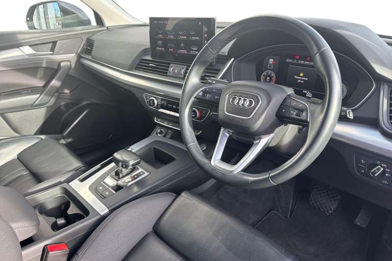 This 2021 black Audi Q5 2.0 TDI 40 Sport S Tronic quattro is powered by a 2.0-litre diesel engine producing 204 PS, paired with a smooth S Tronic automatic transmission. Featuring quattro on-demand all-wheel drive, this Q5 delivers assured performance with excellent refinement, making it ideal for both daily driving and longer journeys. On the outside, the Q5 presents a strong yet understated look, highlighted by LED headlights, aluminium roof rails and subtle Sport styling details. The 18-inch 5-twin-spoke alloy wheels suit the SUVs proportions perfectly, while rear styling touches such as LED tail lights, chrome trim elements and a discreet rear spoiler complete the premium appearance. The boot offers a generous and well-shaped load area, ideal for family life, luggage or weekend activities. A power-operated tailgate adds convenience, while the split-folding rear seats provide excellent flexibility when you need to transport longer or bulkier items. Inside heated front seats and electric lumbar support enhance comfort during colder winter journeys, while LED interior lighting and aluminium inlays create a refined atmosphere. Deluxe 3-zone electronic climate control allows individual temperature settings, ensuring comfort for all occupants. Technology is a key strength of this Q5, with Audis MMI Navigation Plus displayed on a 10.1-inch touchscreen, supported by Audi Virtual Cockpit Plus behind the steering wheel. The system includes DAB radio, wireless smartphone integ...