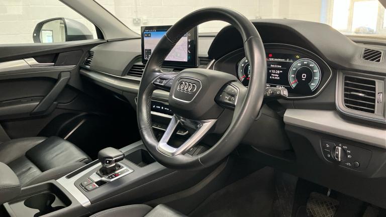 Audi Q5 Estate 45 TFSI Quattro Sport 5dr S TronicThis Audi Q5 offers a refined blend of performance, comfort, and advanced technology, making it a compelling choice for those seeking a premium SUV experience. Its petrol engine delivers responsive power through an automatic transmission and quattro on demand system, ensuring optimal control and efficiency in various driving conditions. Presented in a sophisticated grey paint finish, the Q5 features 18-inch alloy wheels with a dynamic design, complemented by matt titanium black air inlets and aluminium roof rails for an understated yet elegant appearance. The exterior is further enhanced by chrome-plated exhaust trims, contrasting lower bumpers, and LED headlights with matching LED tail lights, lending the vehicle a modern and purposeful look. Inside, the cabin is appointed with a silver cloth headlining, aluminium inlays, and a 3-spoke leather steering wheel, creating a comfortable and visually appealing environment. This model is equipped with an array of features designed for convenience, connectivity, and safety.Key features,Amazon Alexa integration with 10. 1-inch touchscreen.Audi Virtual Cockpit Plus.Wireless smartphone interface.Heated front seats.Deluxe 3-zone electronic climate control.Front and rear parking sensors & reversing camera.Power operated tailgate.Why Buy from Vertu Kia Nottingham?At Vertu Kia Nottingham, you’re buying with confidence from one of the UK’s largest and most trusted motor retailers.With over 200 dealerships nationwide and representing more than 30 world-leading manufacturers, Vertu delivers exceptional choice and award-winning service.Established in 2006, Vertu Motors plc has become synonymous with quality, transparency, and customer care — reflected in a 98% customer satisfaction score. In 2025, the Bristol Street Motors and Macklin Motors brands proudly united under the Vertu name, continuing the same outstanding service and expertise our customers love..Climate Control, Metallic Paint, Cruise Control, Satellite Navigation, Alloy Wheels, Leather Seats, Heated Seats, DAB Radio, Bluetooth, Parking Sensors, USB, Apple-Android Play, Rear Camera, Electric Opening Tailgate, Auto Lights, Rain Sensors& 4x4, Front/rear floor mats, Rear wiper, Front and rear electric windows, Acoustic windscreen, Hill descent control, Electromechanical parking brake, Electronic stabilisation control including ABS, ASR and EDL, Dynamic suspension, Audi wireless smartphone interface, Voice control system with Audi hotword activation ""Hey Audi"", Bluetooth interface, Electro - mechanical power assisted steering, Hill hold assist, Audi drive select, Multi collision brake assist, Camera based traffic sign recognition, Lane departure warning, Automatic start-stop system with coasting functionality and efficiency programme, Service interval indicator, Audi virtual cockpit plus with 12.3"" screen and three different layout designs